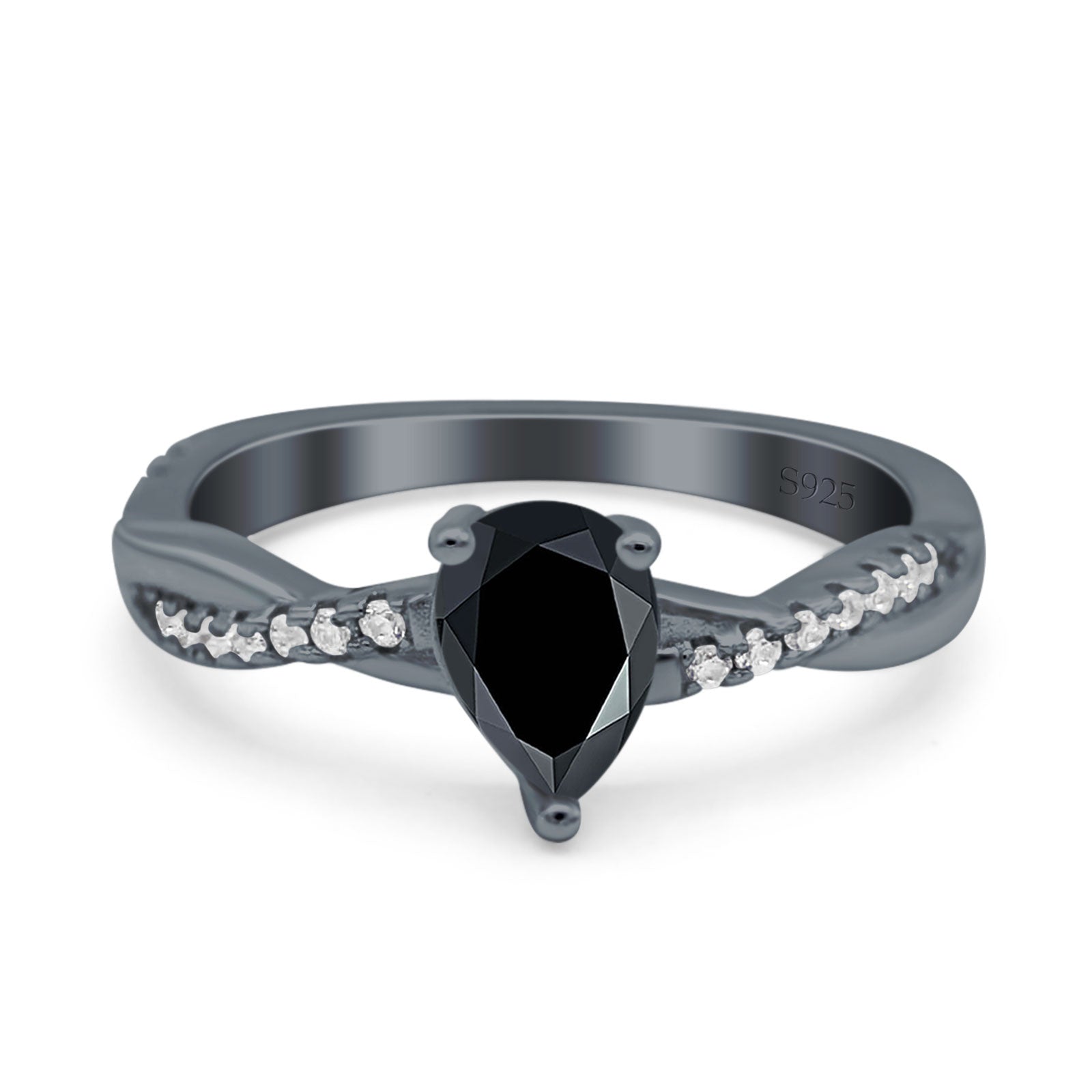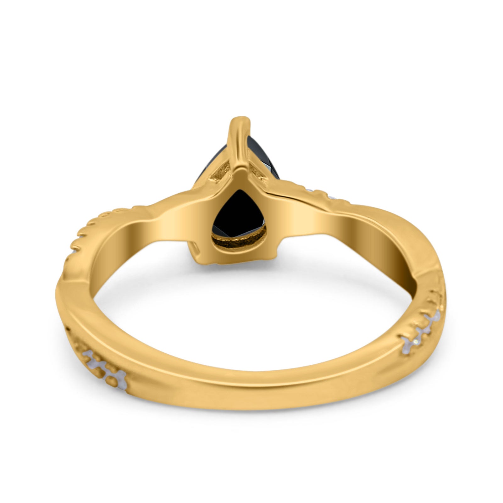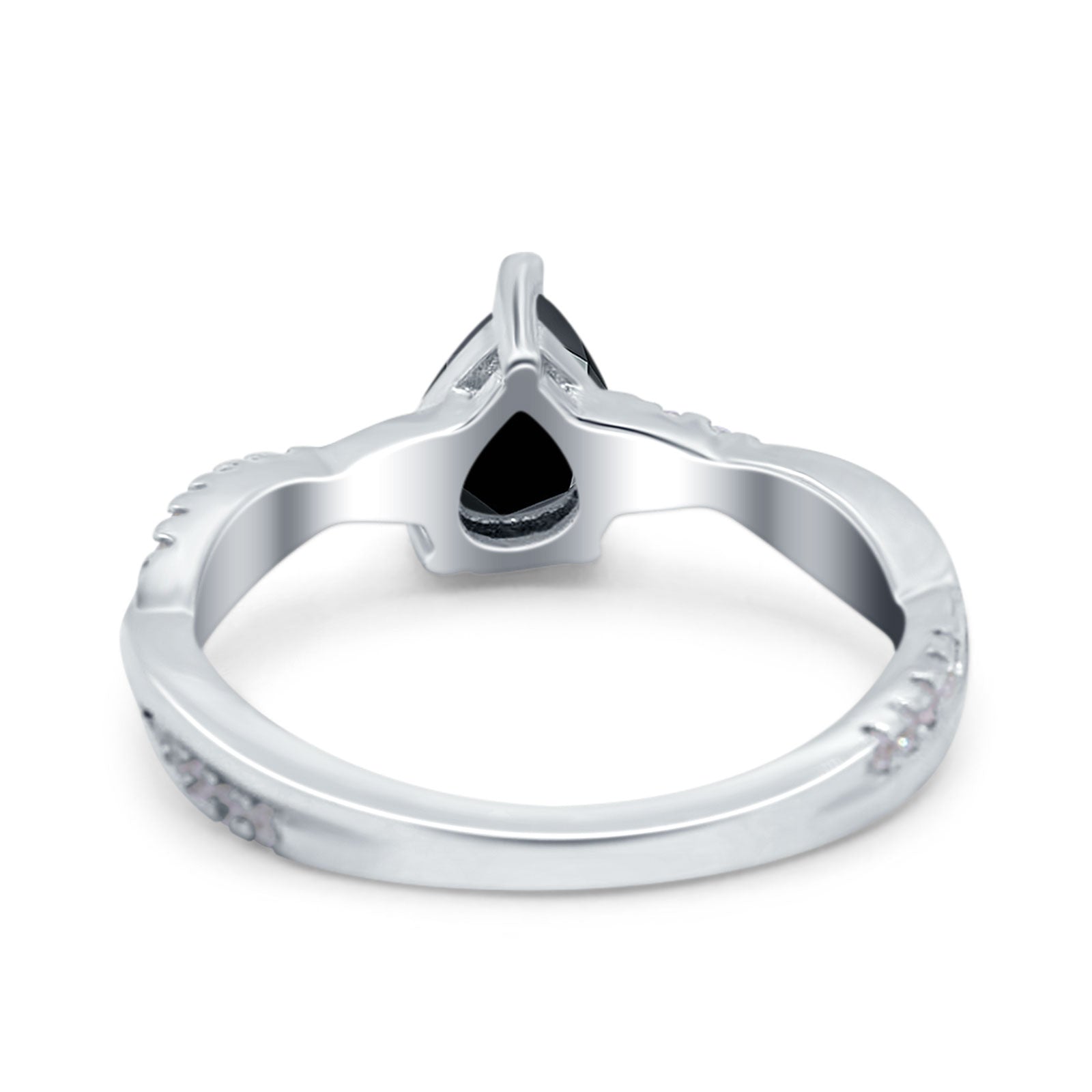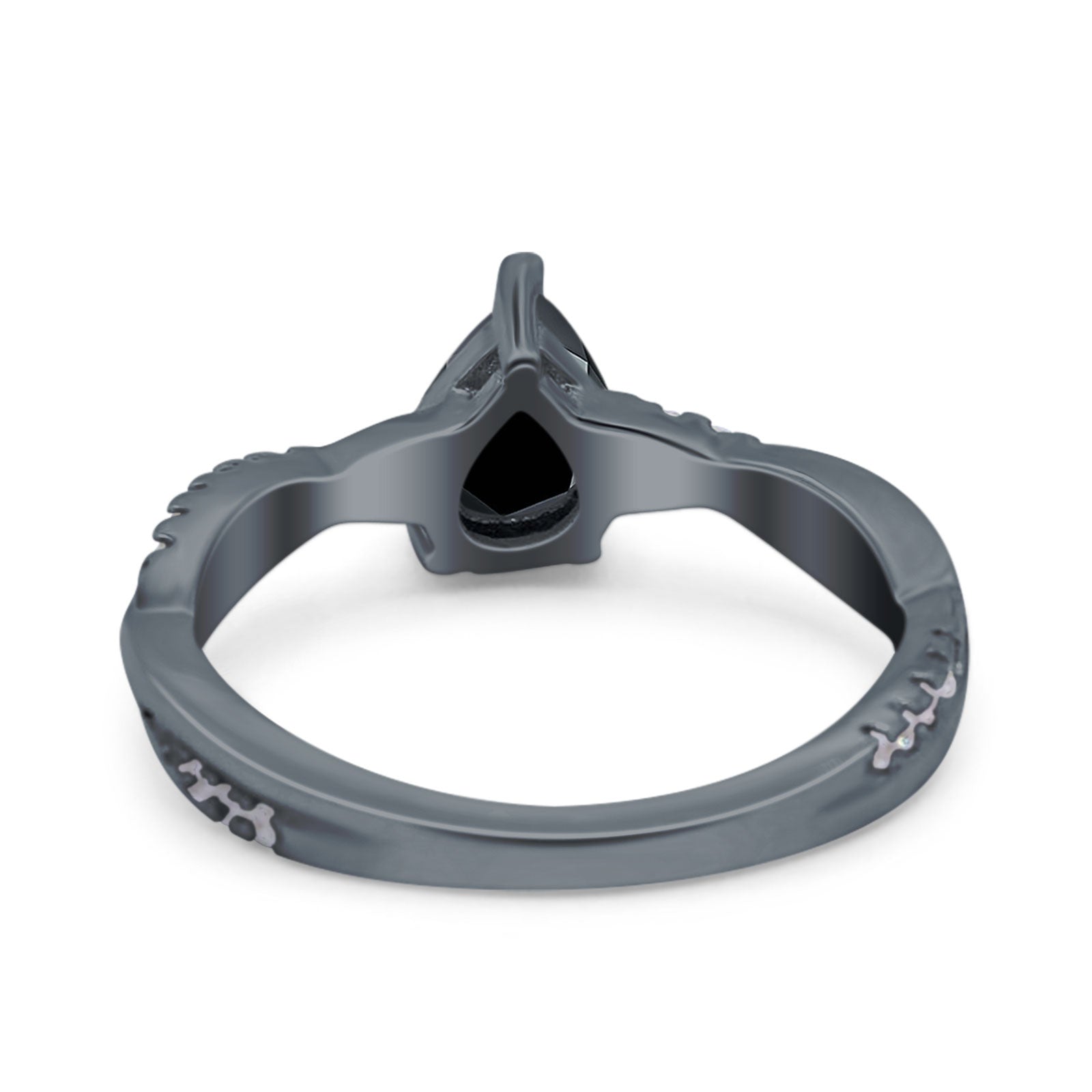 Pear Teardrop Natural Black Onyx Infinity Twisted Ring 925 Sterling Silver