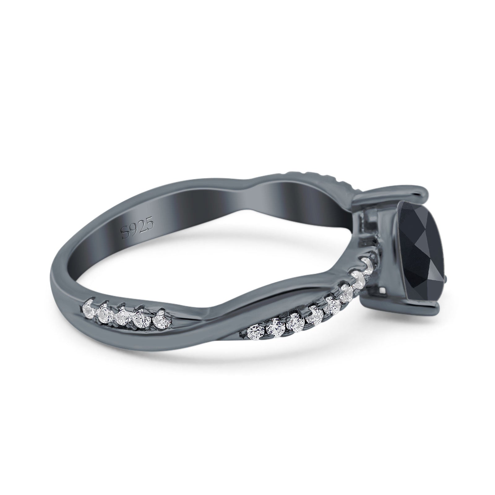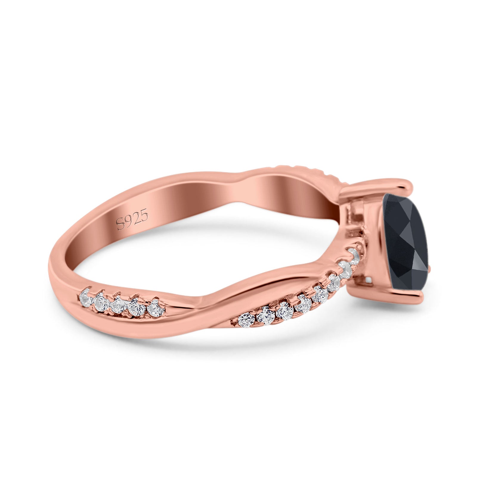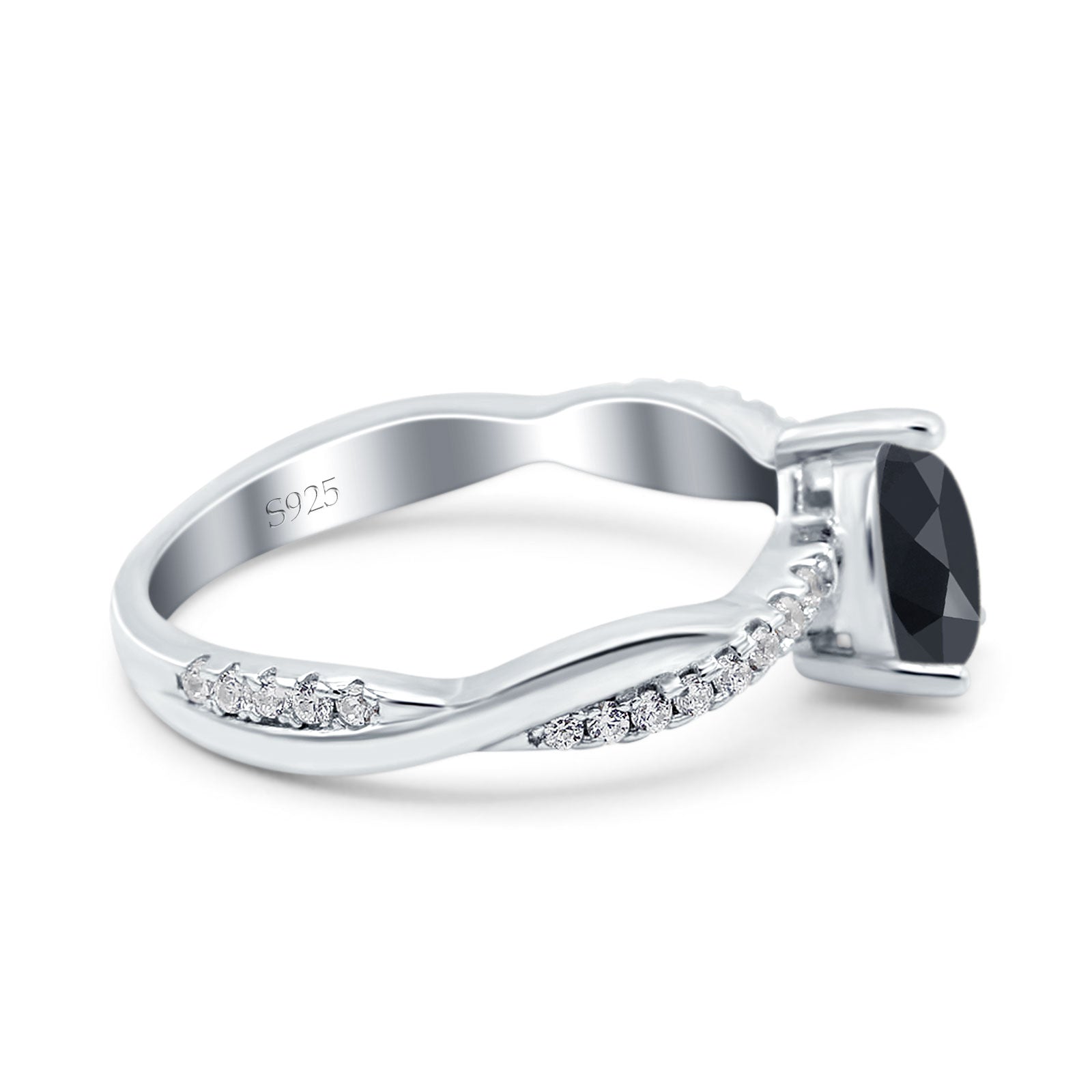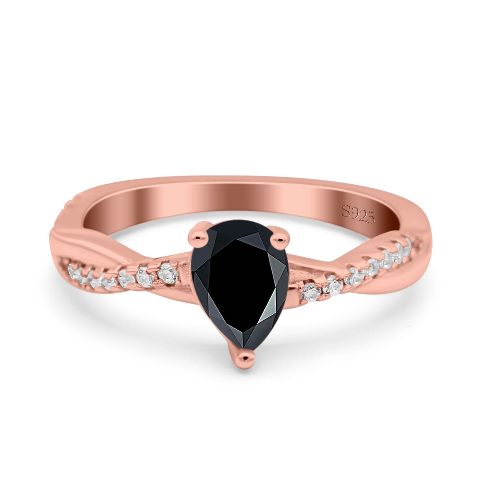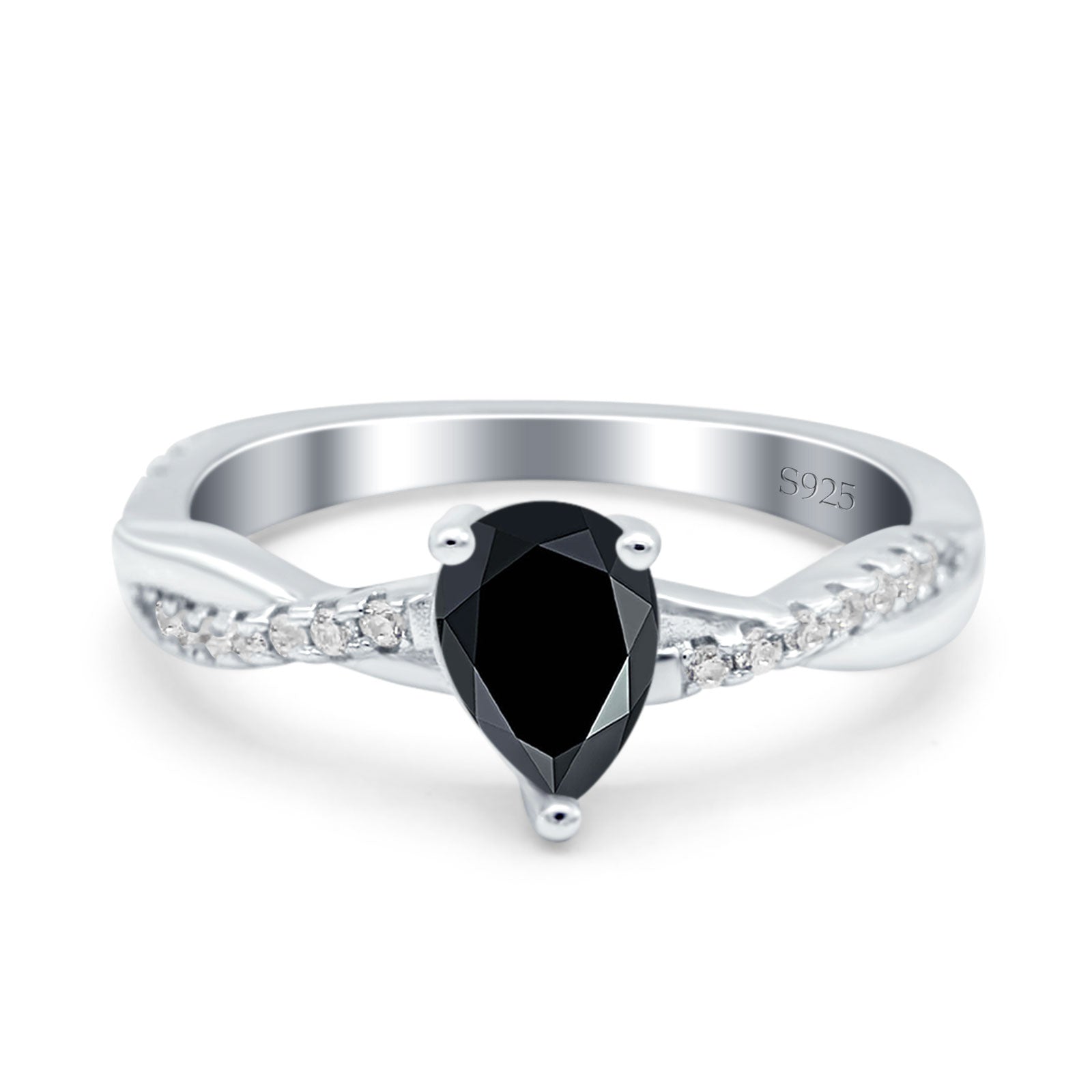 Pear Teardrop Natural Black Onyx Infinity Twisted Ring 925 Sterling Silver
