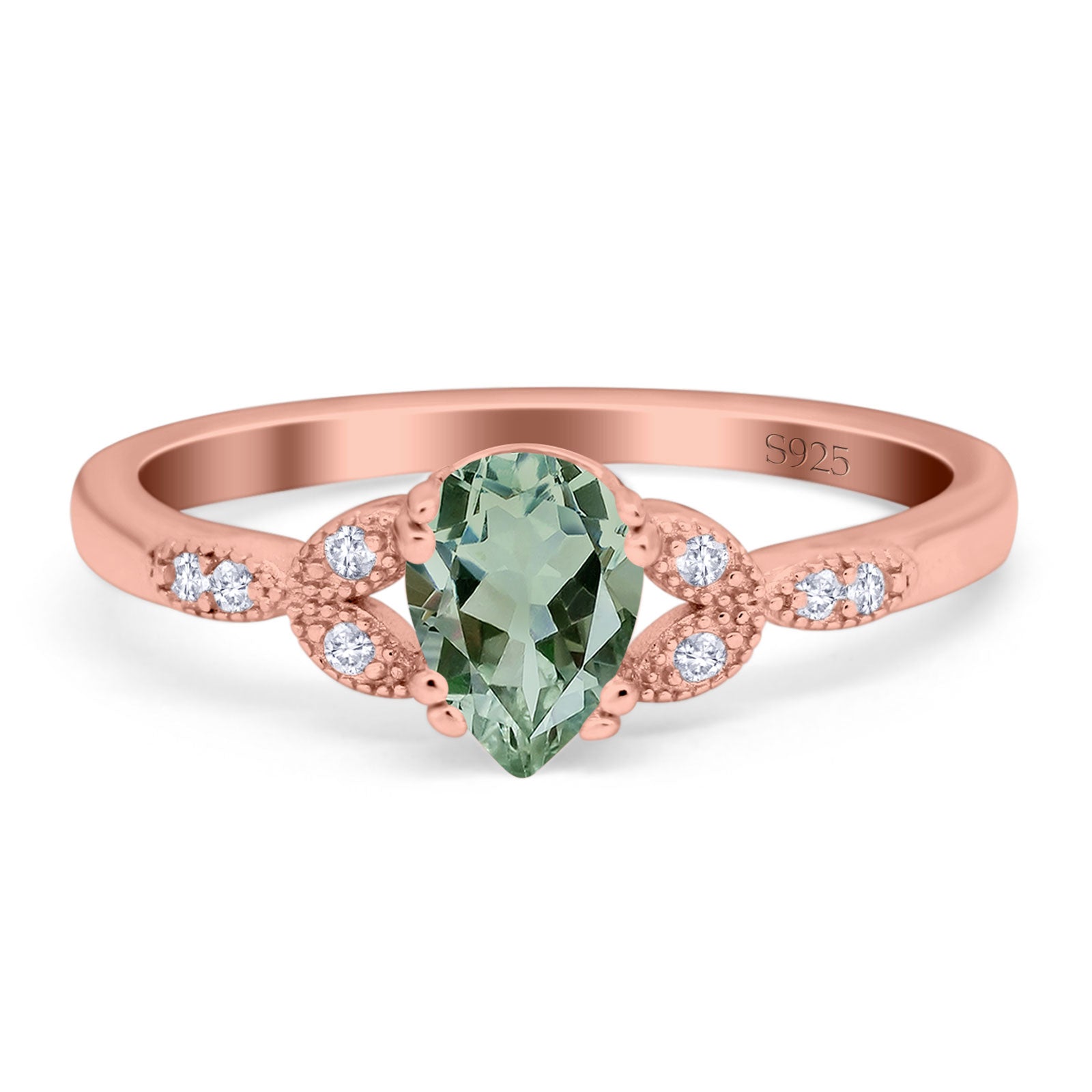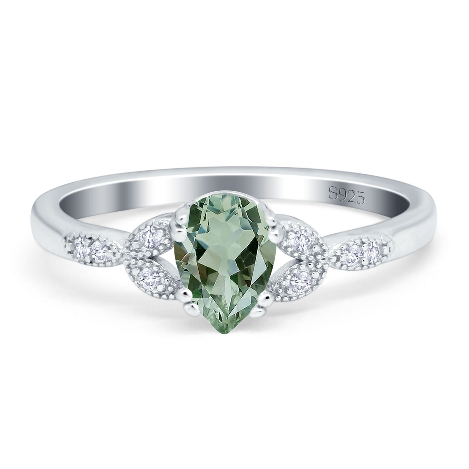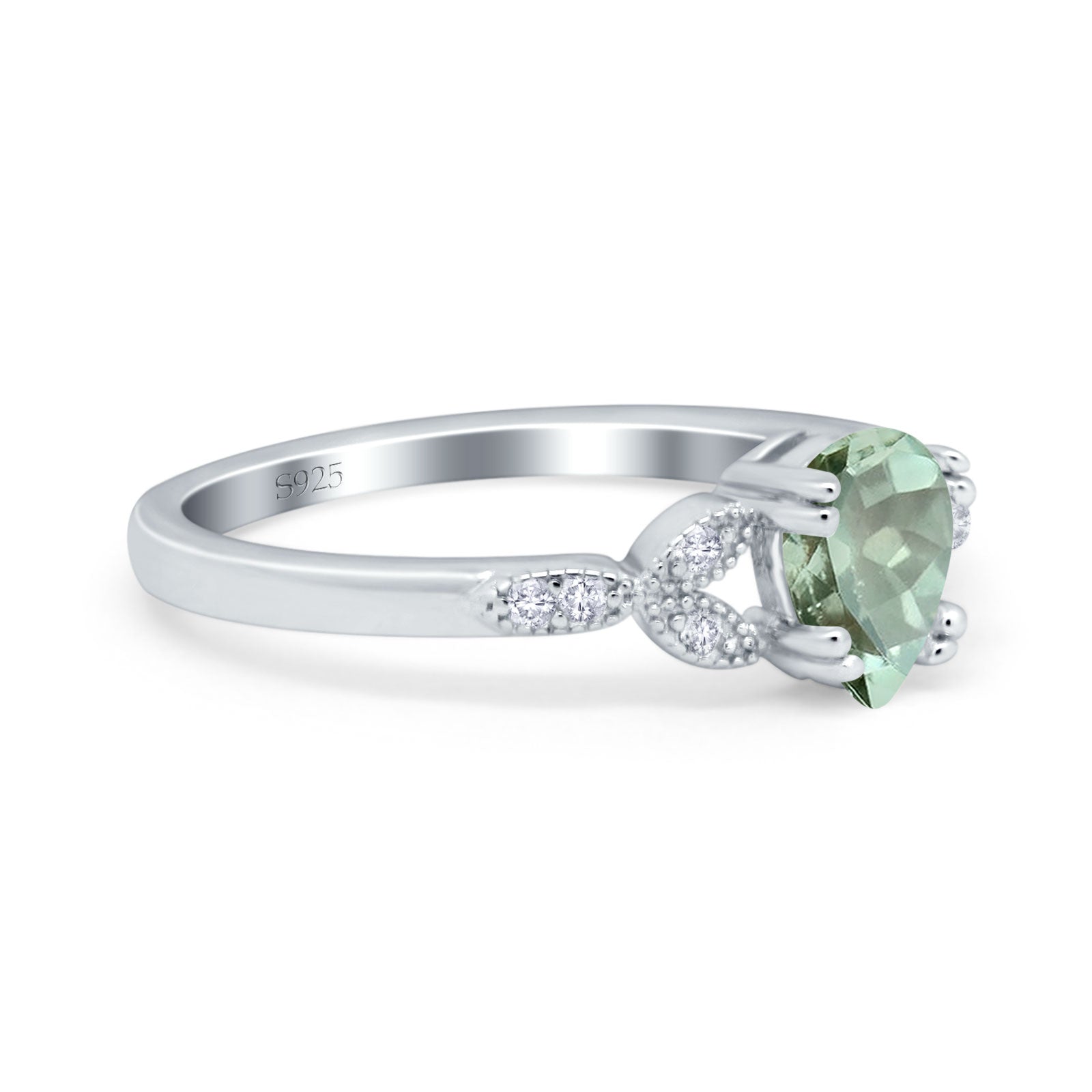 Natural Green Amethyst Prasiolite Engagement Ring