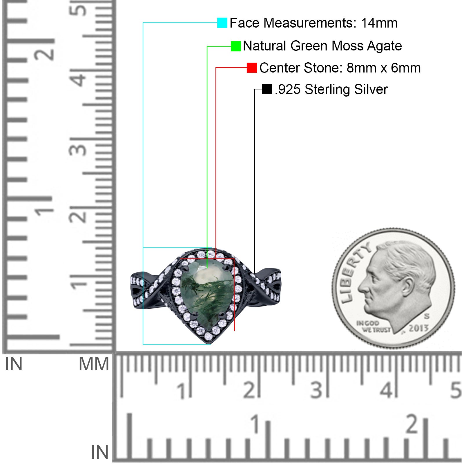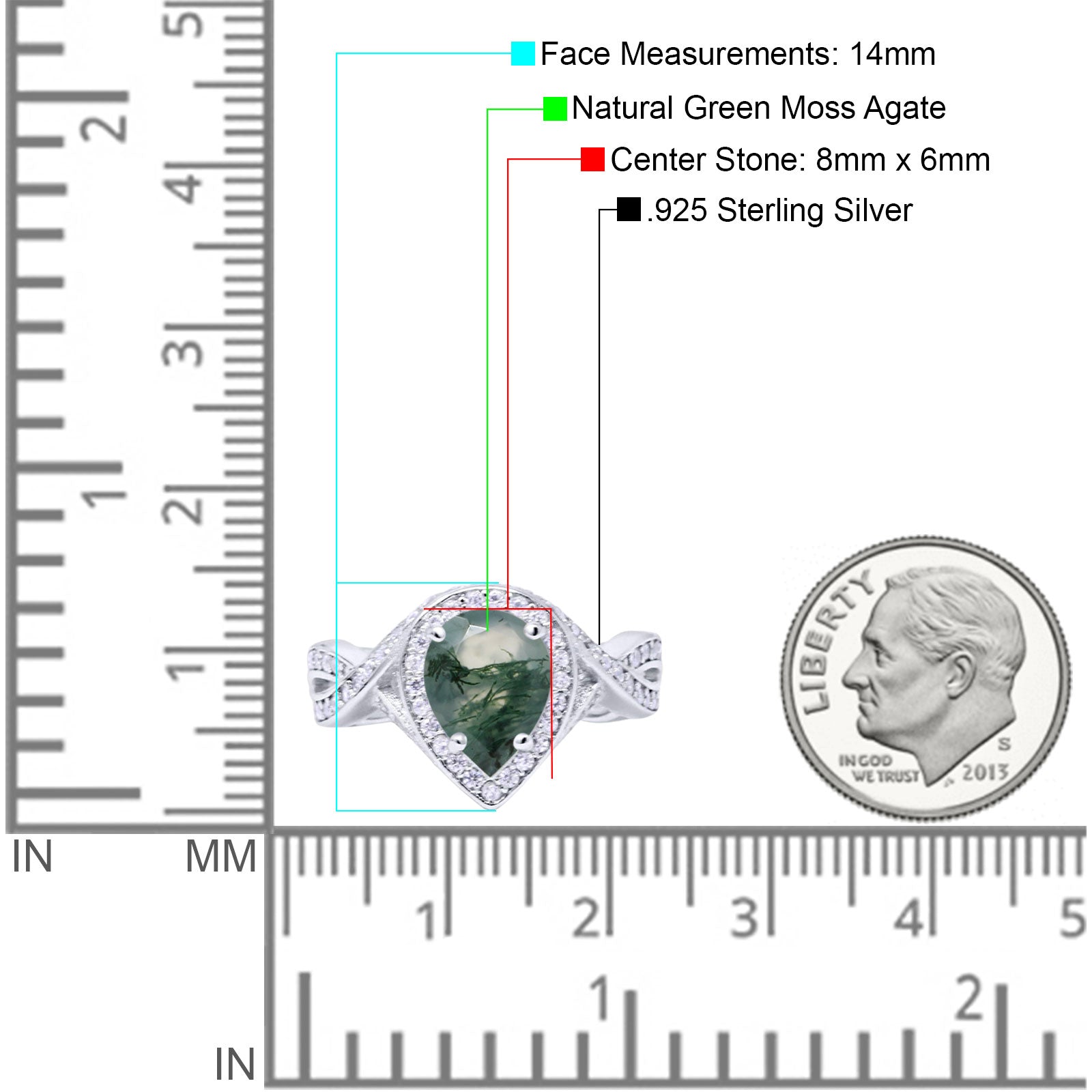 Pear Teardrop Natural Green Moss Agate Infinity Twisted Ring 925 Sterling Silver