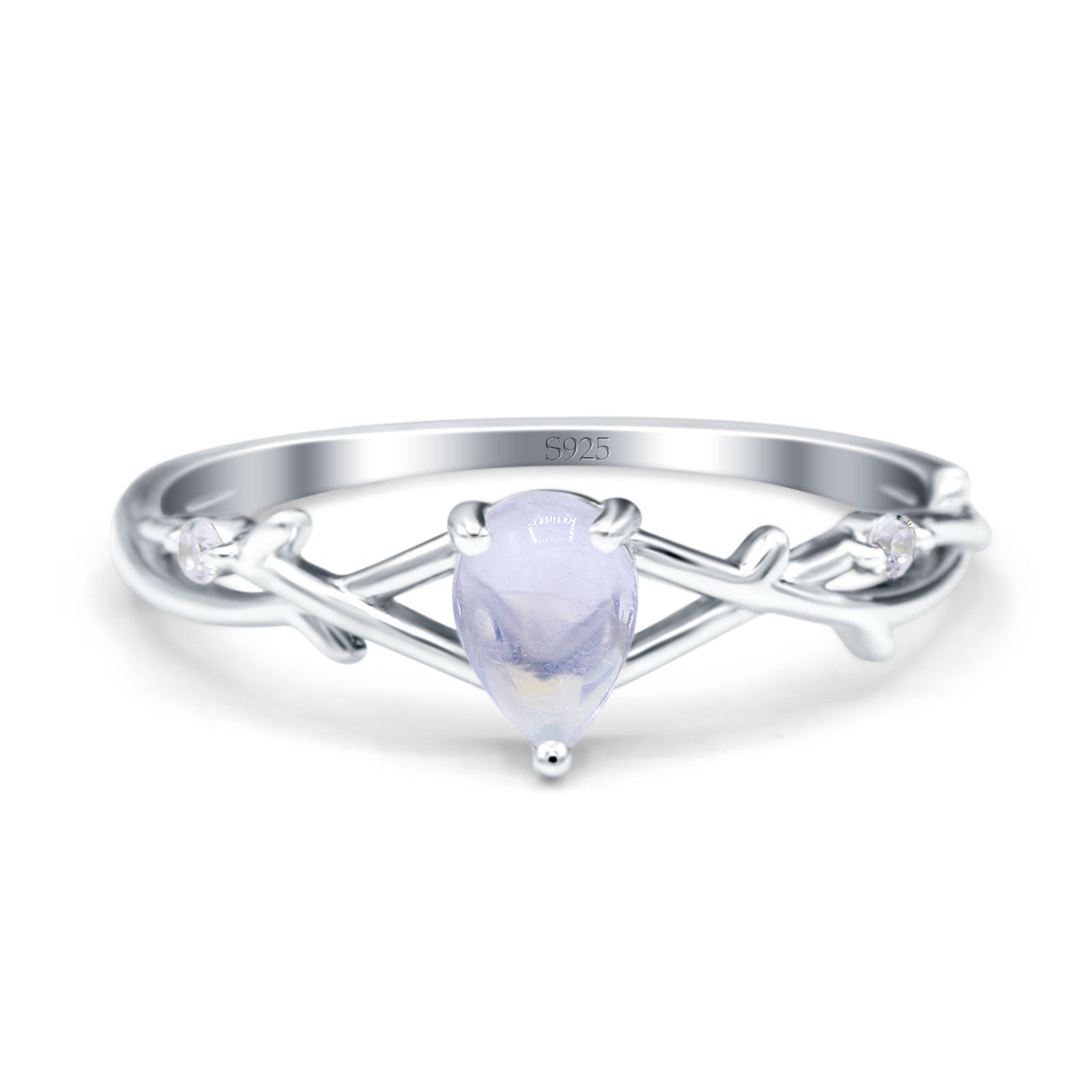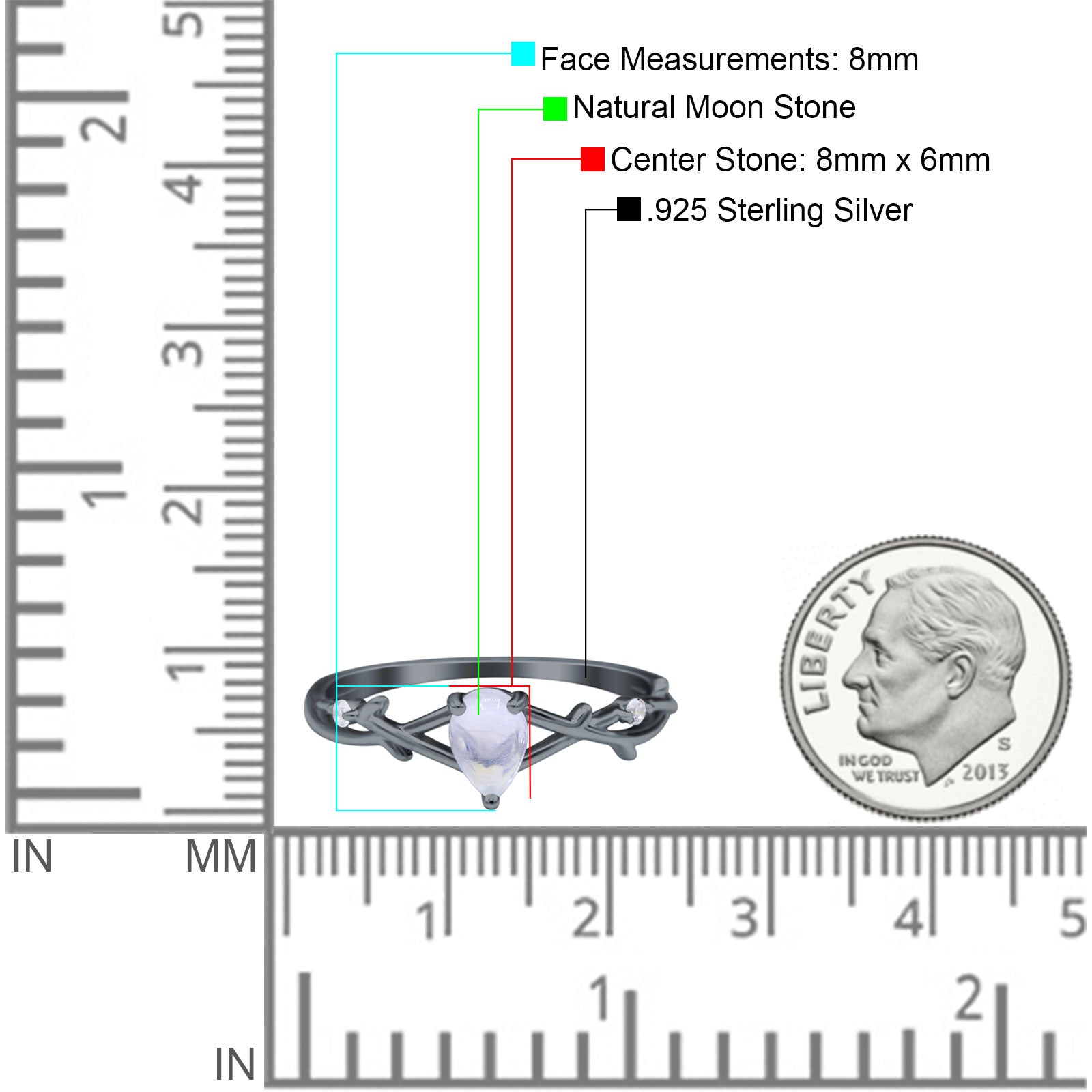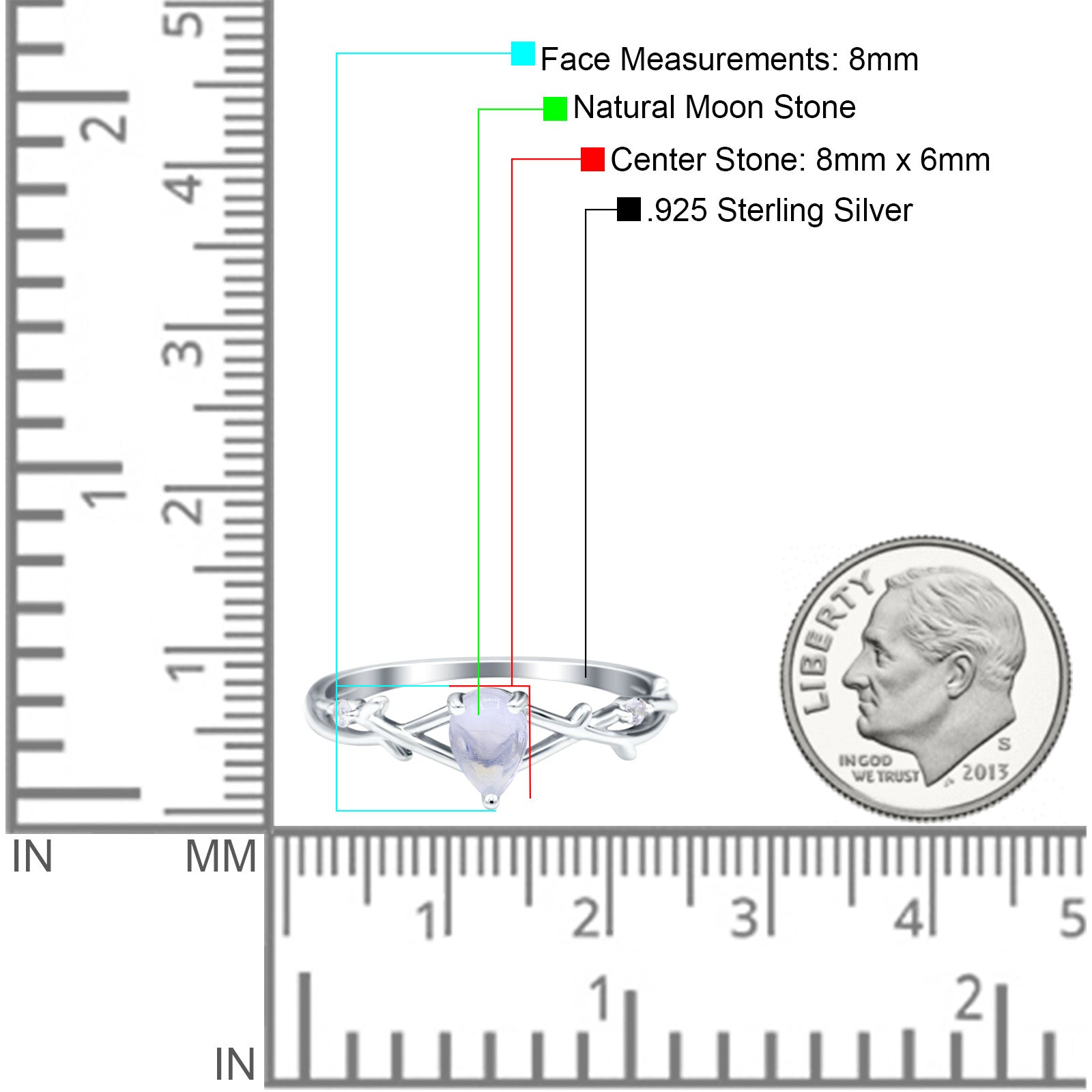 Pear Teardrop Natural Moonstone Infinity Shank Ring 925 Sterling Silver