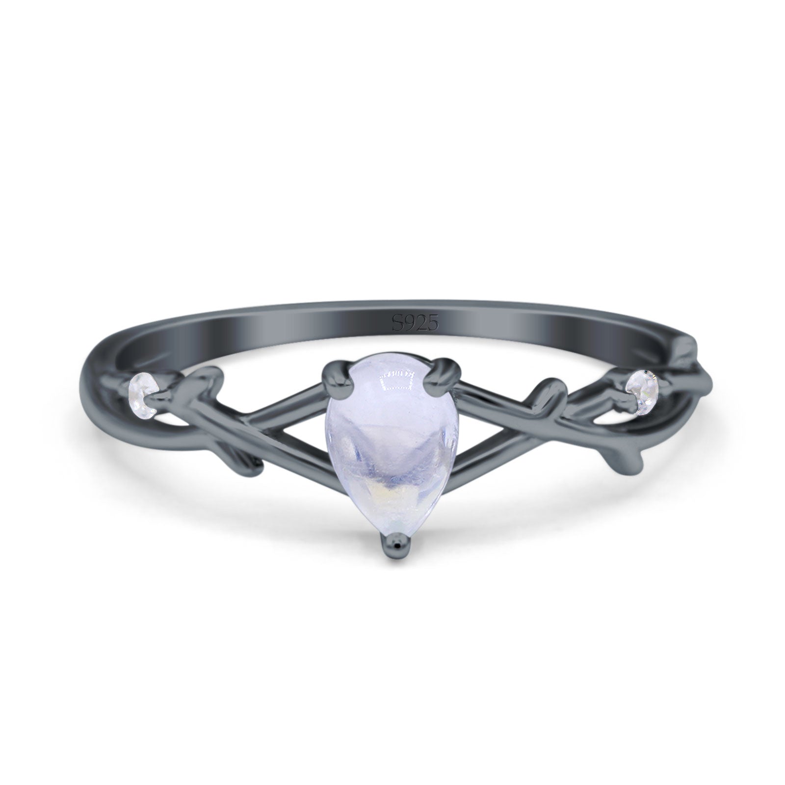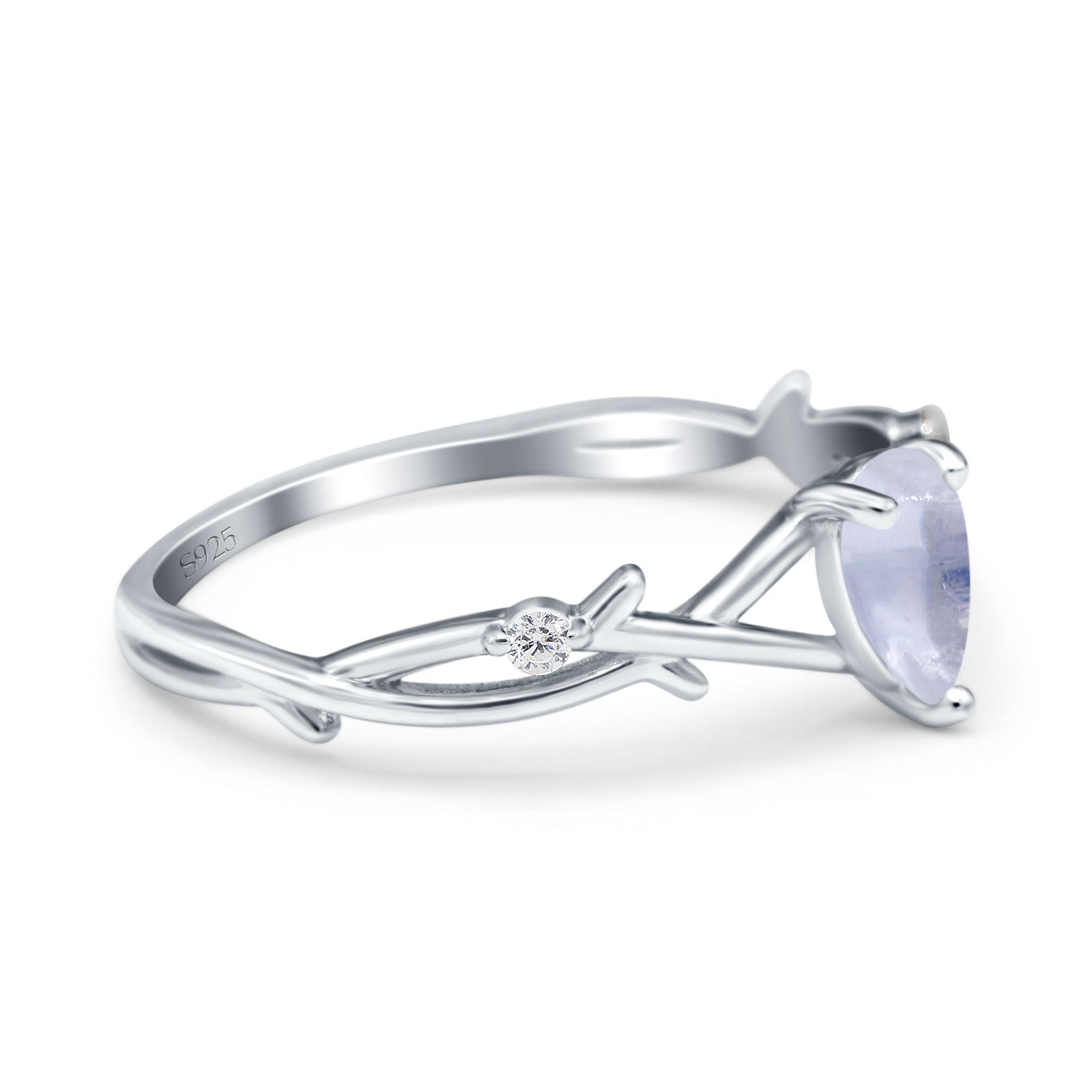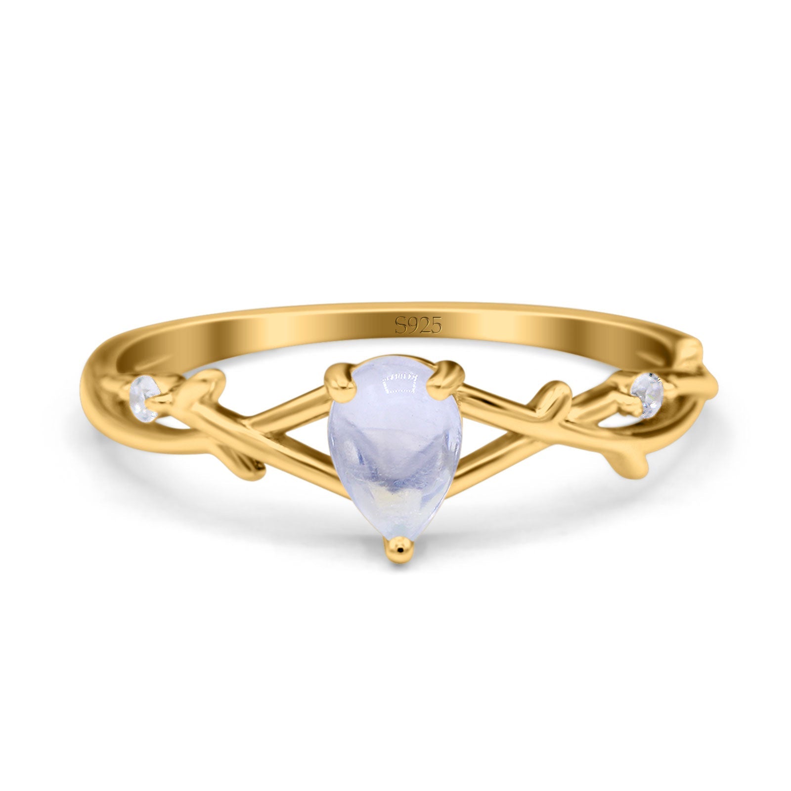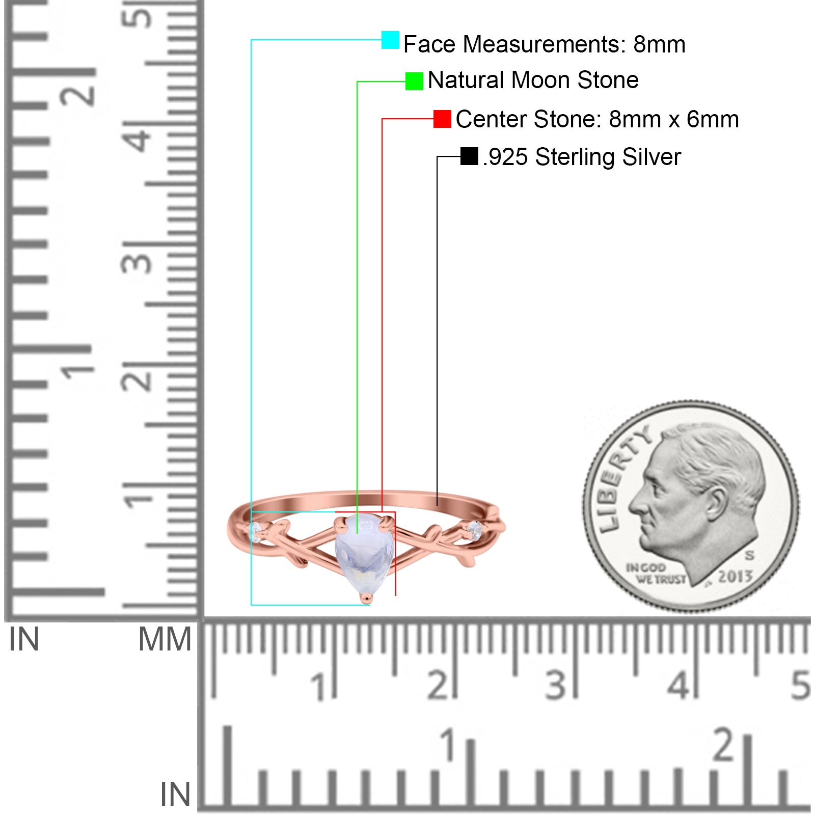 Pear Teardrop Natural Moonstone Infinity Shank Ring 925 Sterling Silver