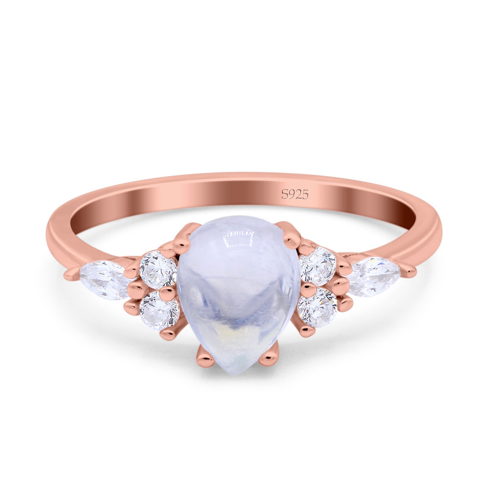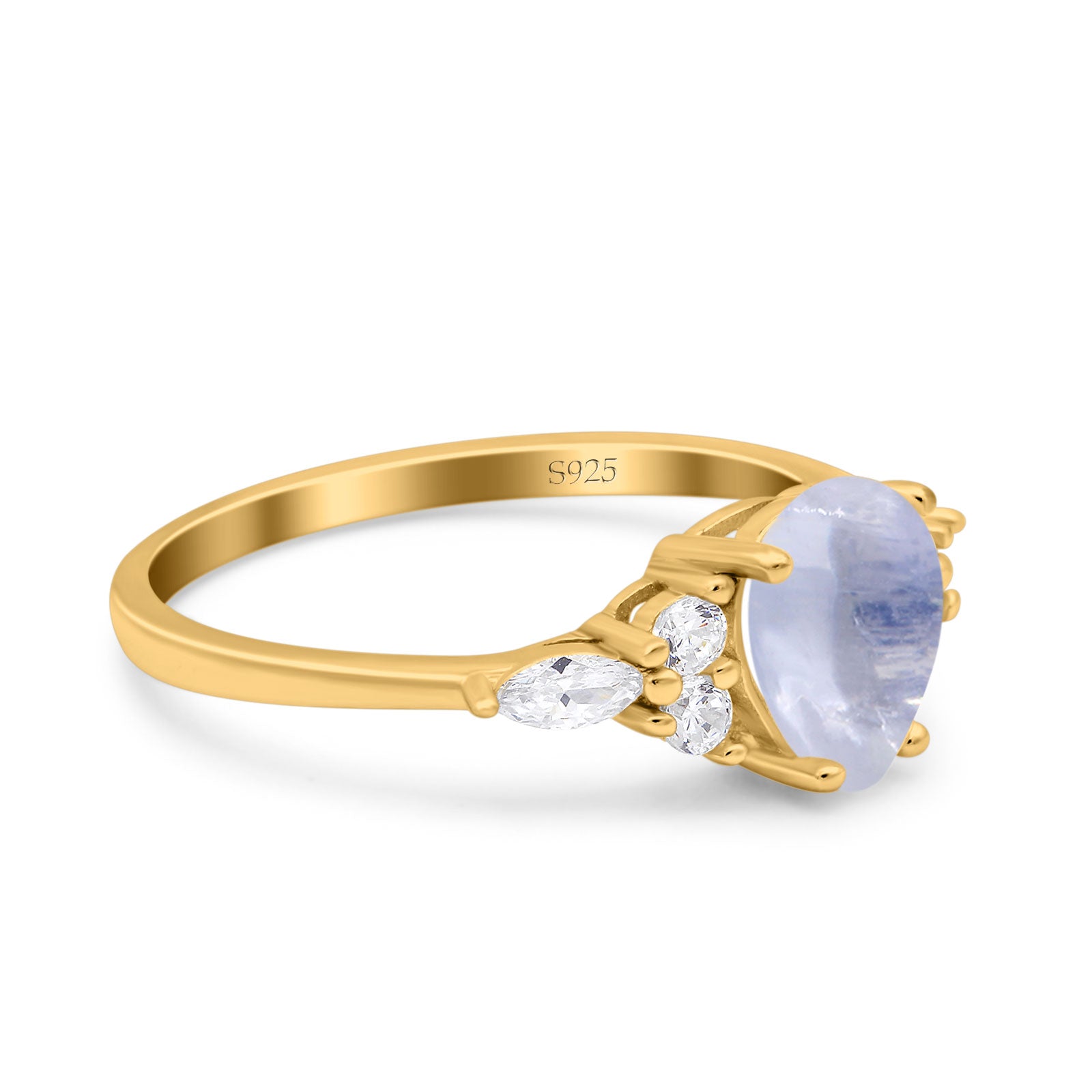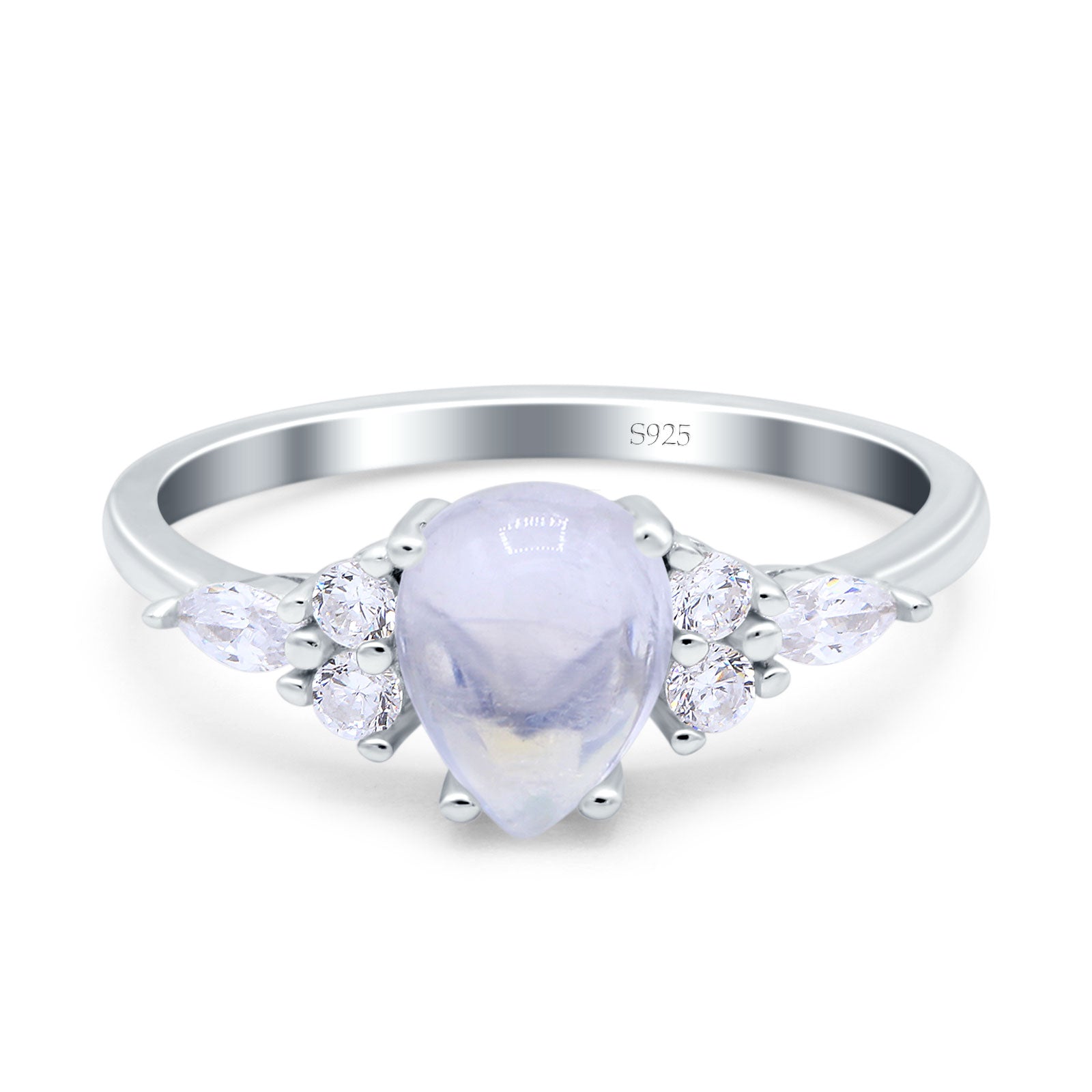 Minimalist 7.4mm Moonstone Ring 925 Sterling Silver