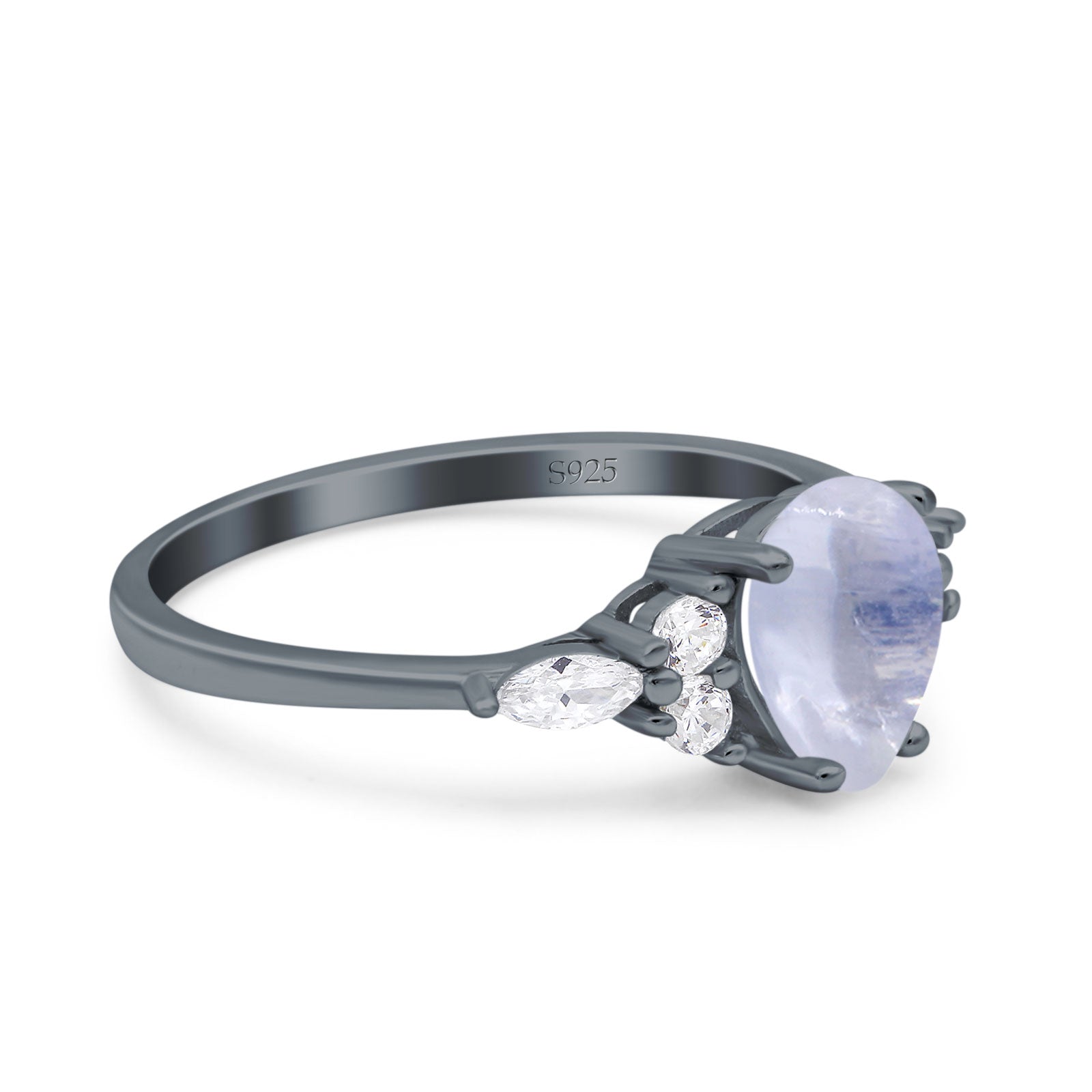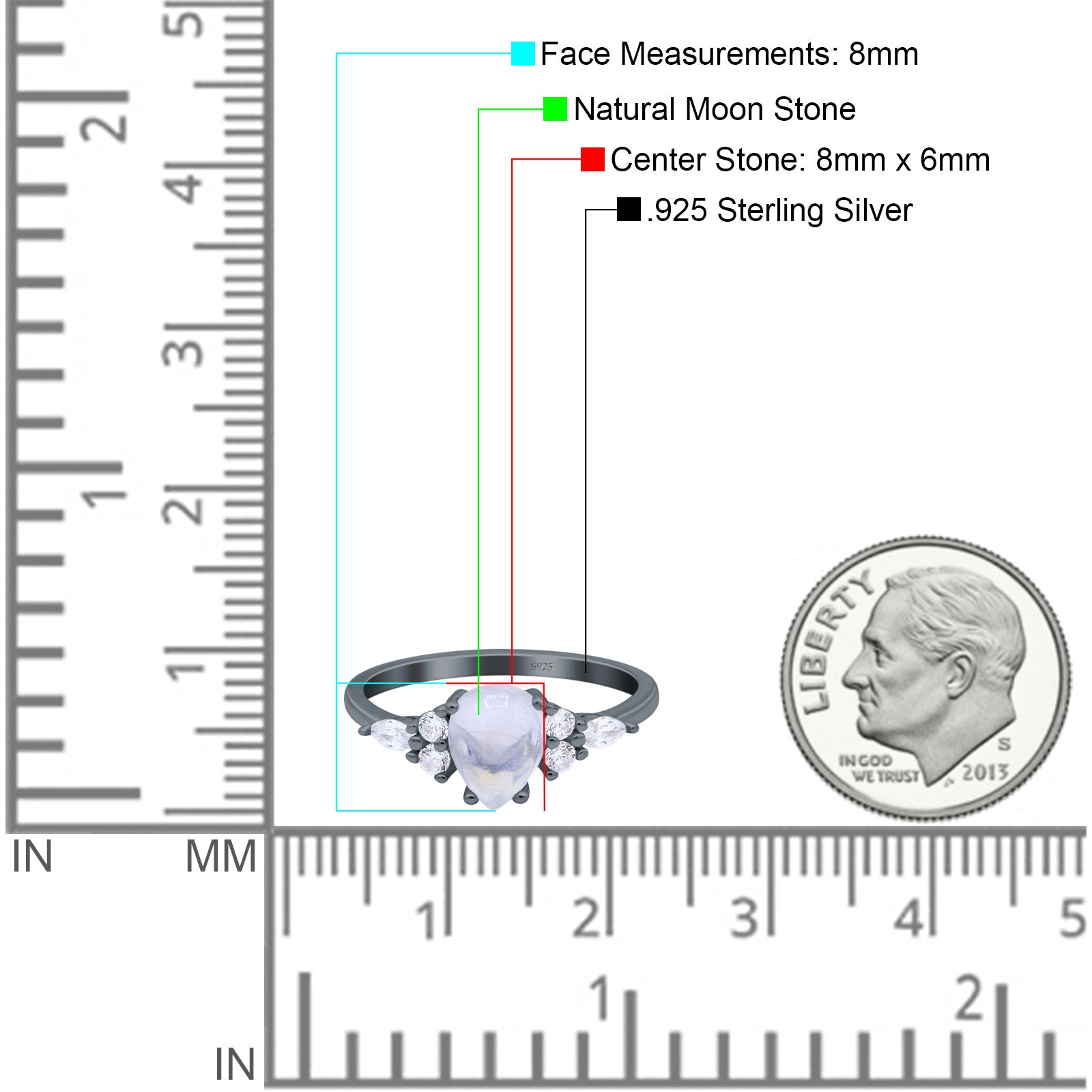 Minimalist 9mm Moonstone Moon Ring 925 Sterling Silver
