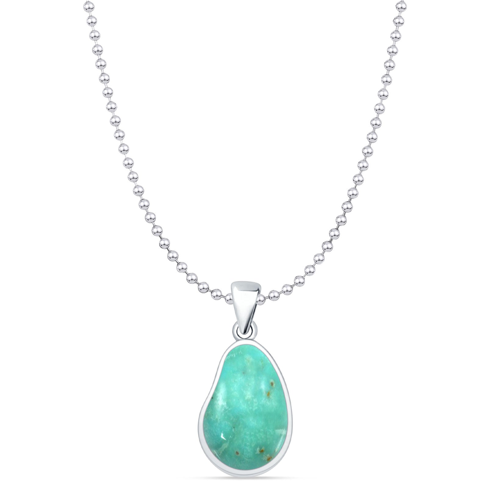 Pear Turquoise Solitaire Pendant Bead Chain Necklace 925 Sterling Silver