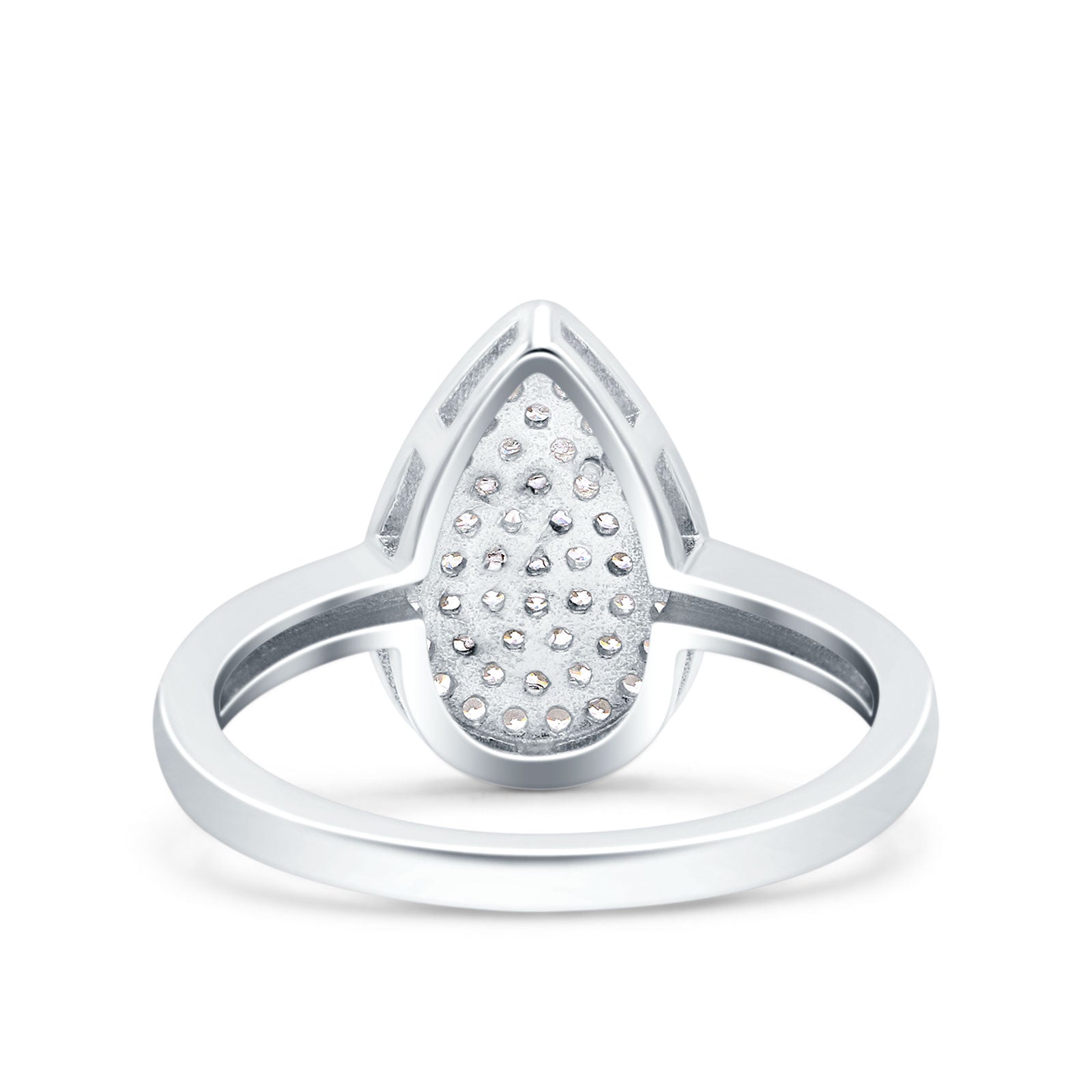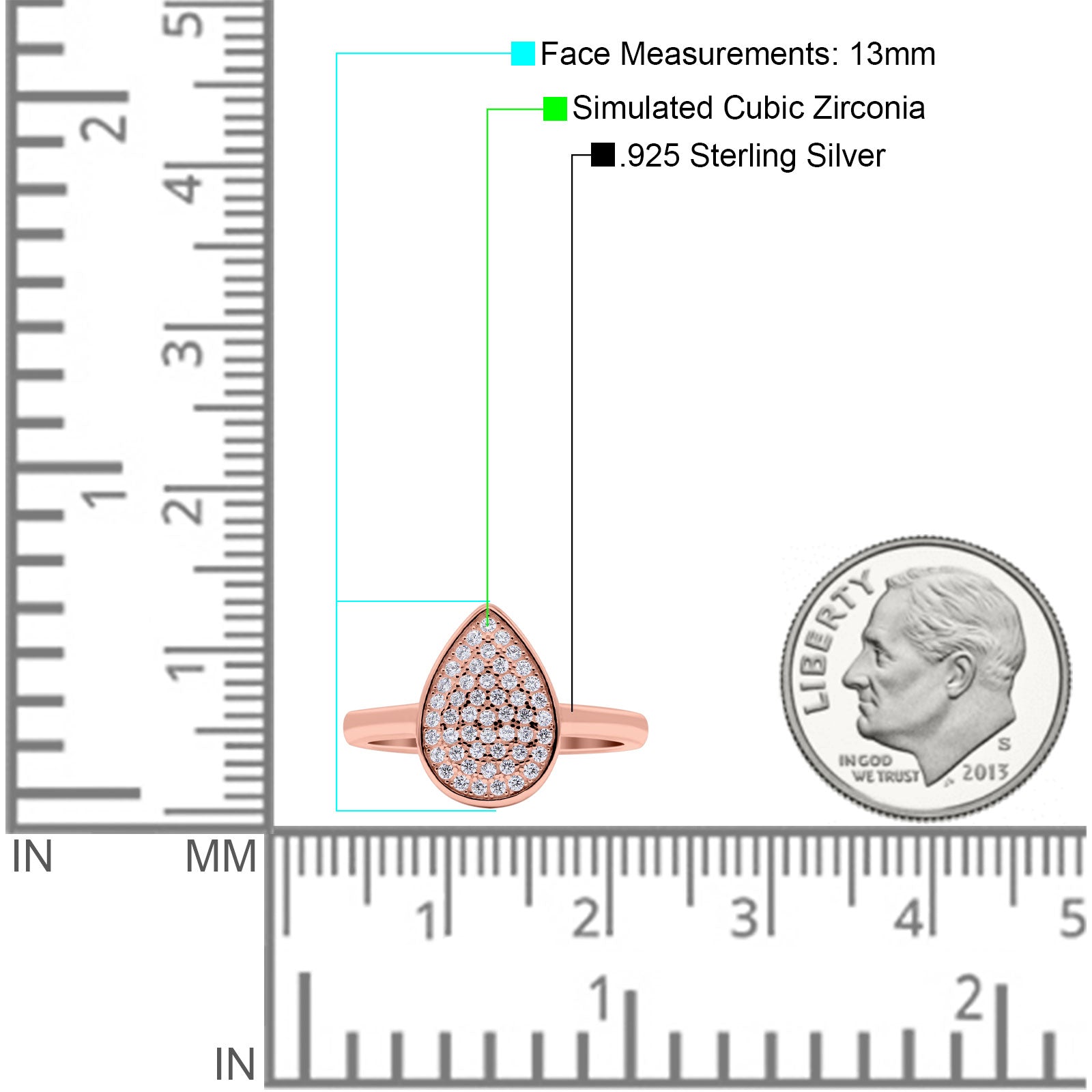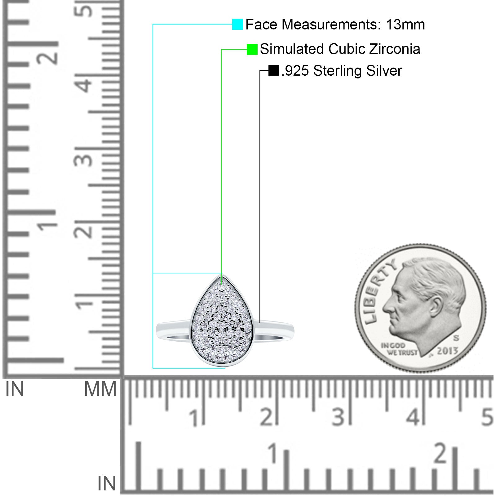 Pear Wedding Engagement Ring Band Round Pave Simulated Cubic Zirconia 925 Sterling Silver (13mm)