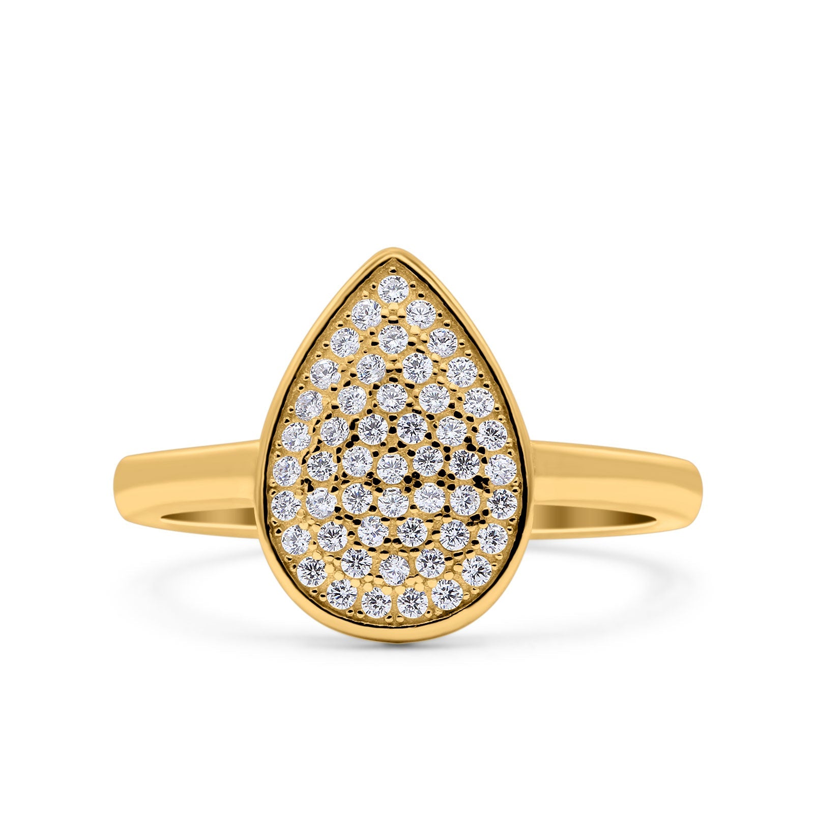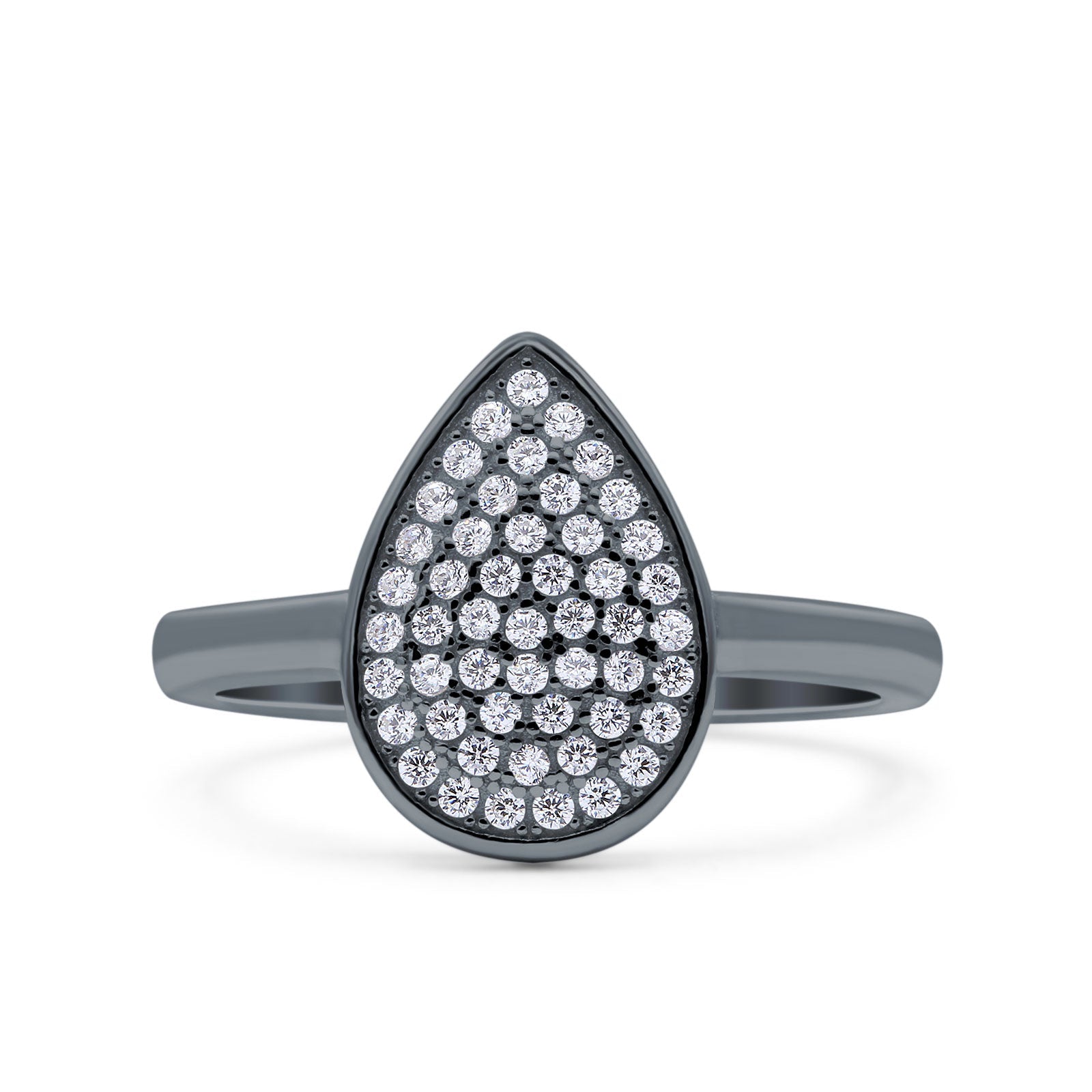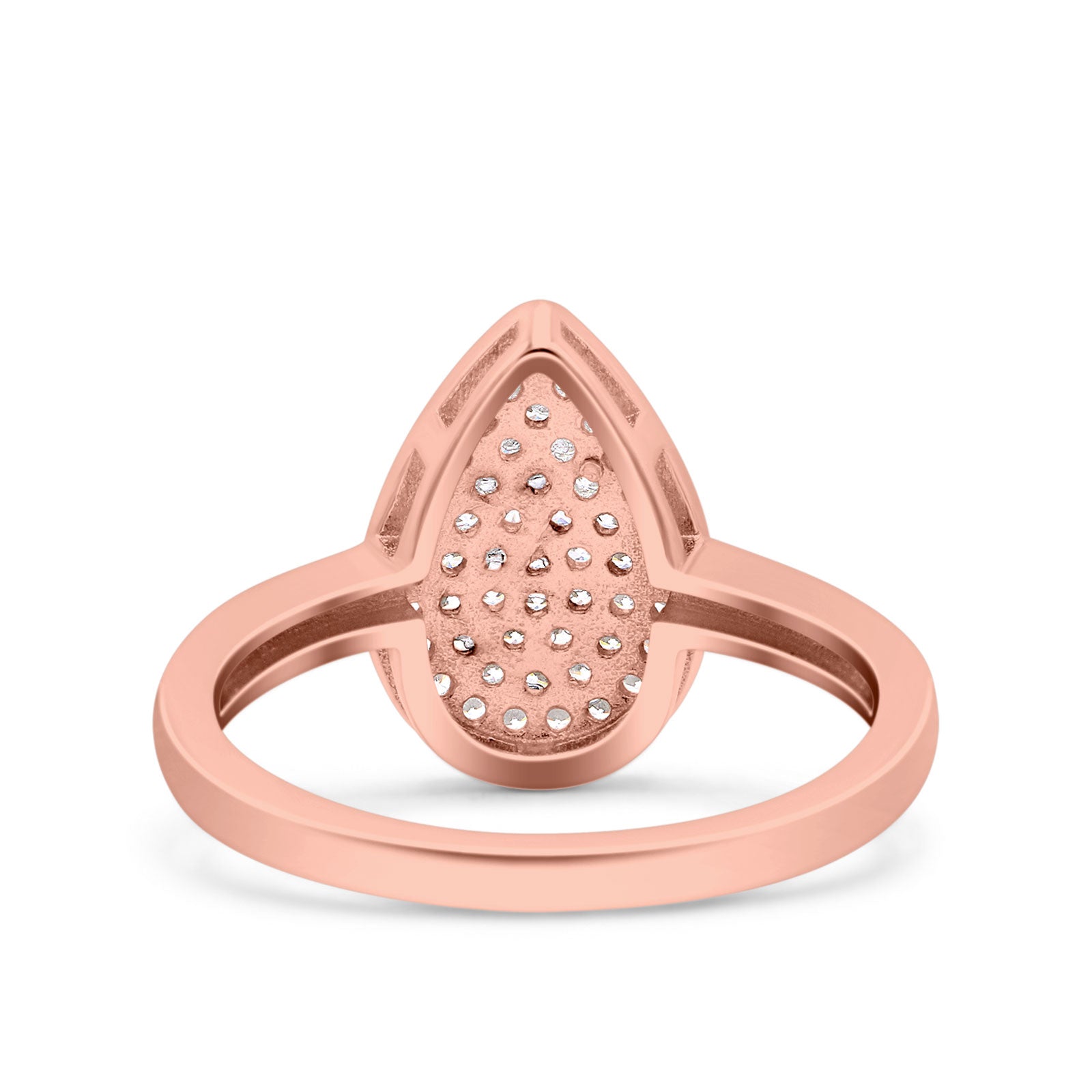 Pear Wedding Engagement Ring Band Round Pave Simulated Cubic Zirconia 925 Sterling Silver (13mm)