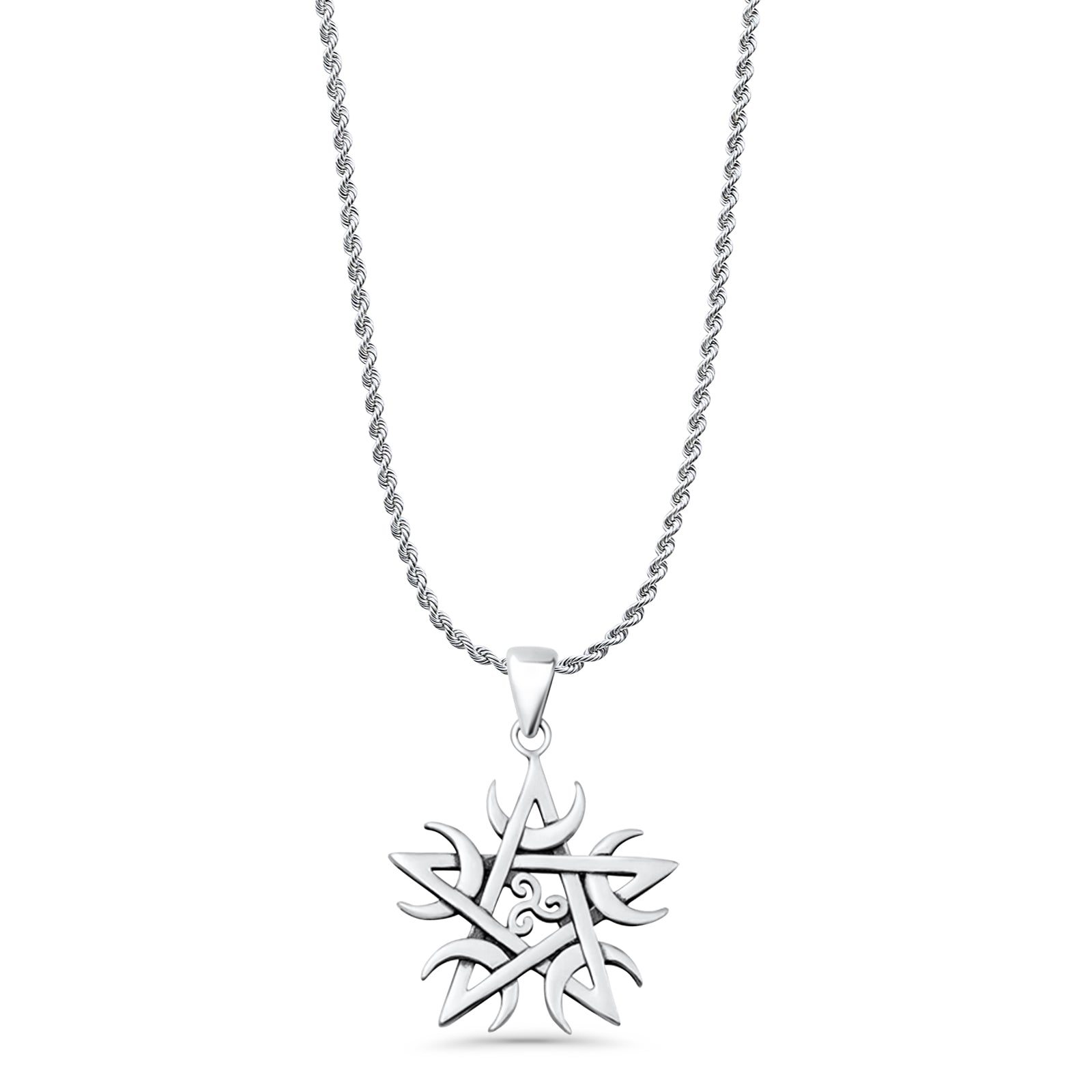 Style: Oxidized Pentagram, Moon & Triskelion Pendant Necklace