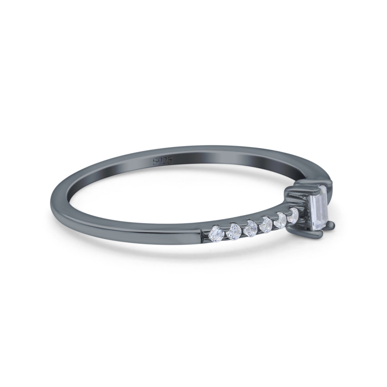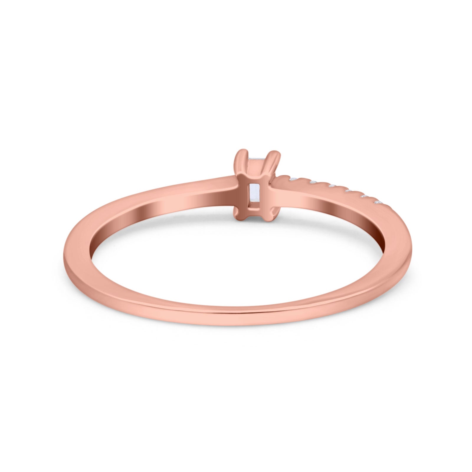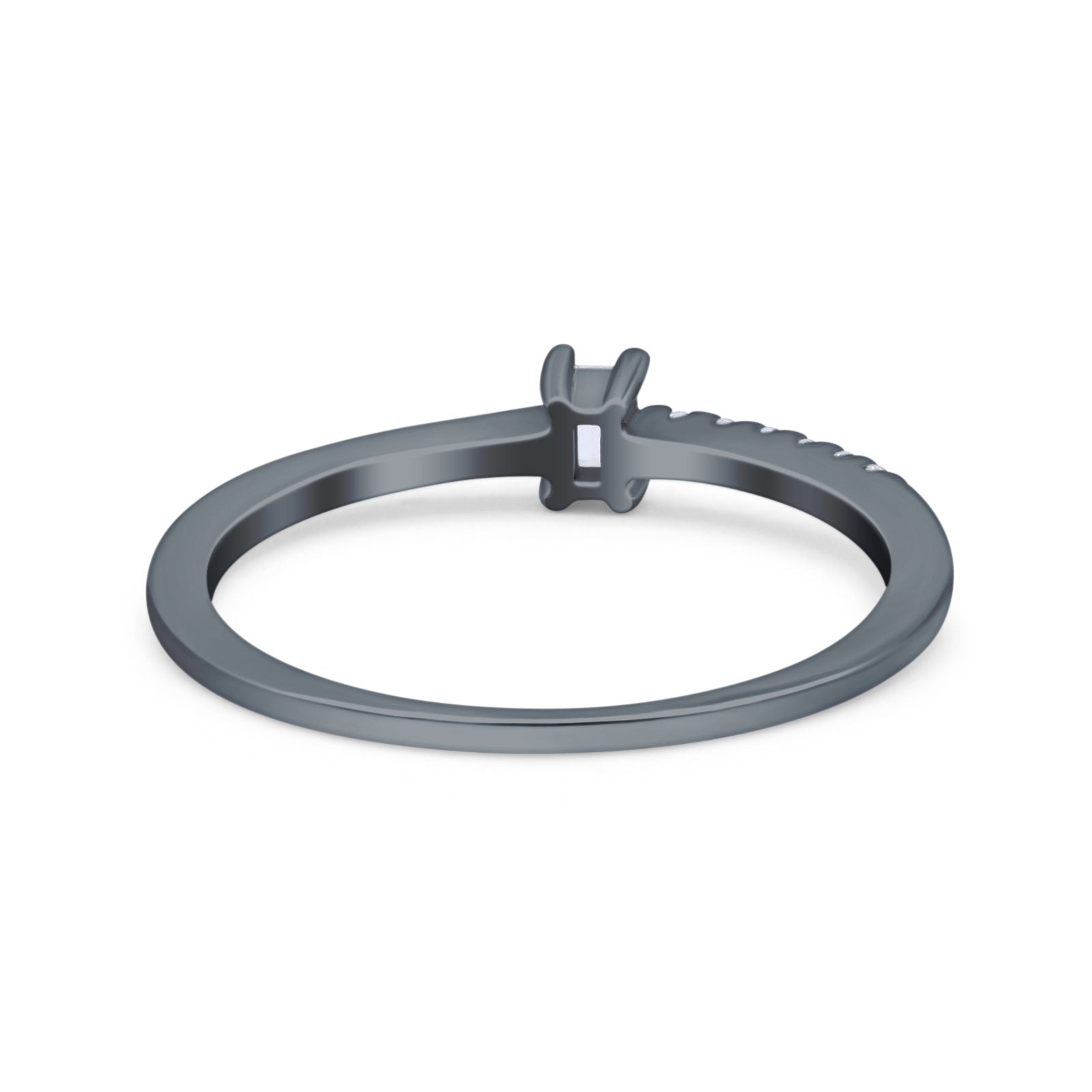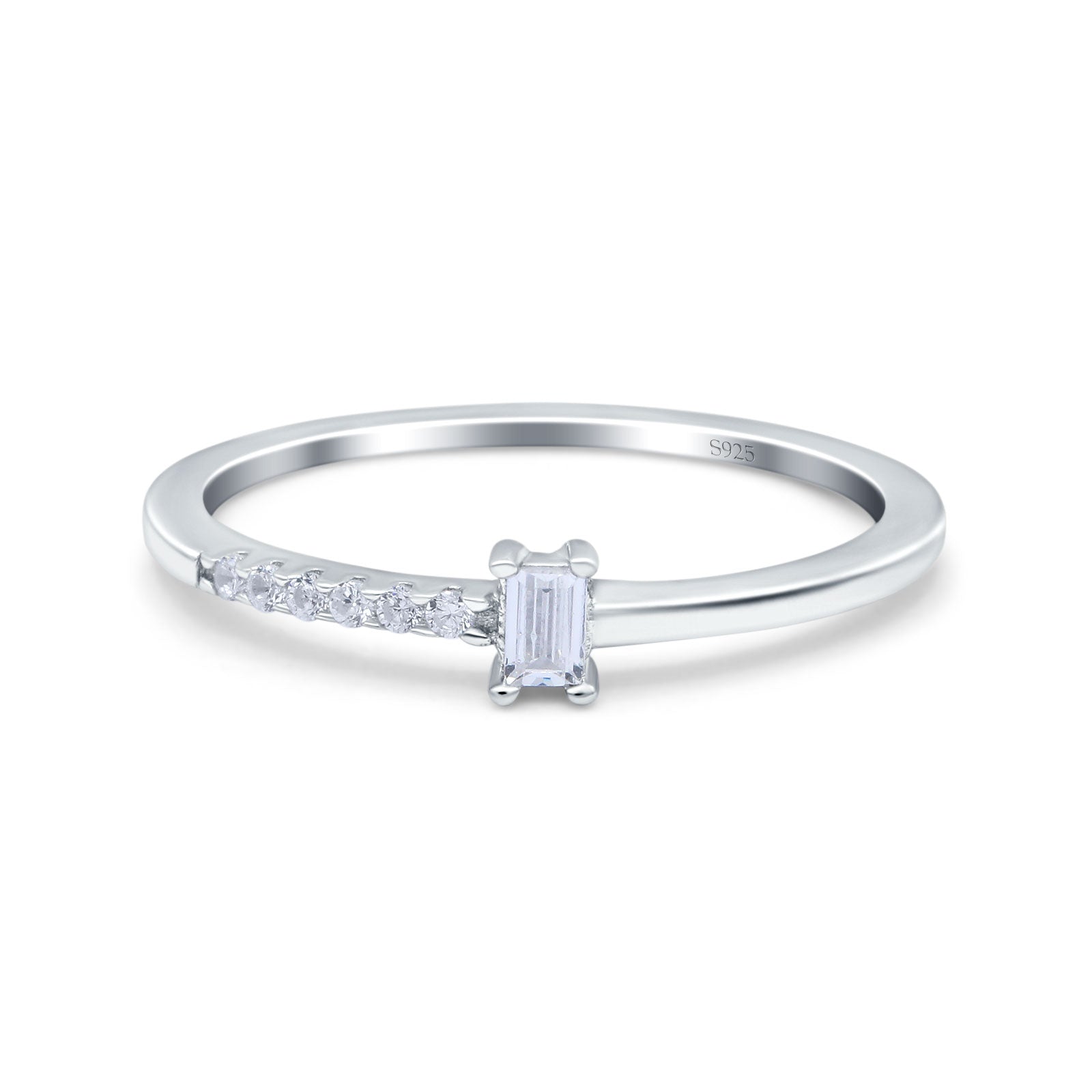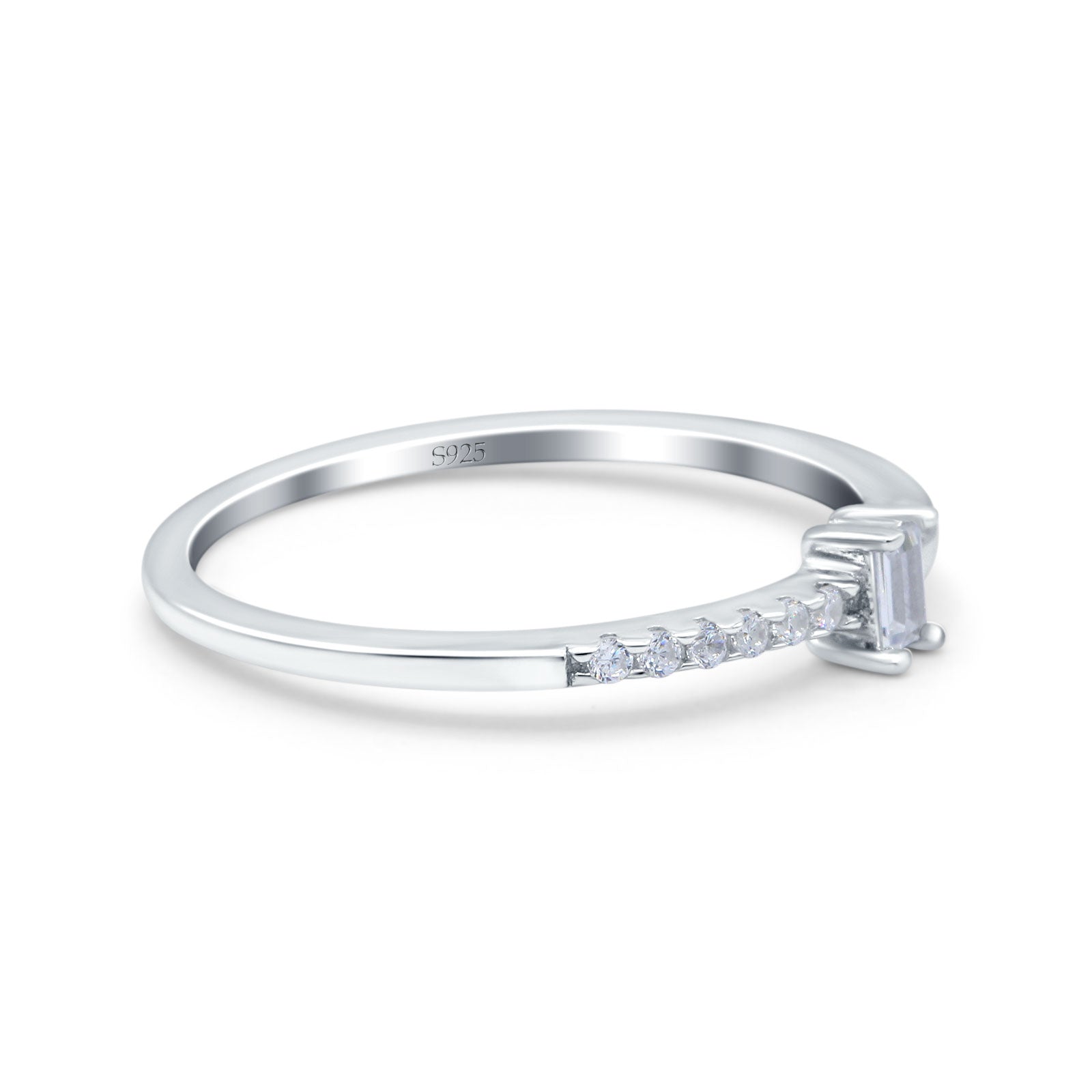Petite Dainty Emerald Cut Wedding Engagement Ring Band Round Simulated Cubic Zirconia 925 Sterling Silver (4mm)