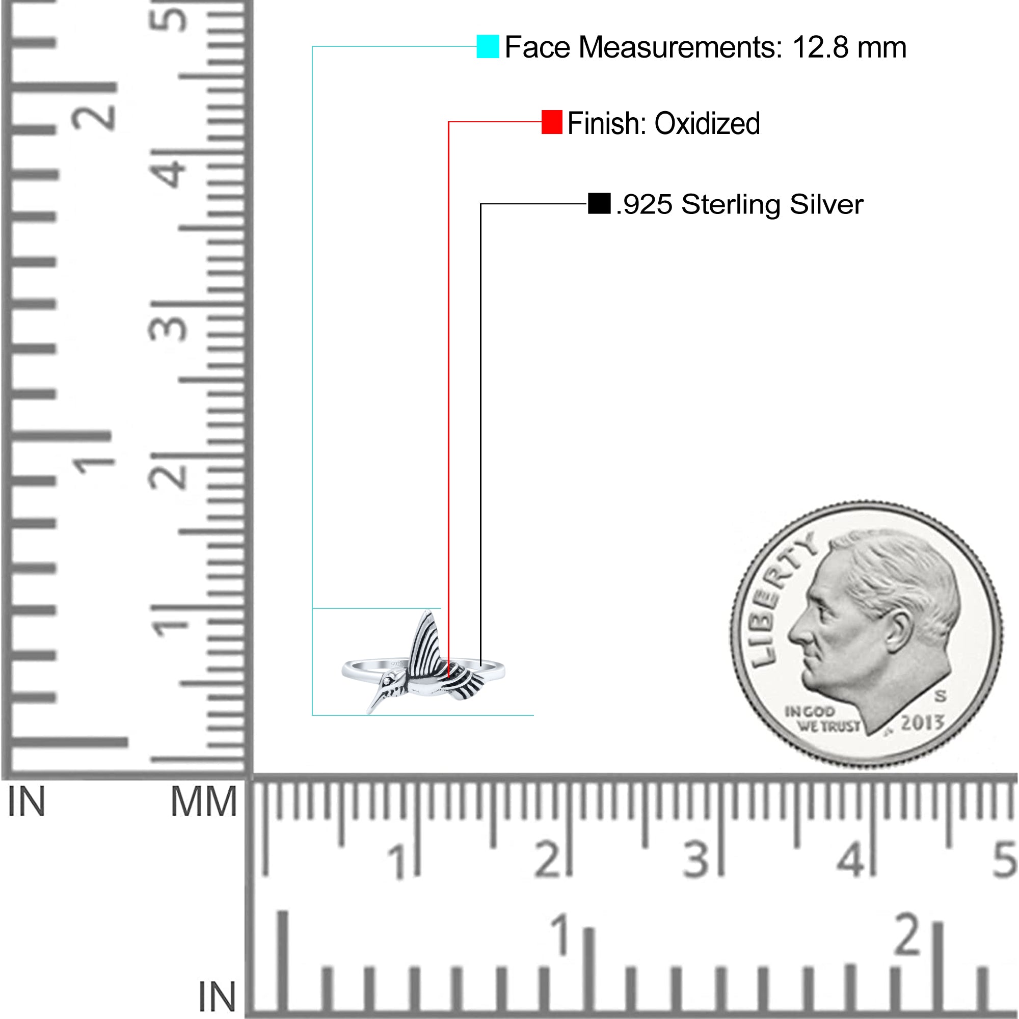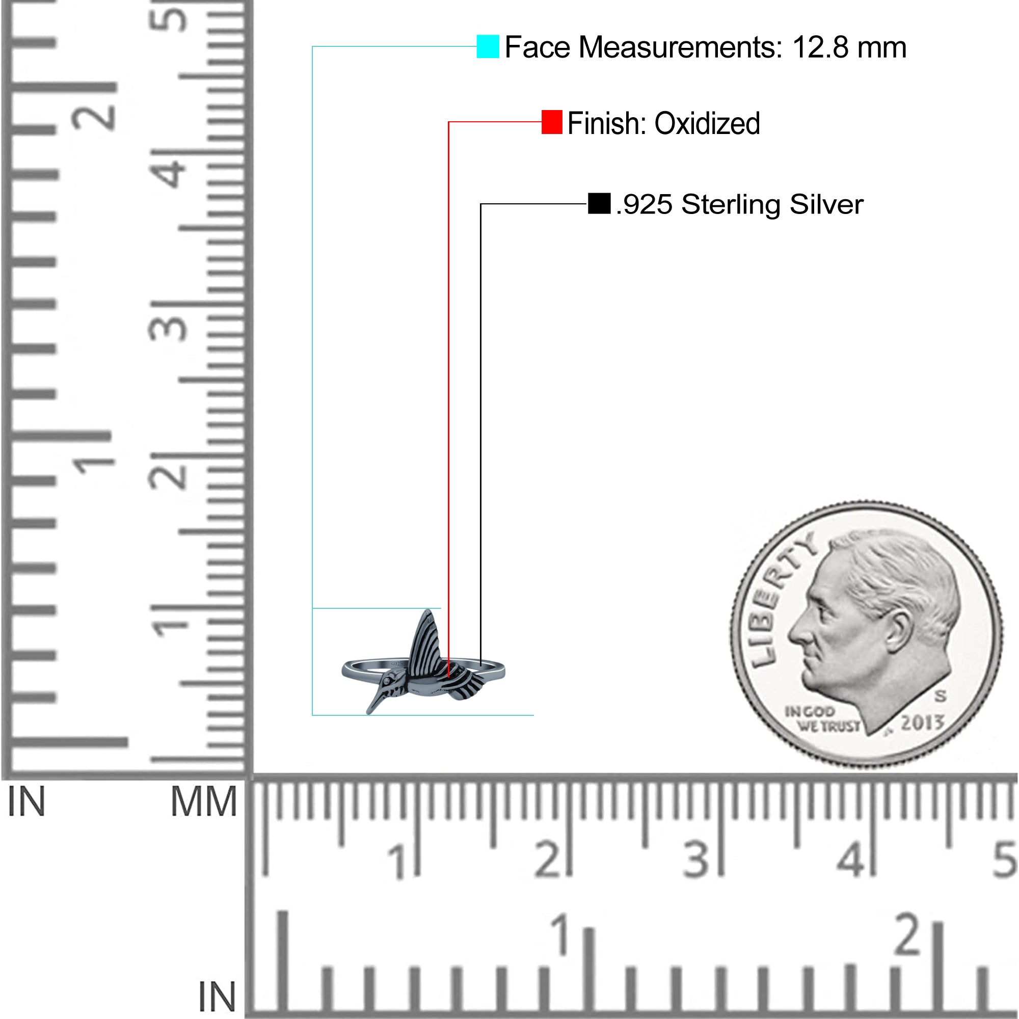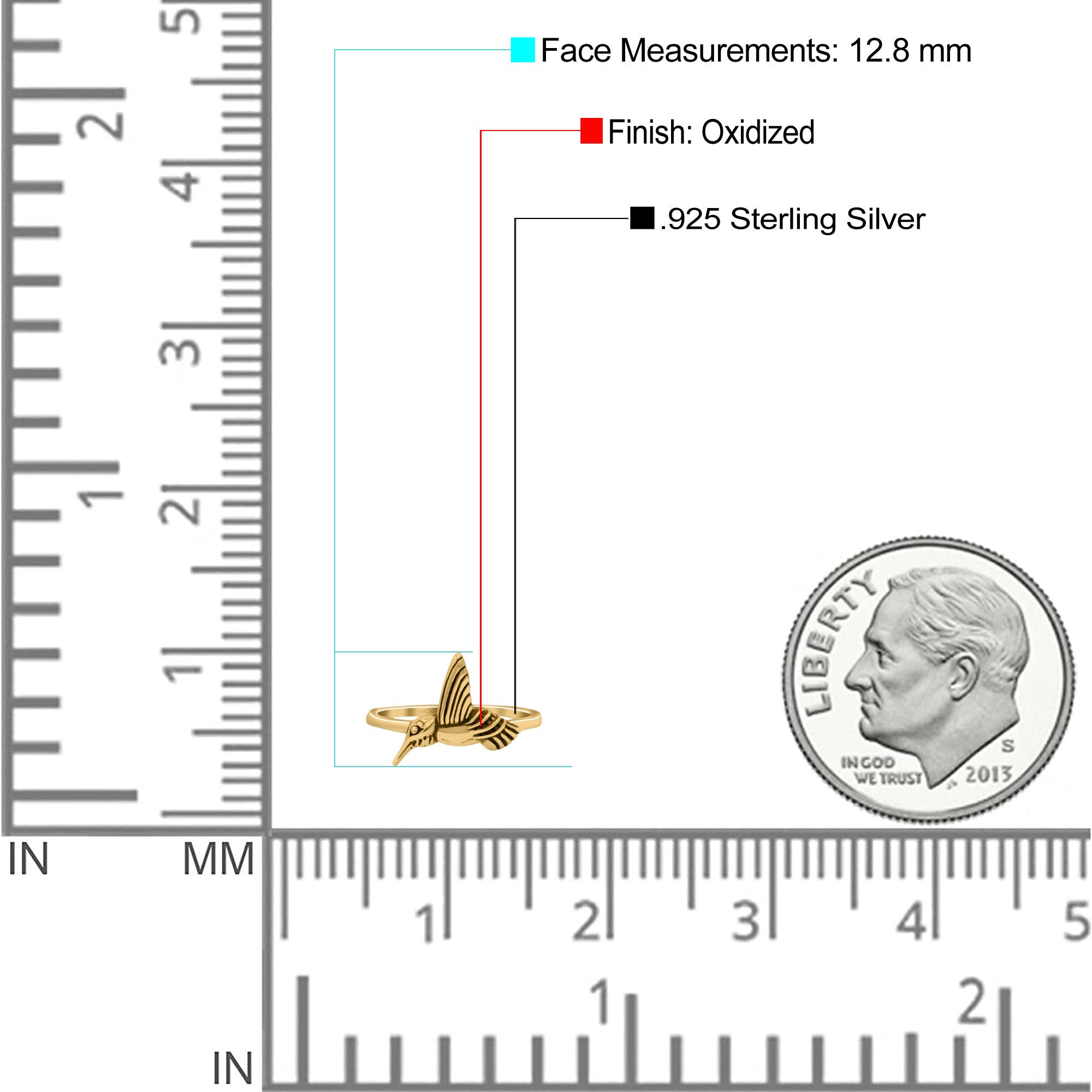 Petite Dainty Hummingbird Artisan Statement Plain Ring Oxidized Thumb Band Solid 925 Sterling Silver Ring (12.8mm)