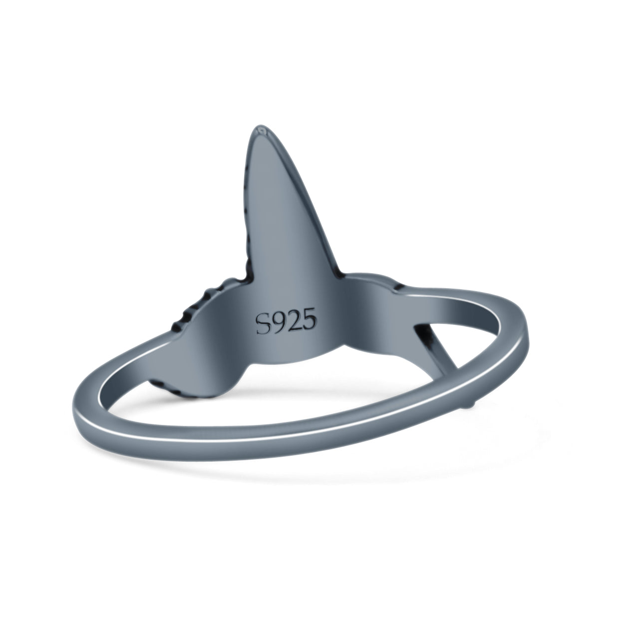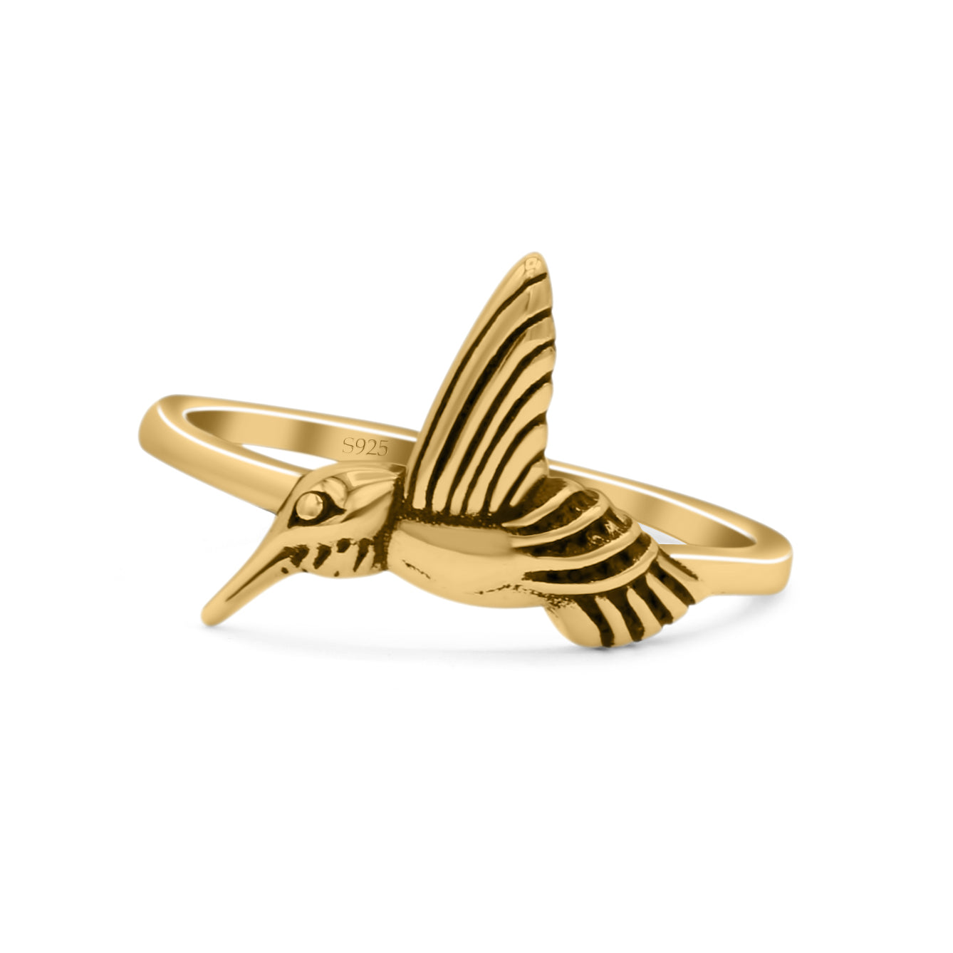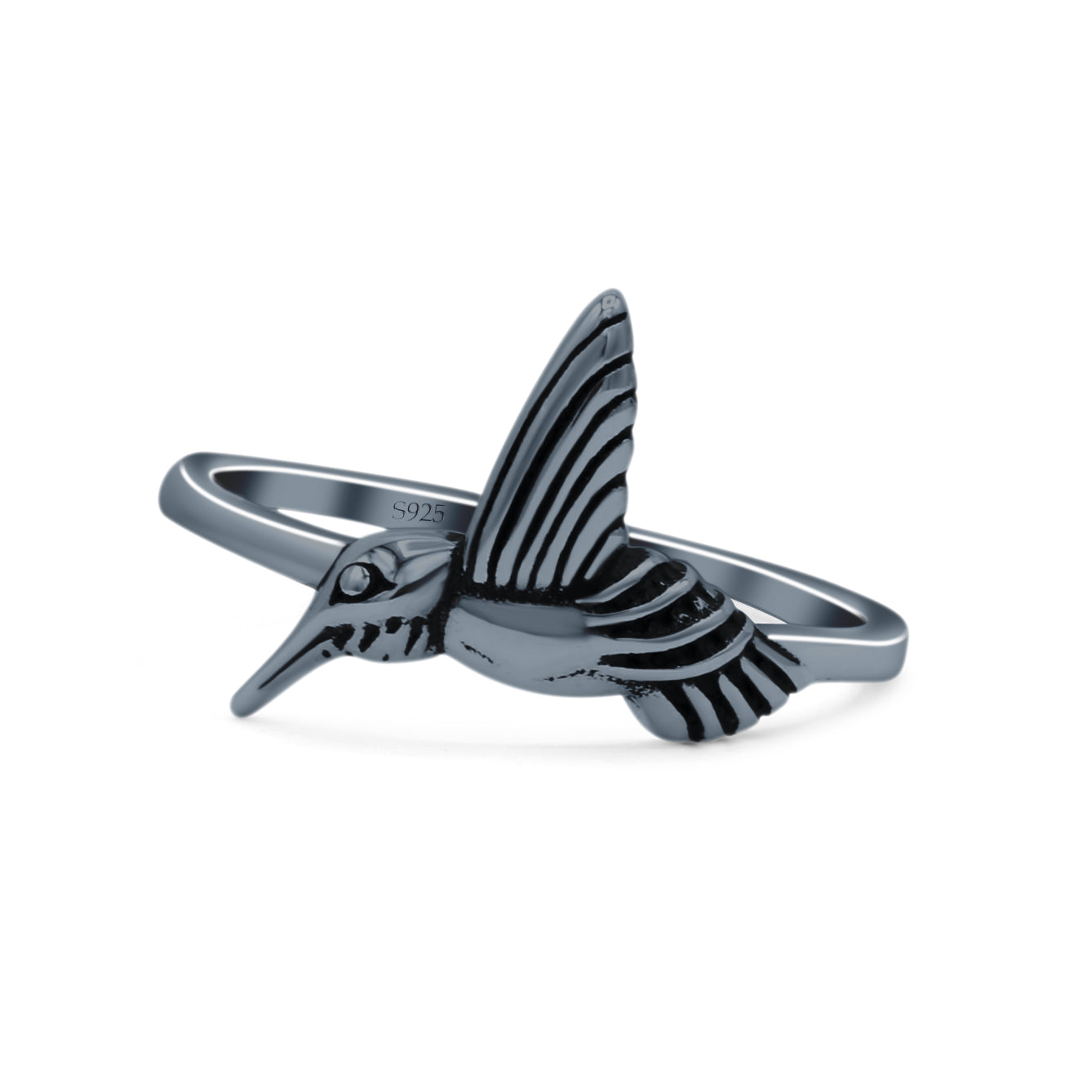 Petite Dainty Hummingbird Artisan Statement Plain Ring Oxidized Thumb Band Solid 925 Sterling Silver Ring (12.8mm)
