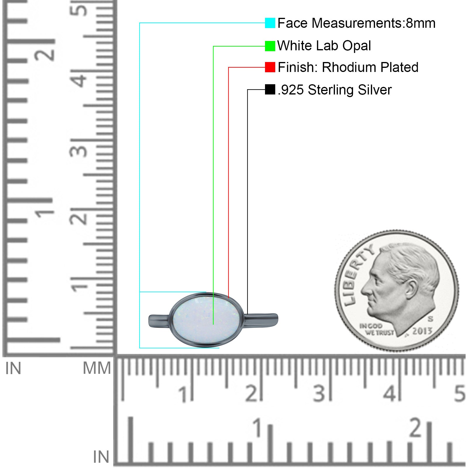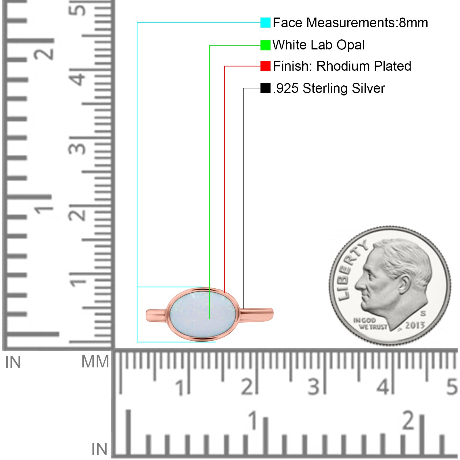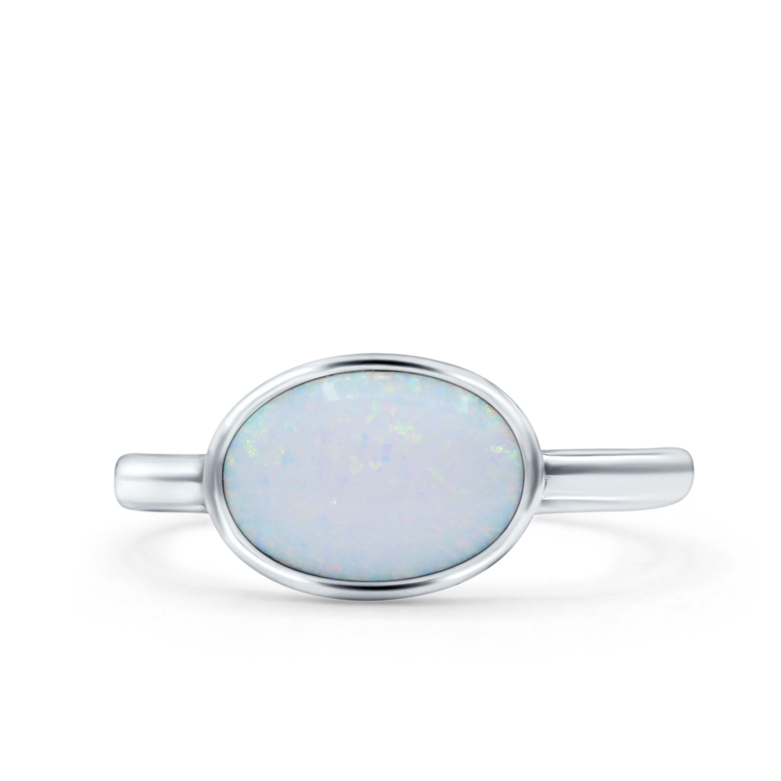 Petite Dainty Oval Promise Ring Band Rhodium Plated 925 Sterling Silver (8mm)