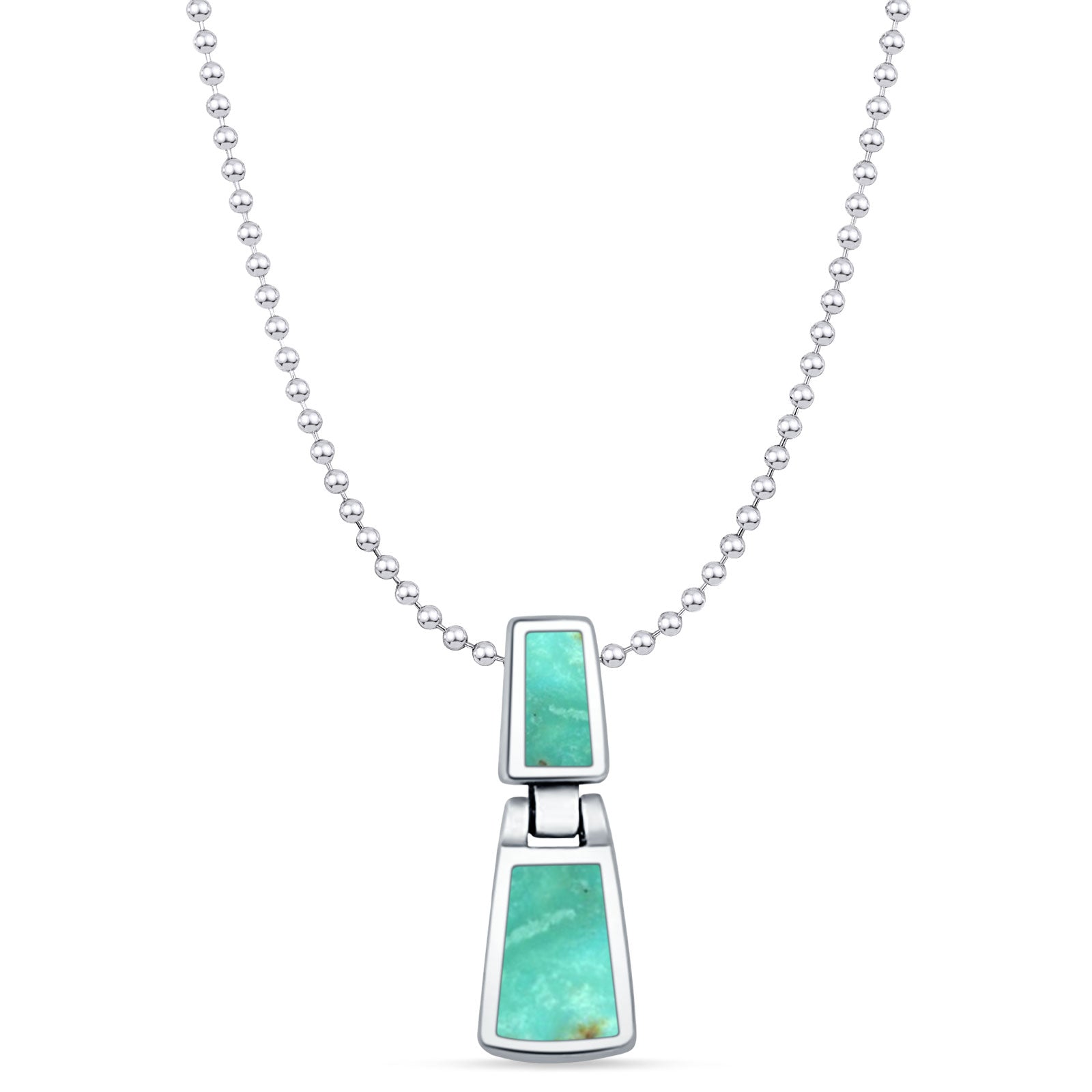 Rectangular Turquoise Drop Dangle Pendant Oxidized Bead Chain Necklace 925 Sterling Silver
