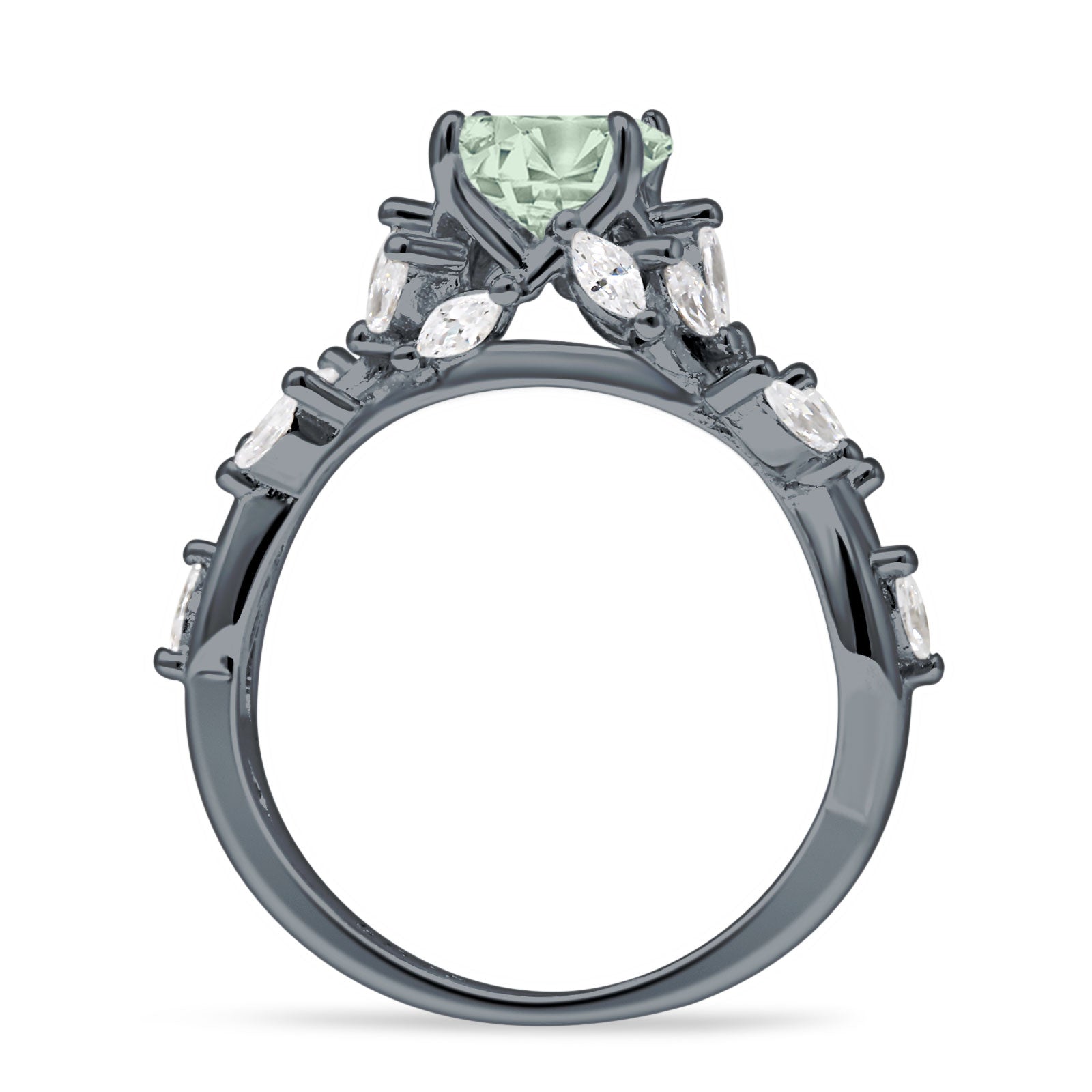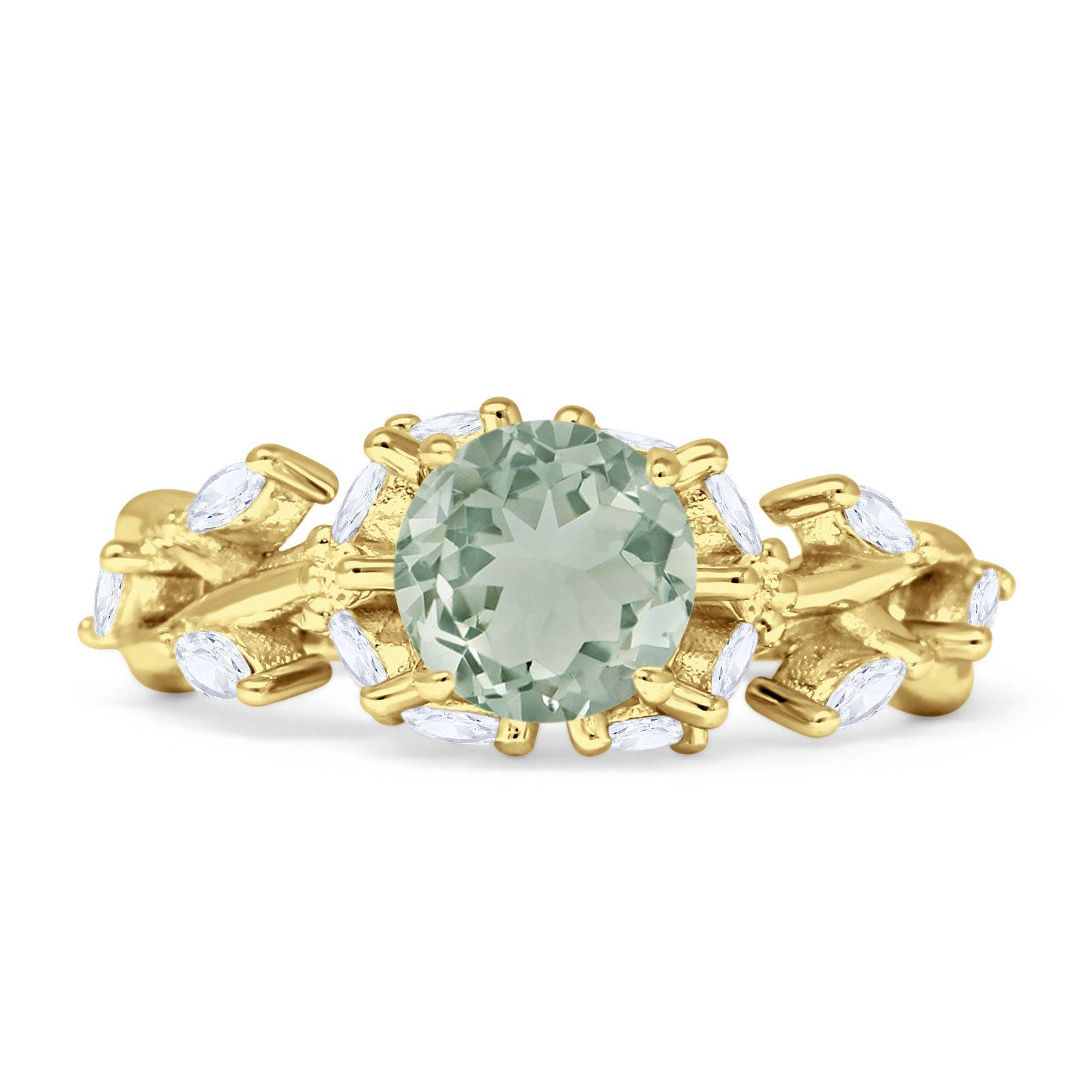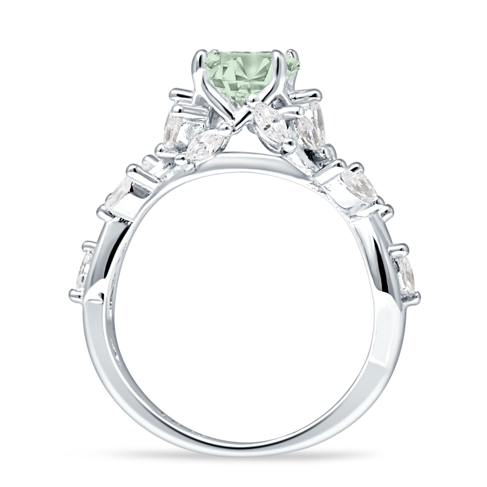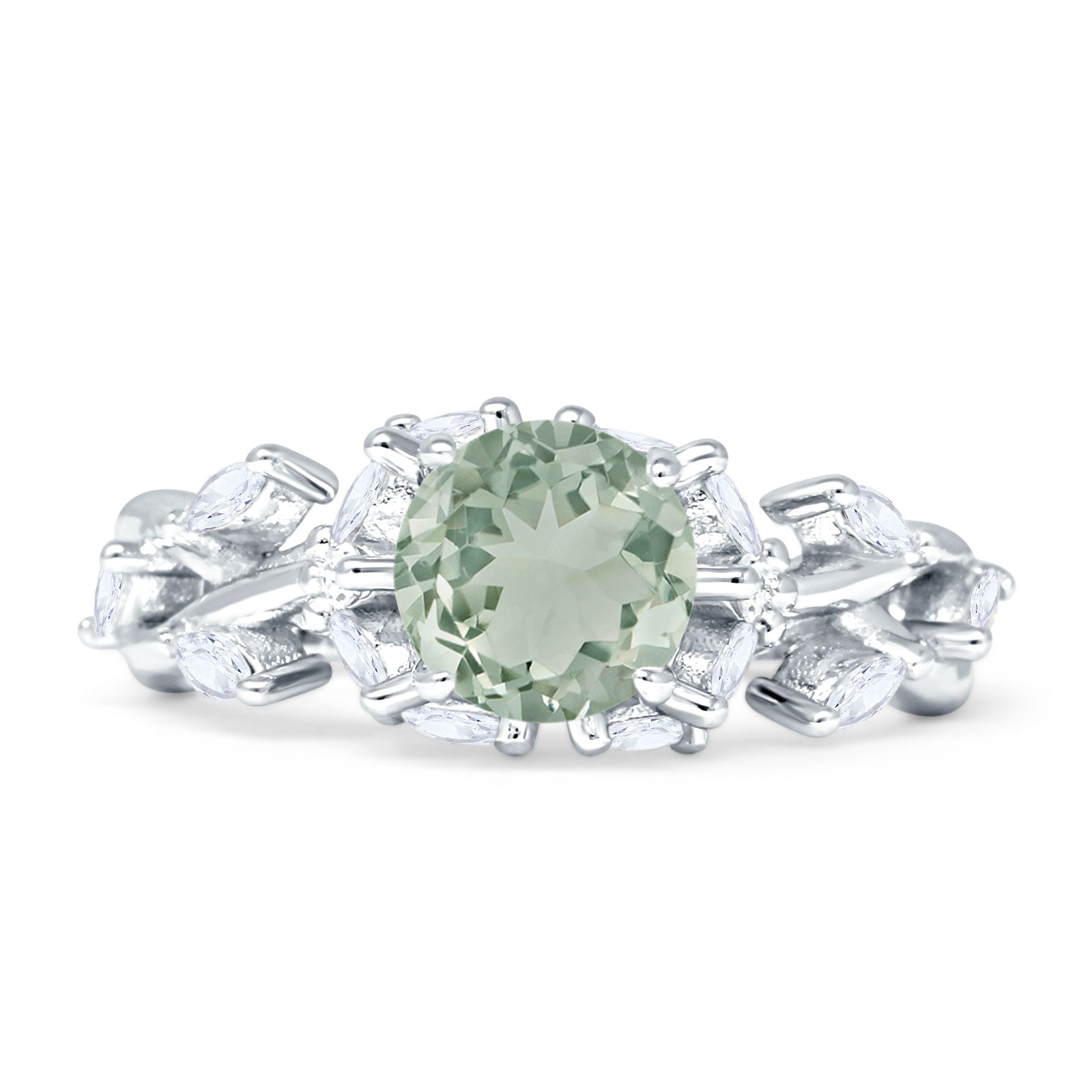 Round Infinity Marquise Vintage Style Floral Ring Natural Green Amethyst Prasiolite 925 Sterling Silver