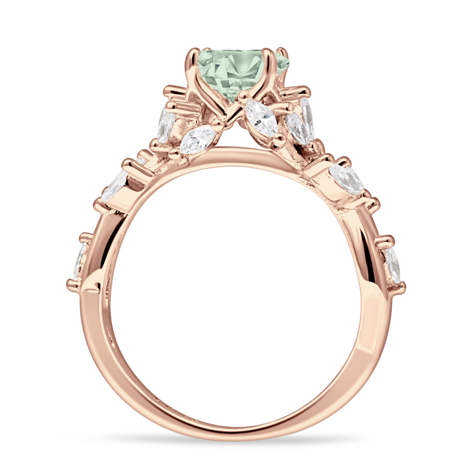Natural Green Amethyst Prasiolite Rose Tone Silver