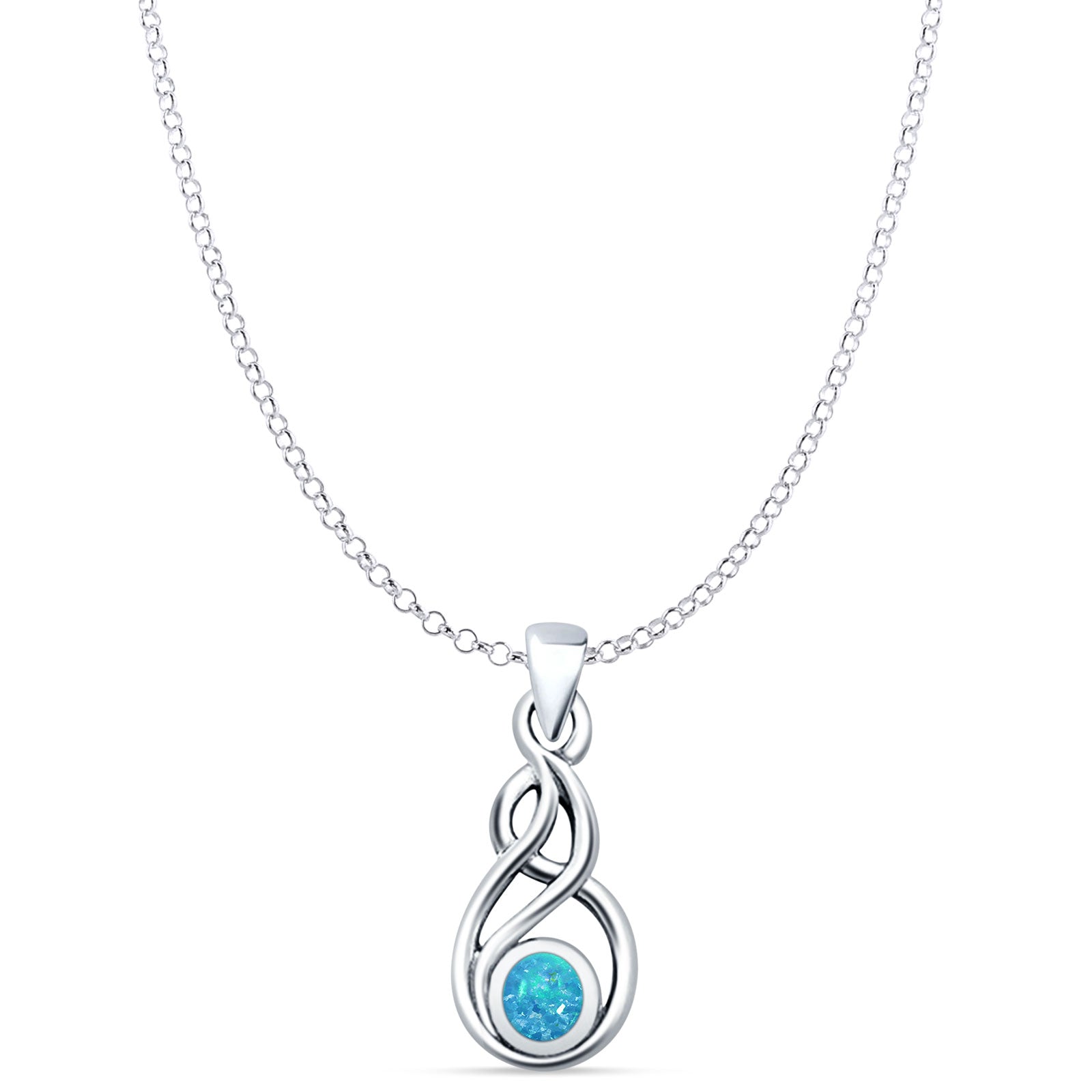Style: Lab Created Blue Opal Celtic Style Pendant Necklace