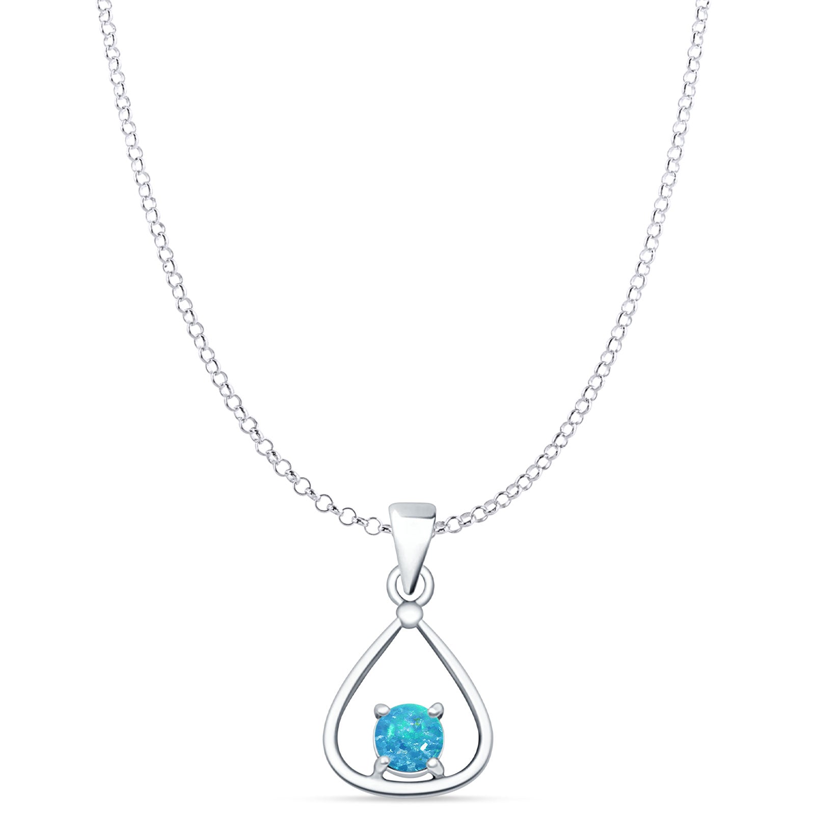 Style: Lab Created Blue Opal Oxidized Teardrop Pendant Necklace