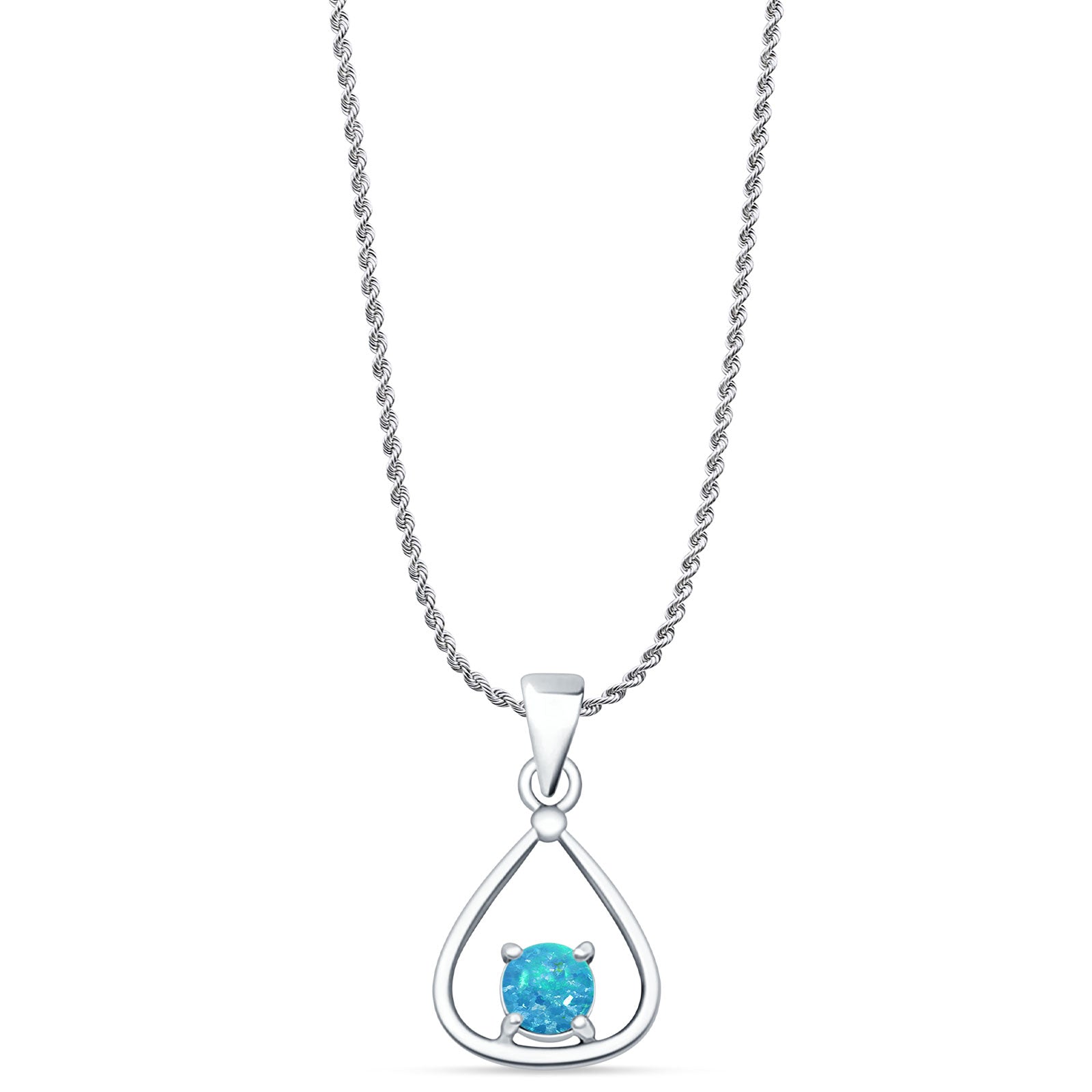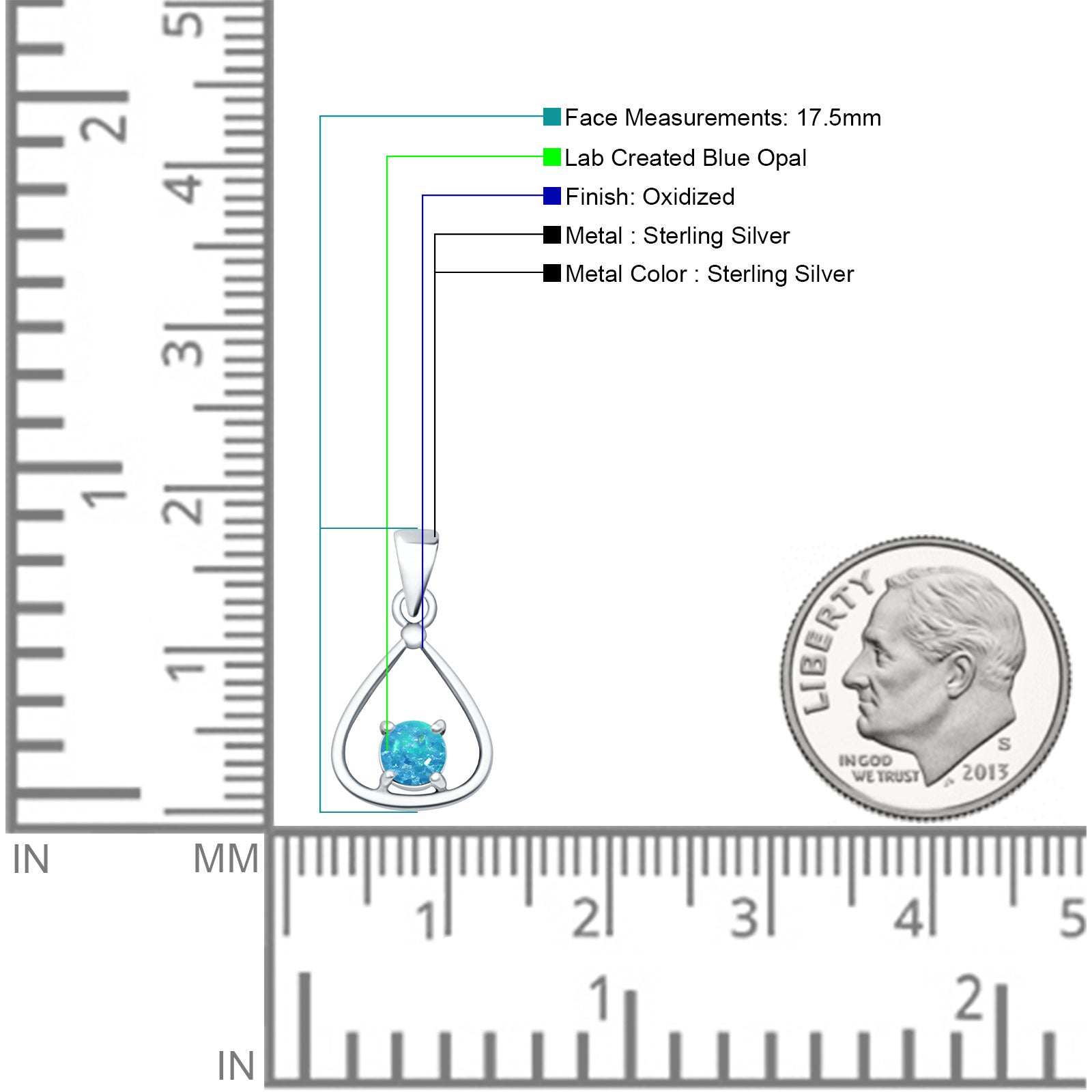 Style: Lab Created Blue Opal Oxidized Teardrop Pendant Necklace
