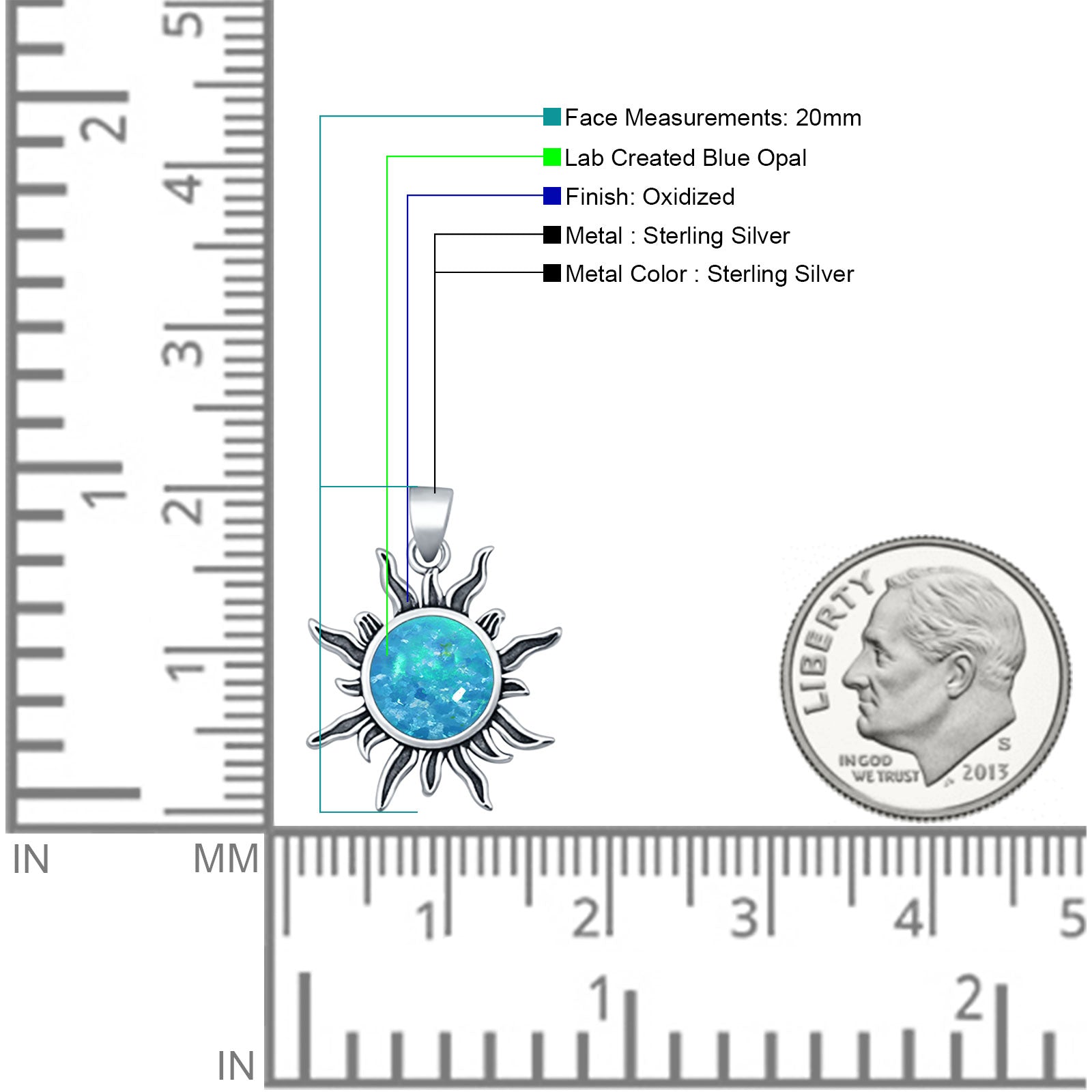 Round Lab Created Blue Opal Sun Pendant Snake Chain Necklace Oxidized 925 Sterling Silver