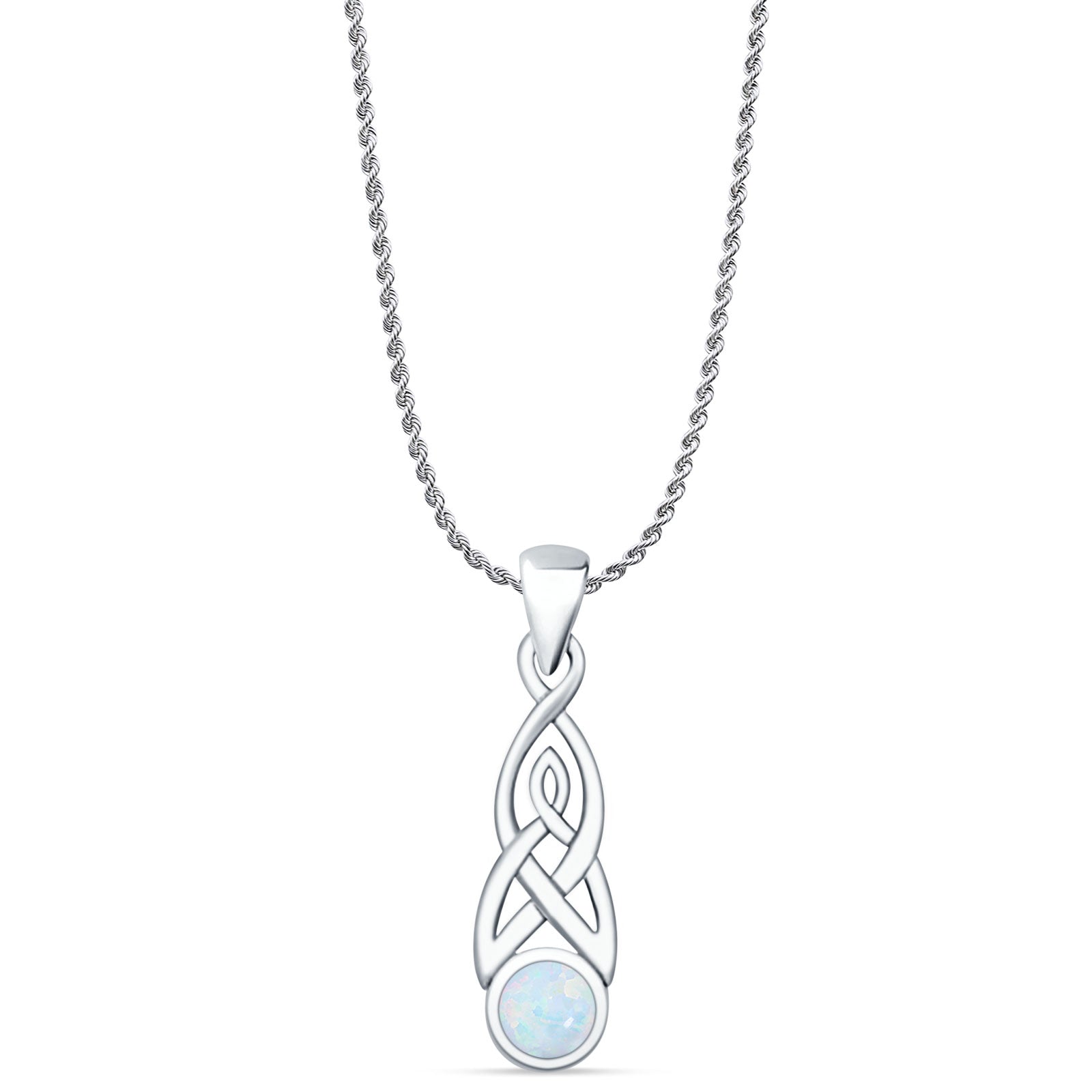 Style: Oxidized Lab Created White Opal Celtic Style Pendant Necklace
