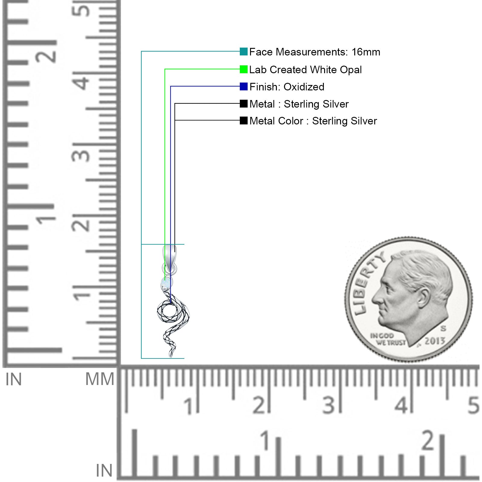Round Lab Created White Opal Snake Pendant Rope Chain Necklace Oxidized 925 Sterling Silver