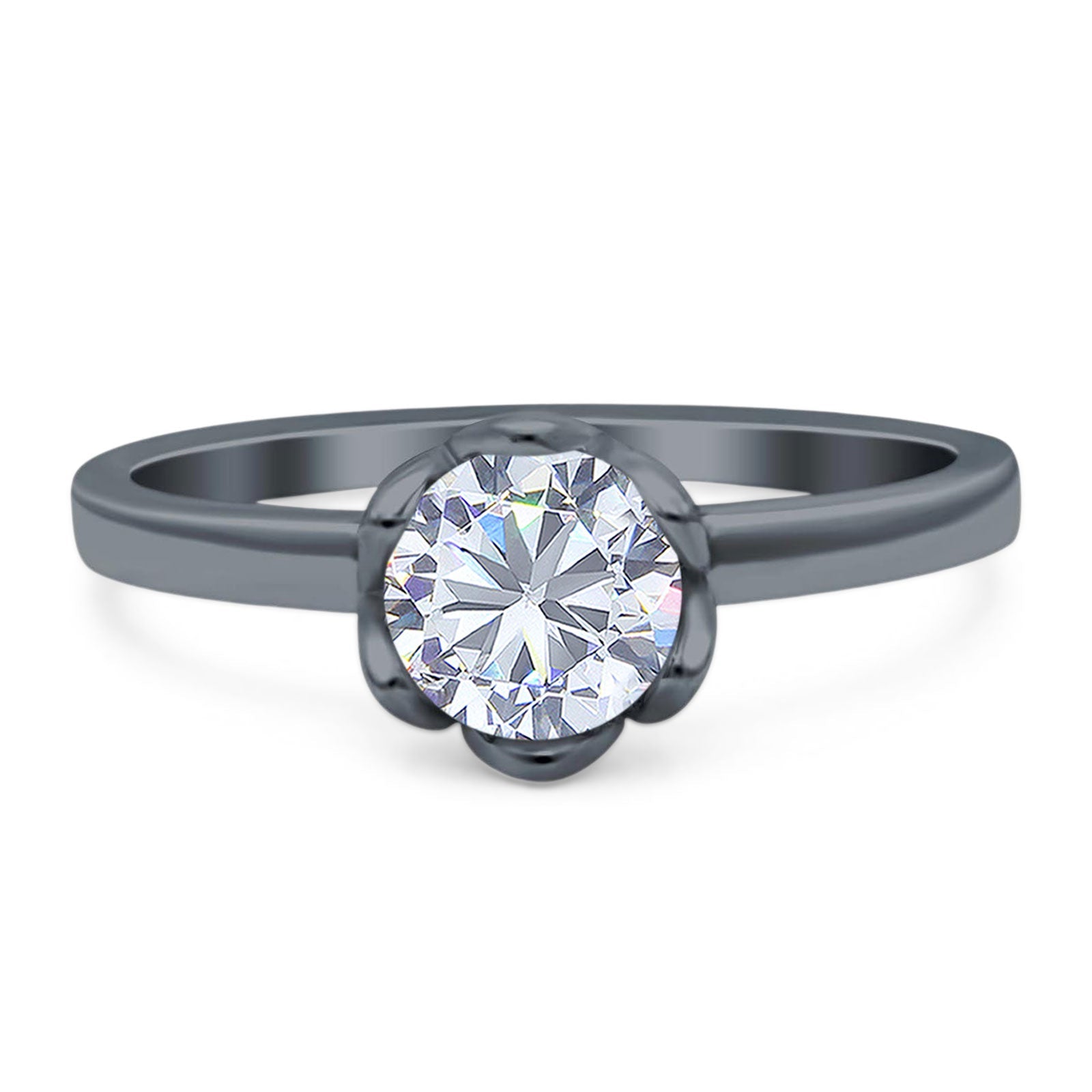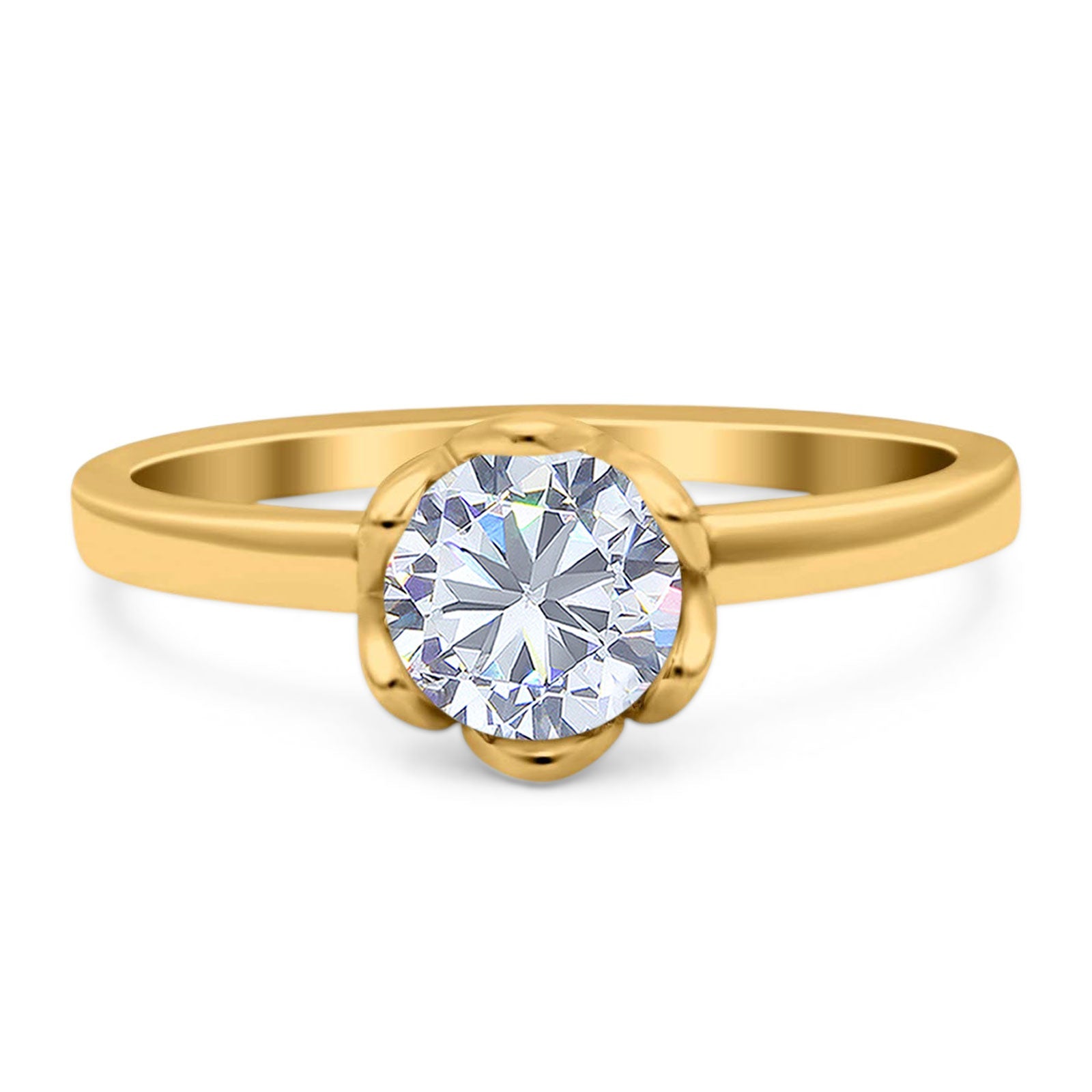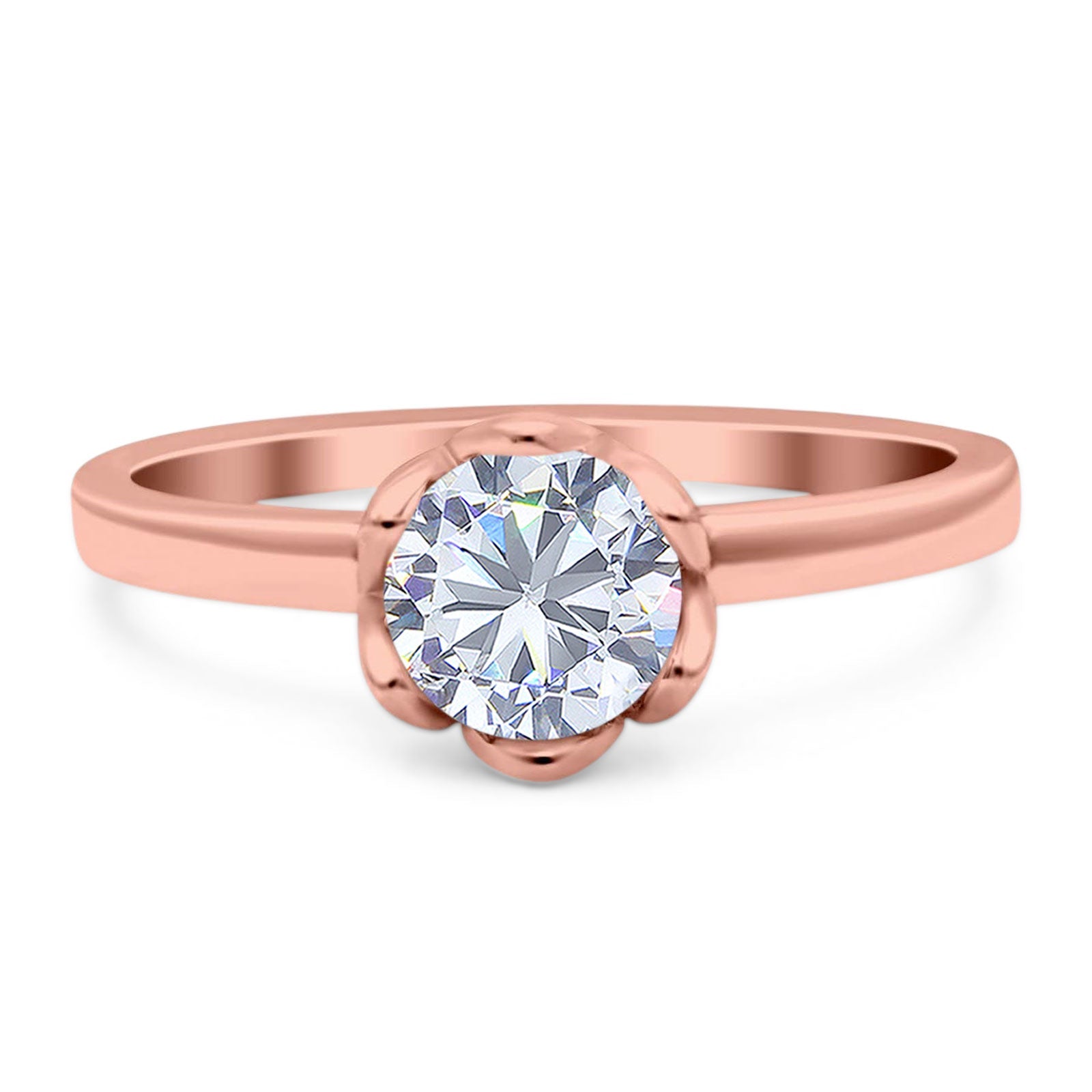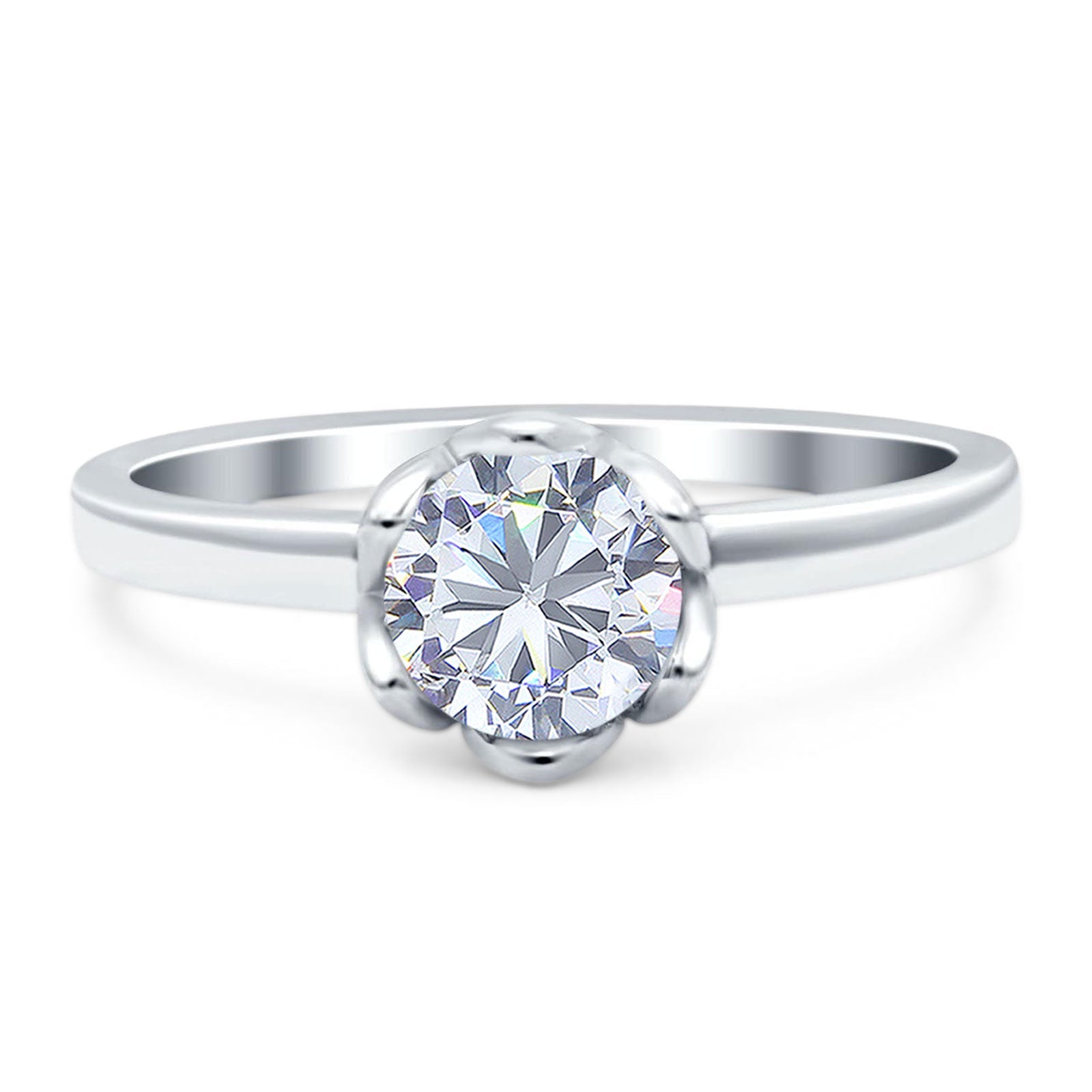 Round Moissanite Solitaire Flower Ring 925 Sterling Silver