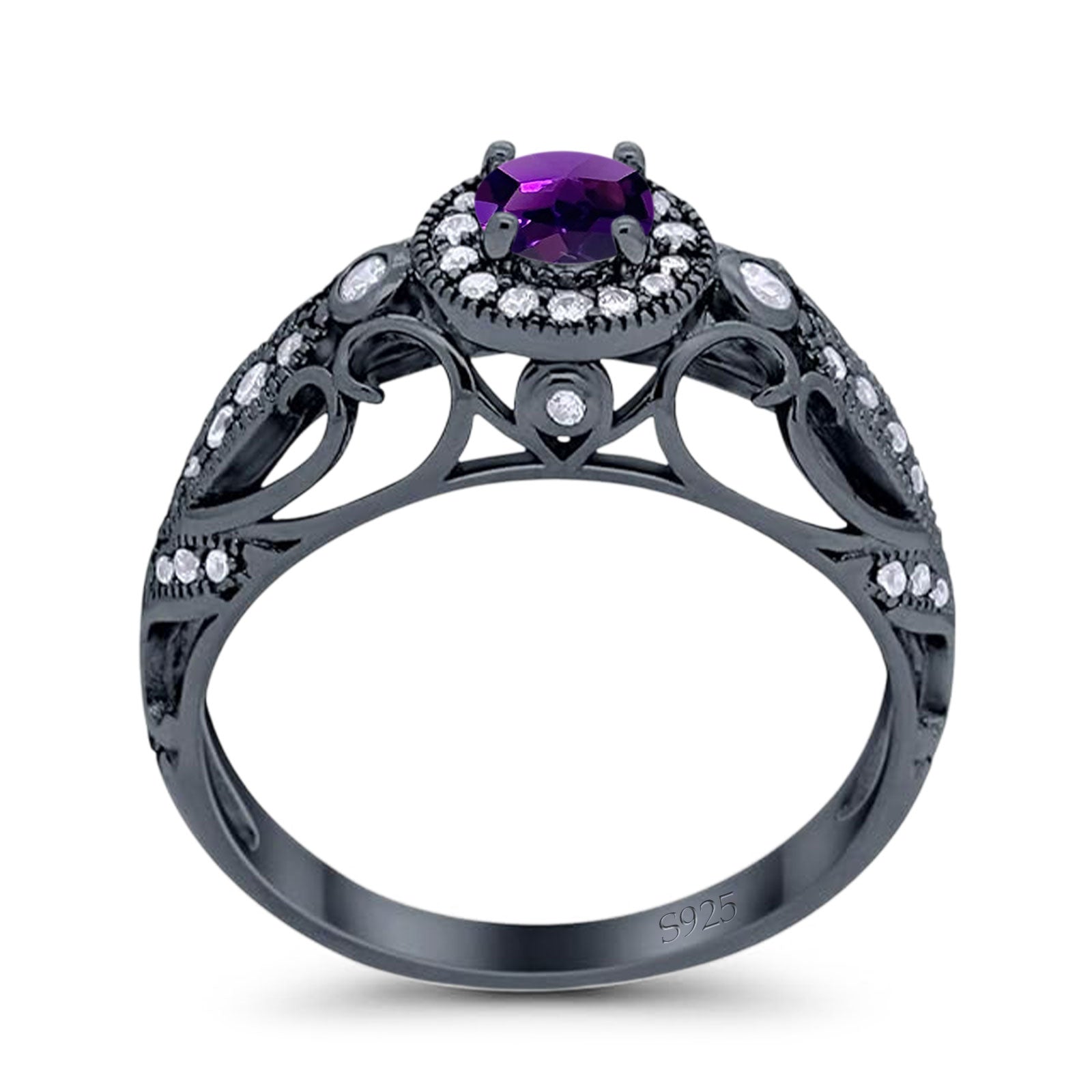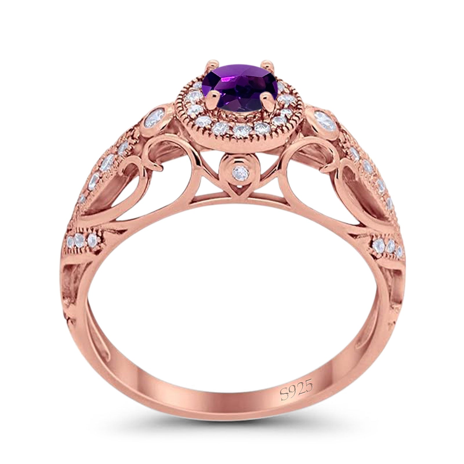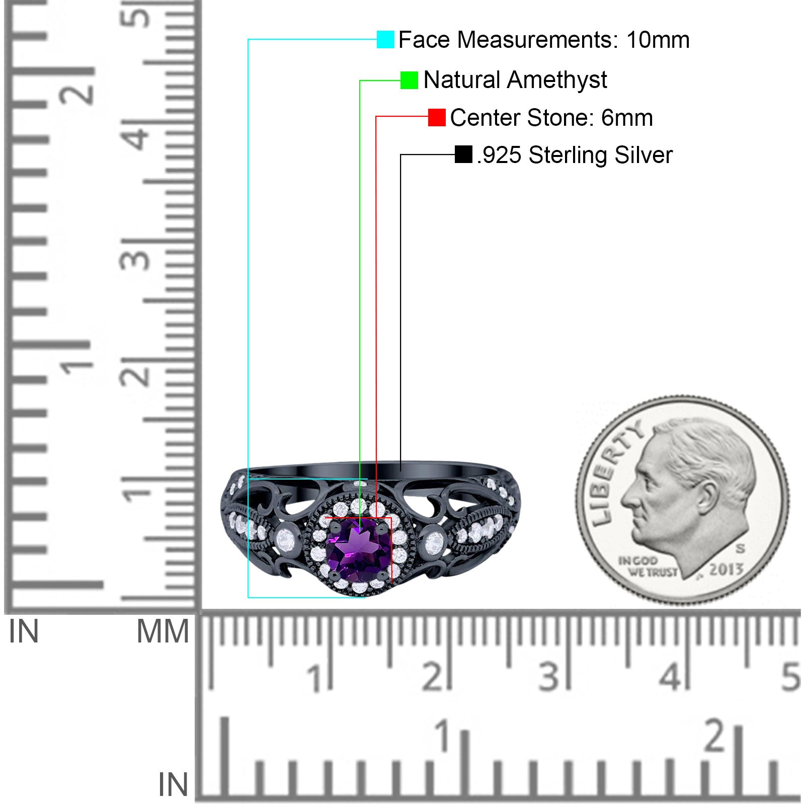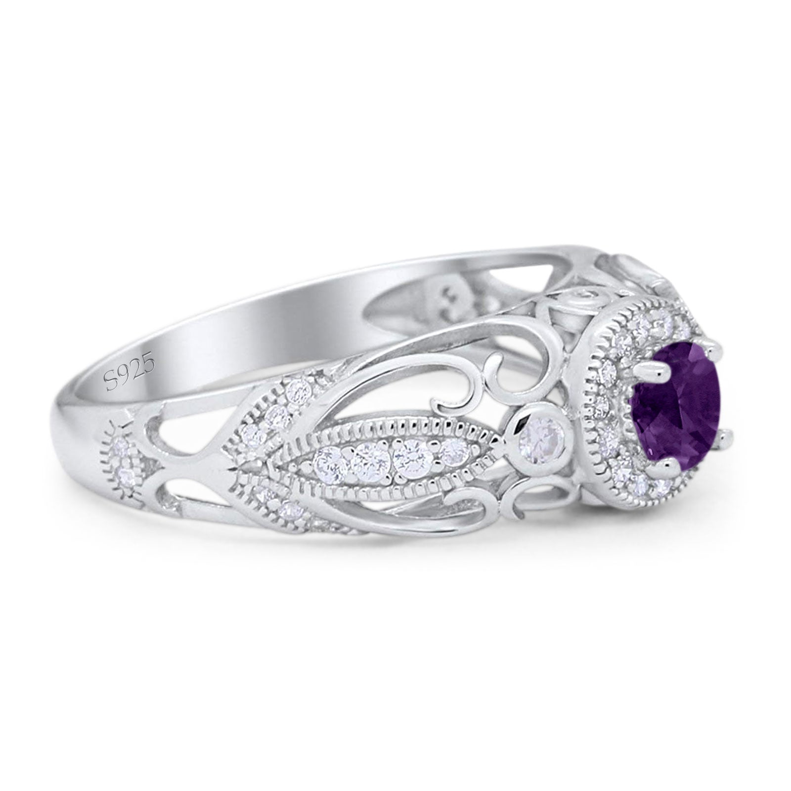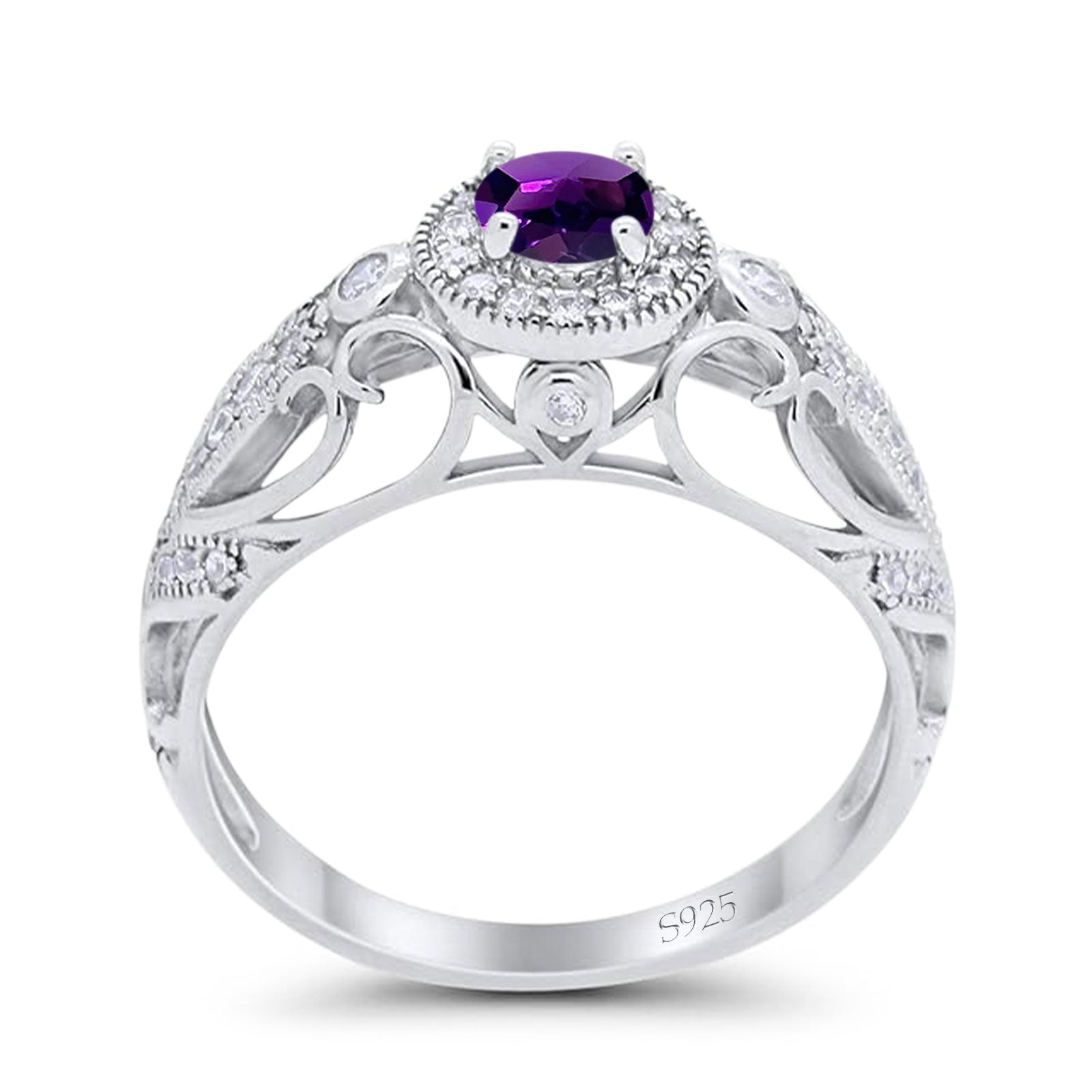 Round Natural Amethyst Filigree Halo Ring 925 Sterling Silver