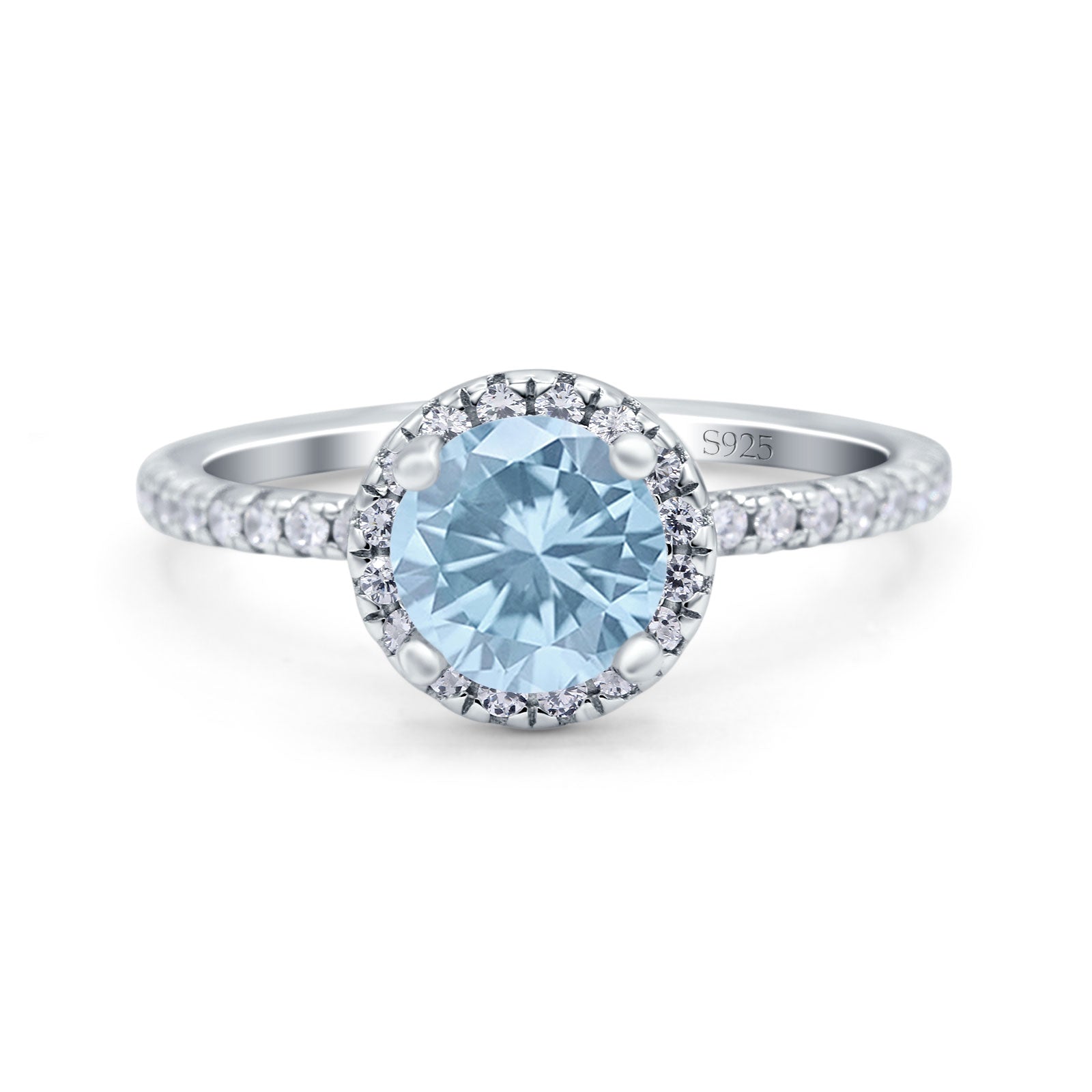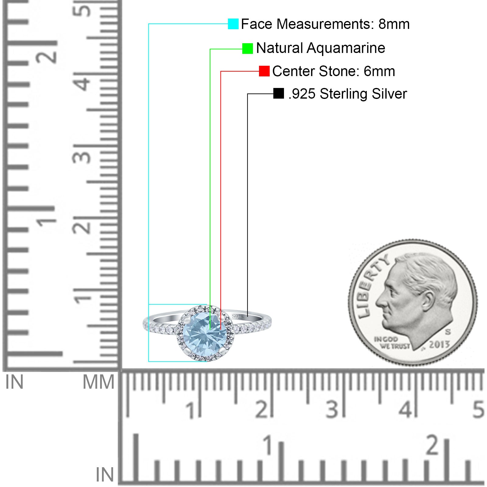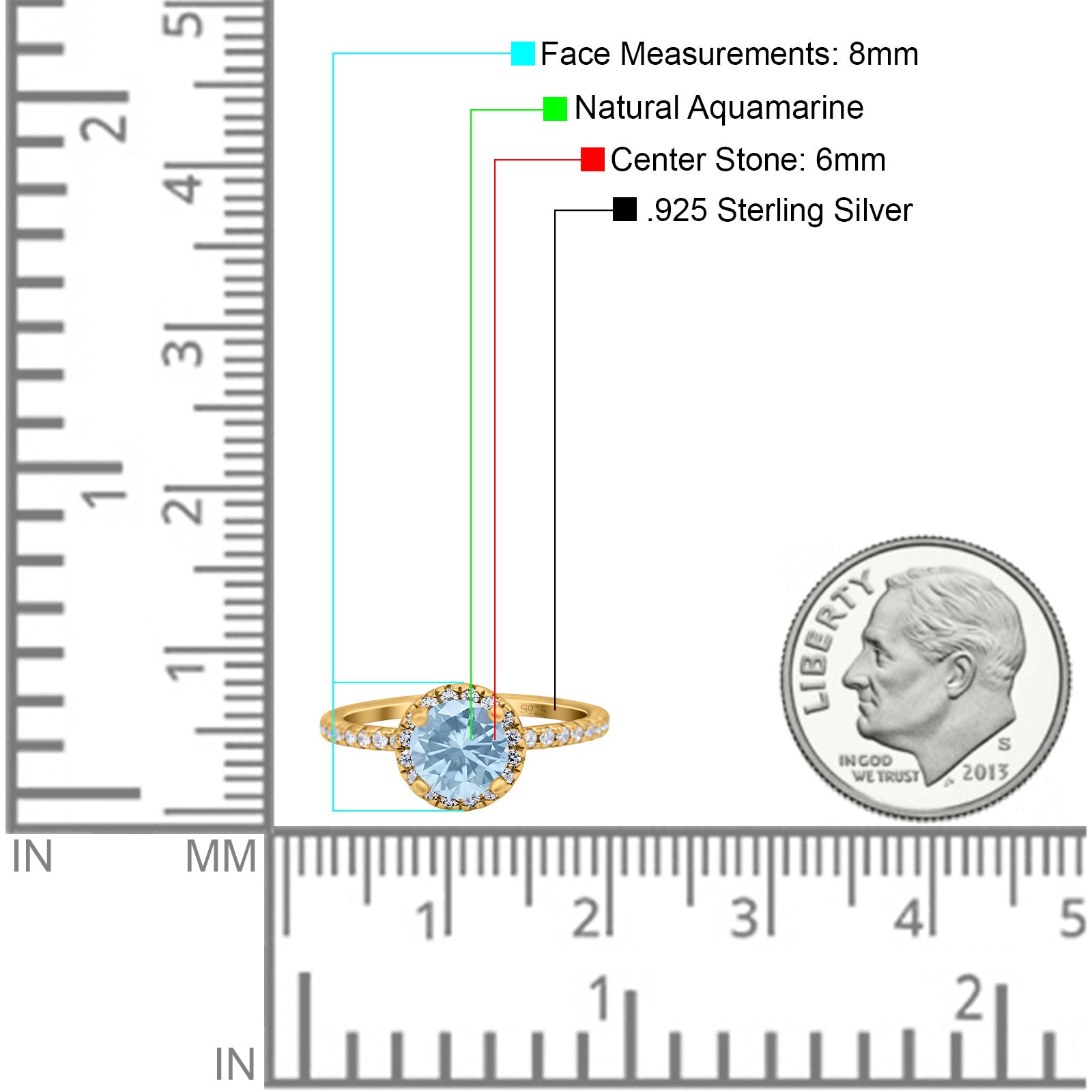 Round Natural Aquamarine Vintage Style Ring 925 Sterling Silver