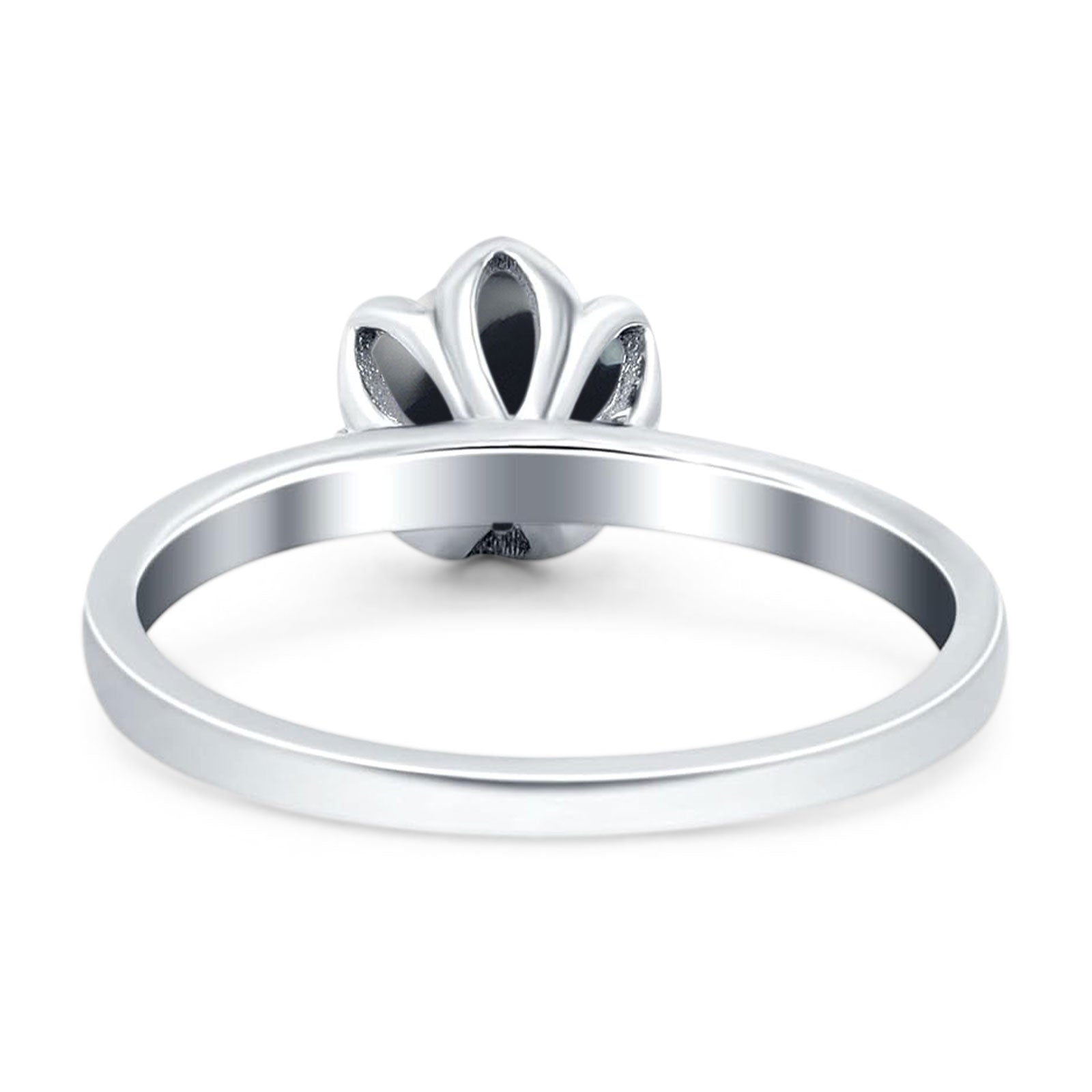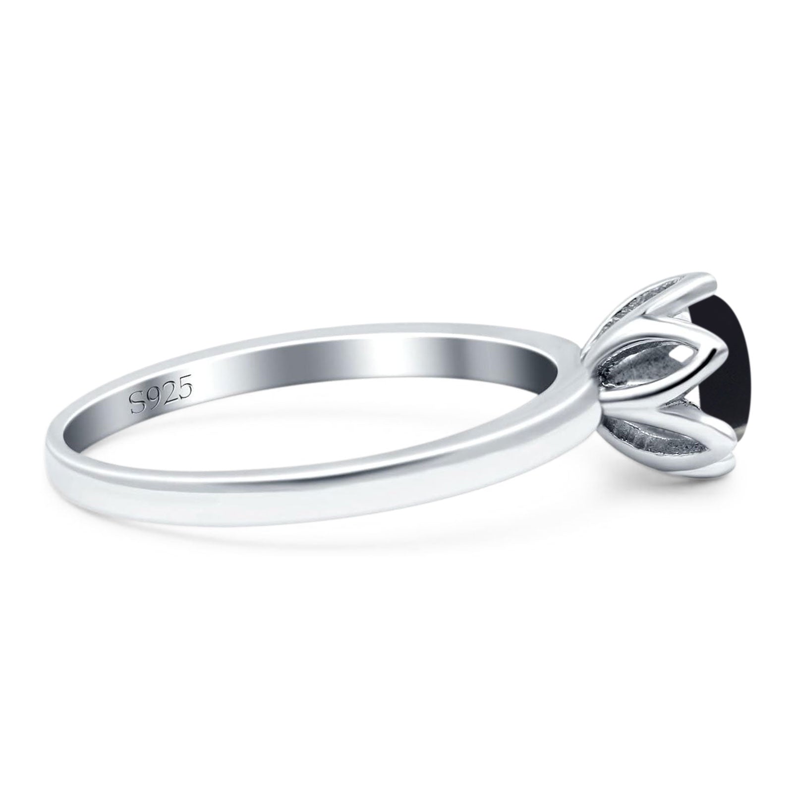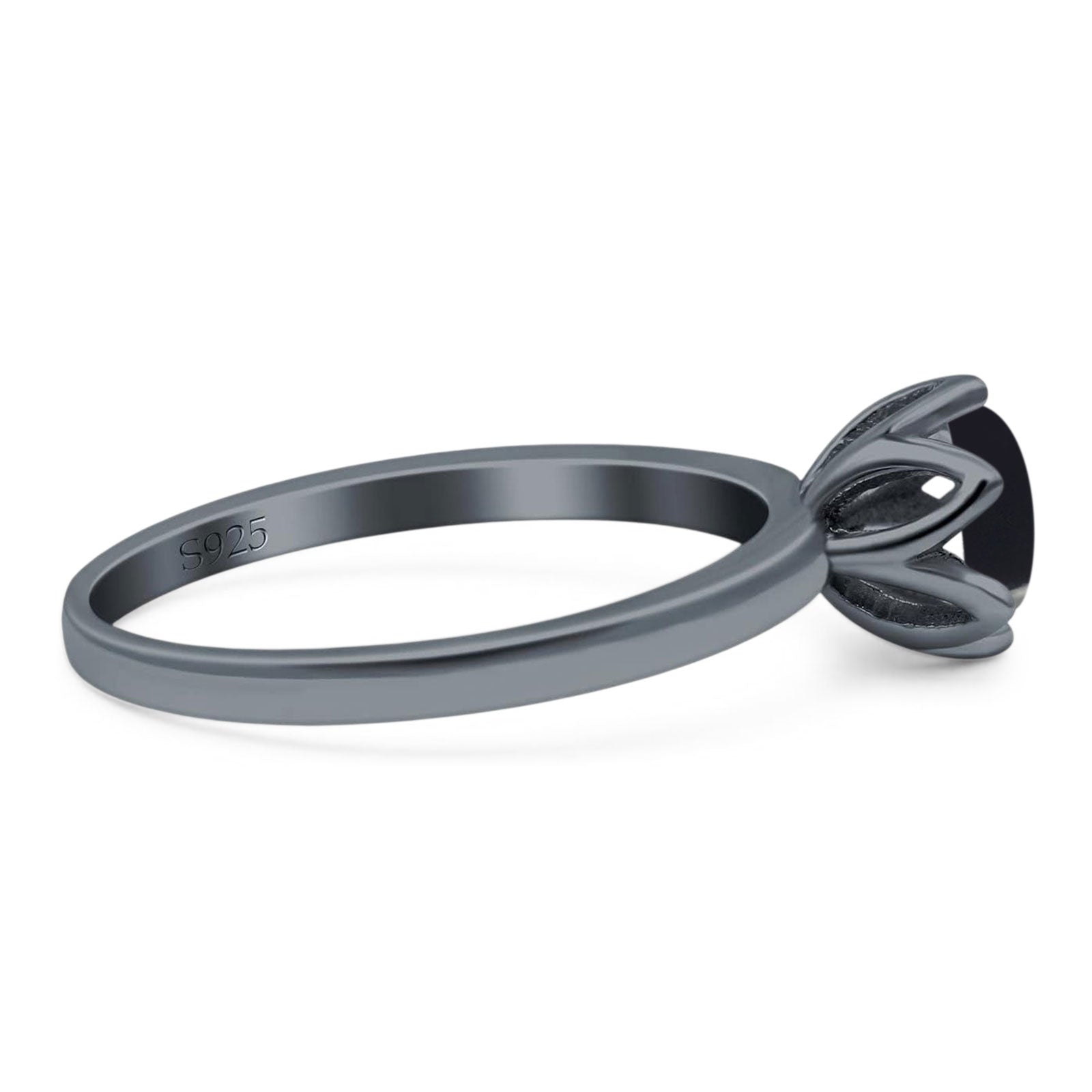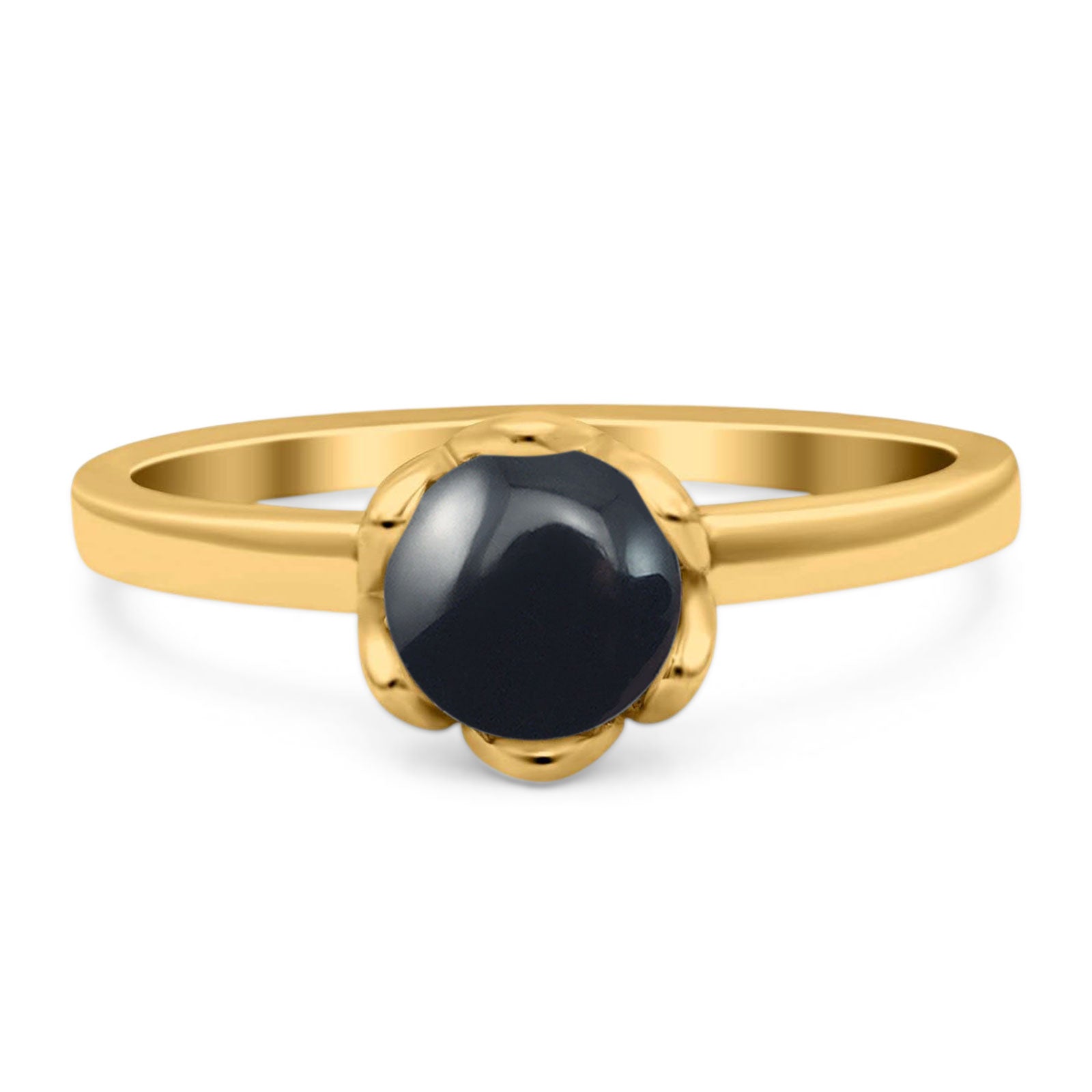 Round Natural Black Onyx Solitaire Flower Ring 925 Sterling Silver