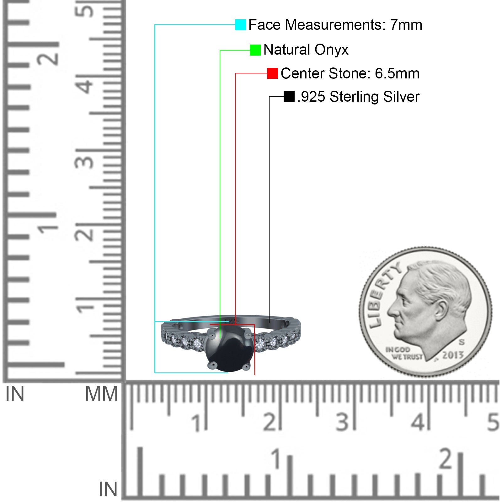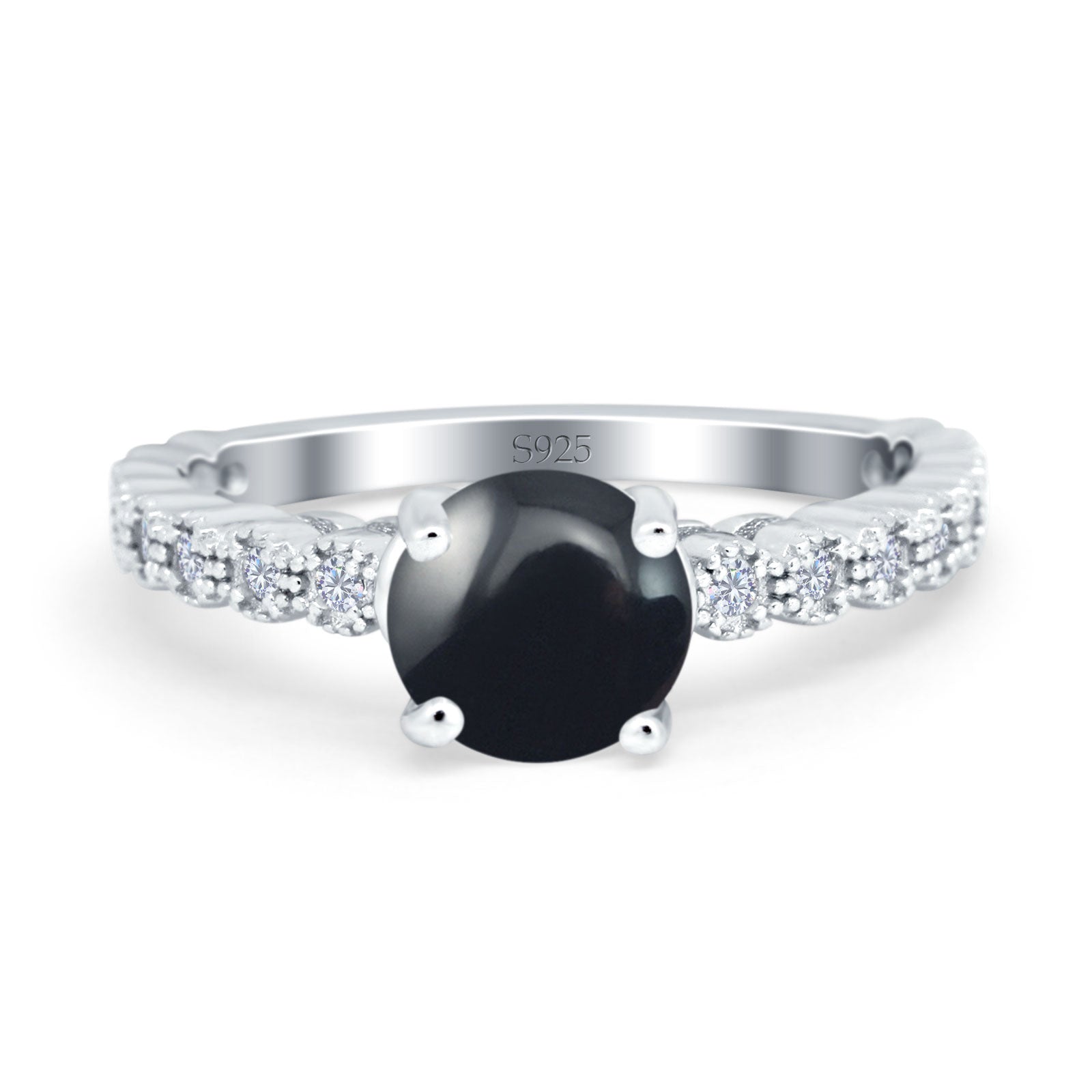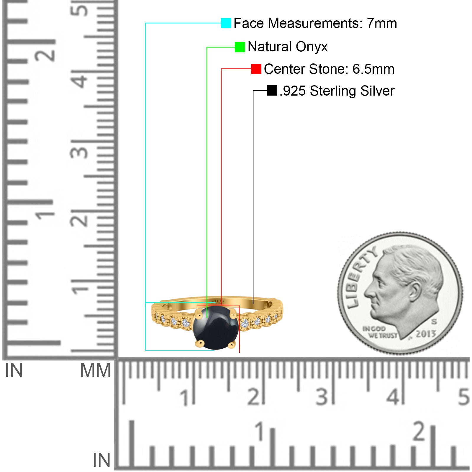 Round Natural Black Onyx Vintage Style Art Deco Ring 925 Sterling Silver