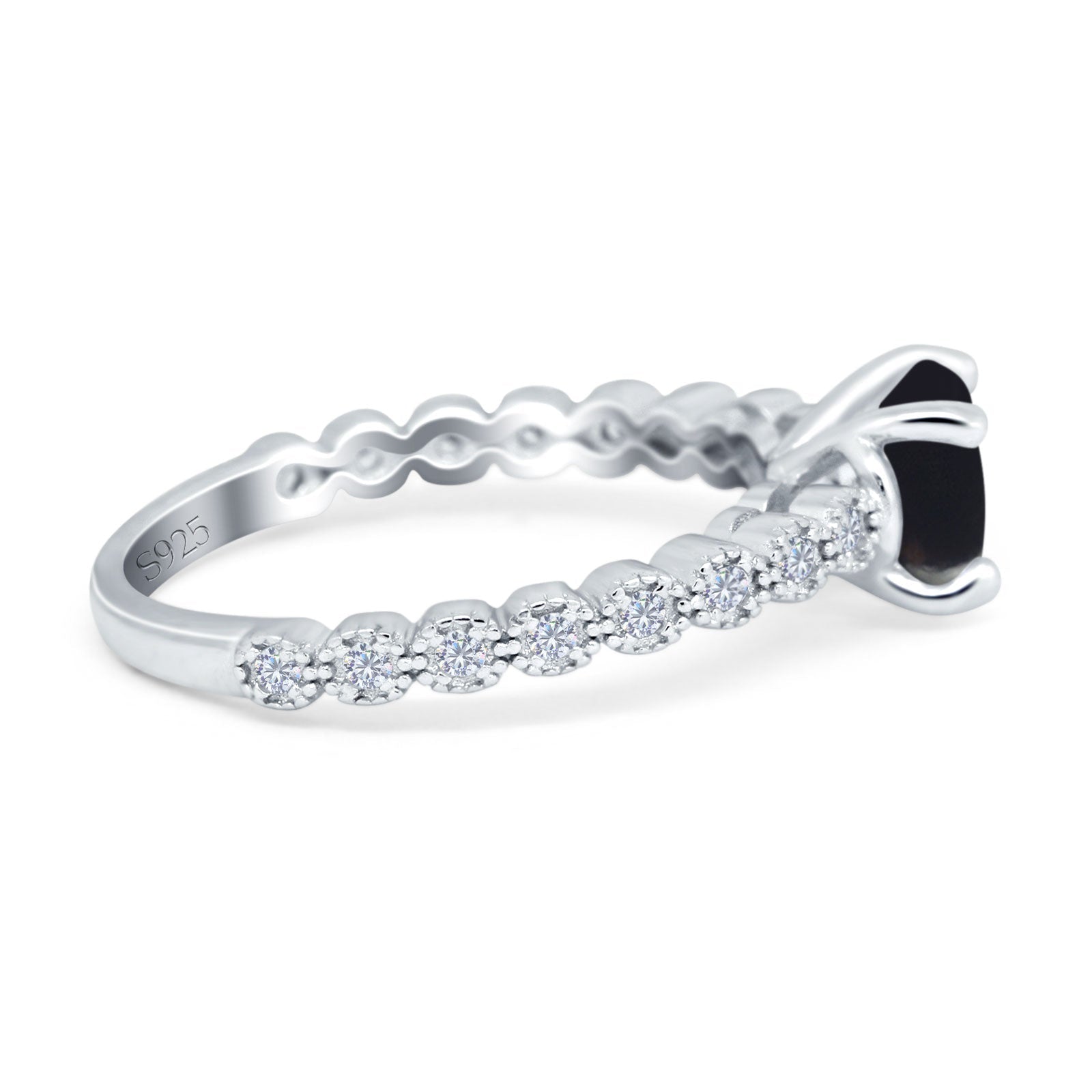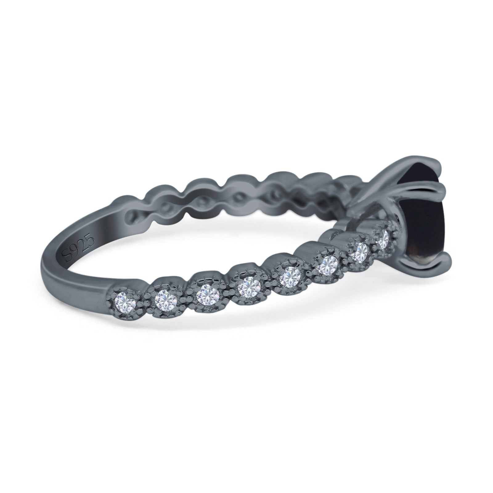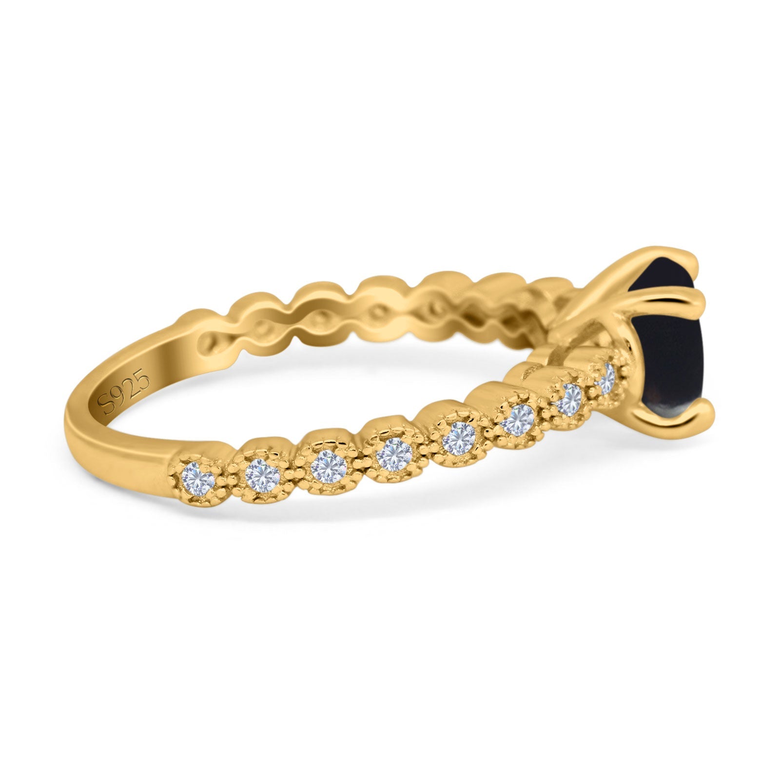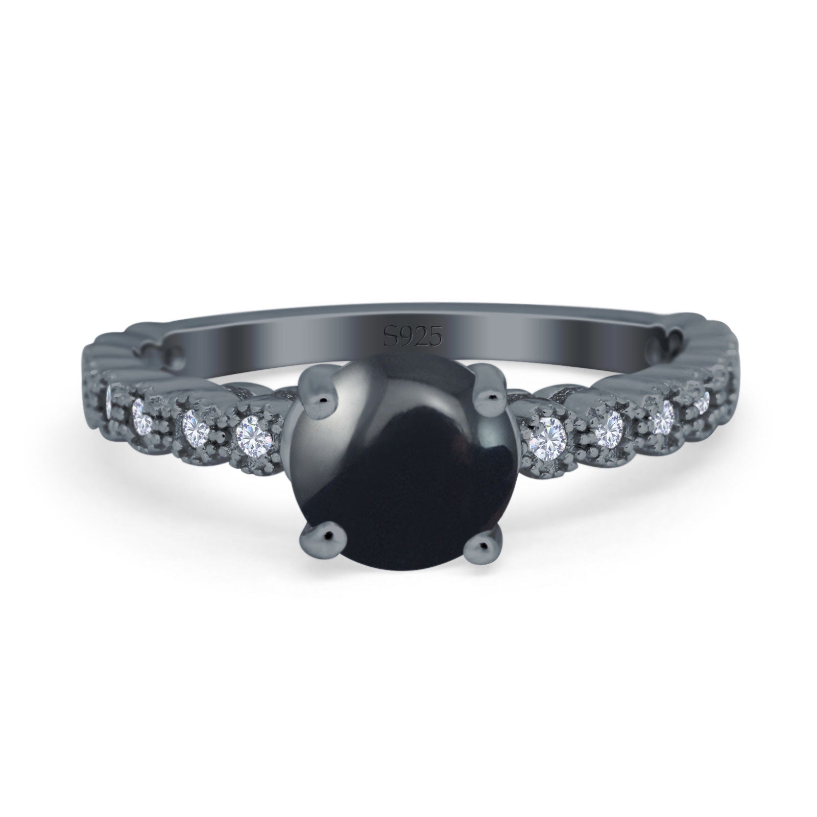 Round Natural Black Onyx Vintage Style Art Deco Ring 925 Sterling Silver