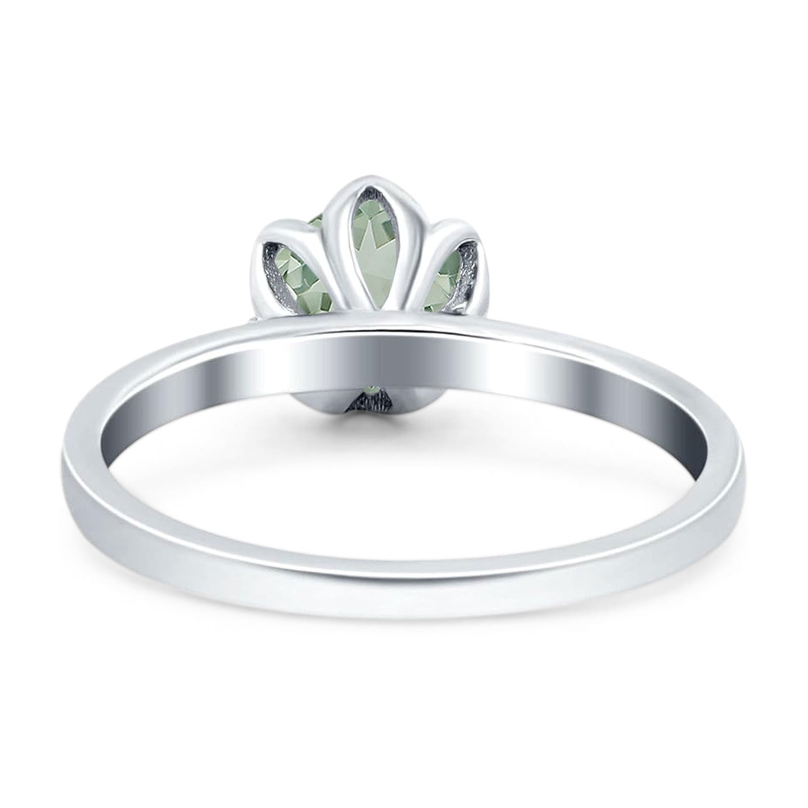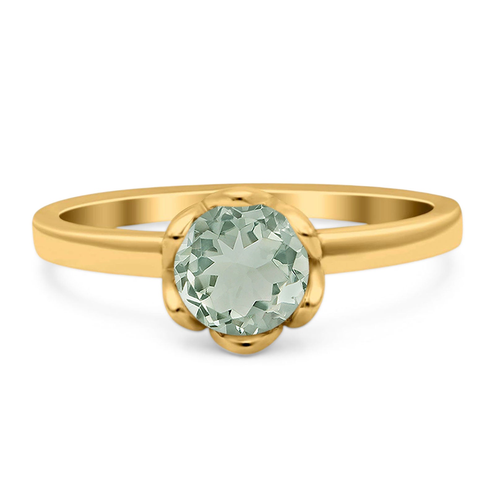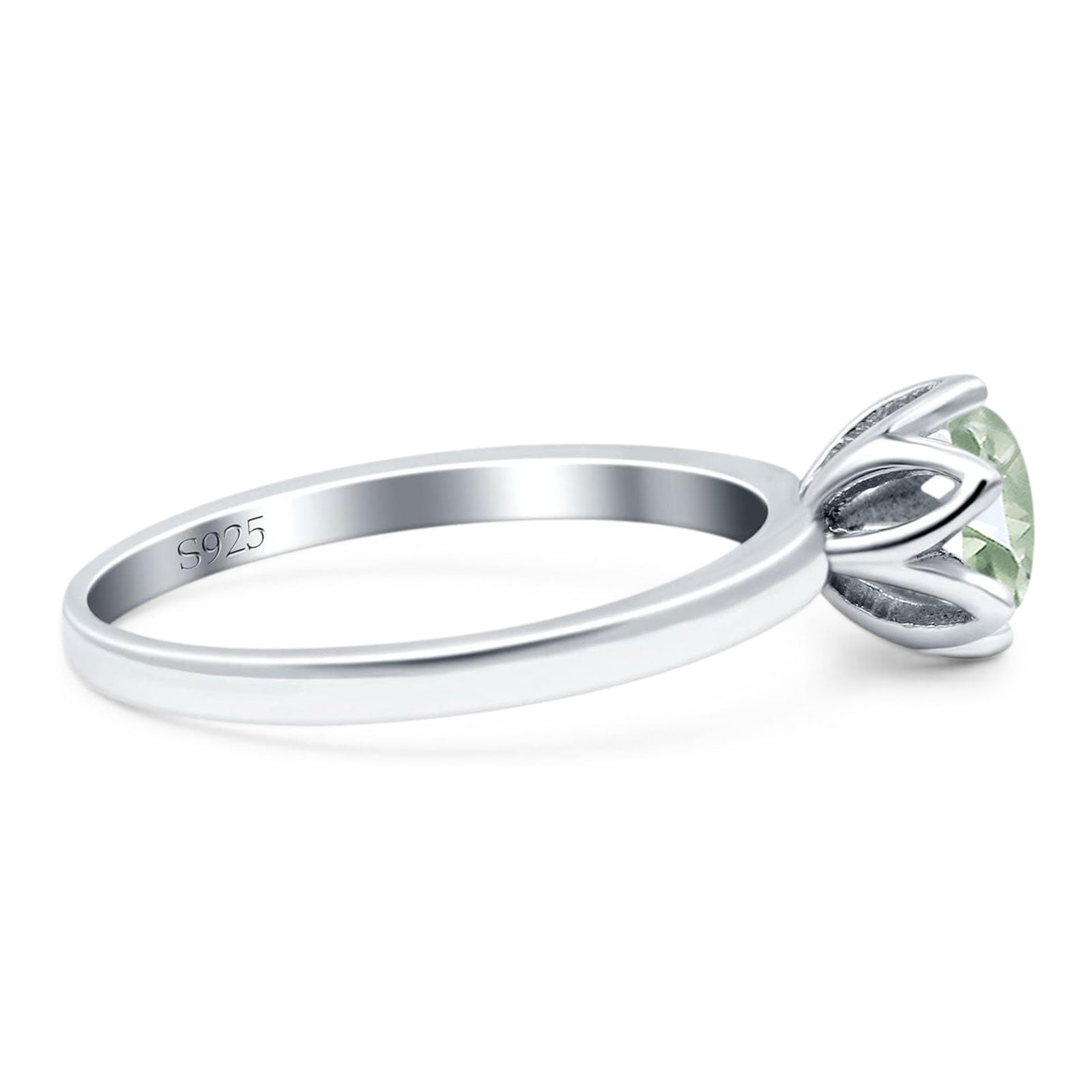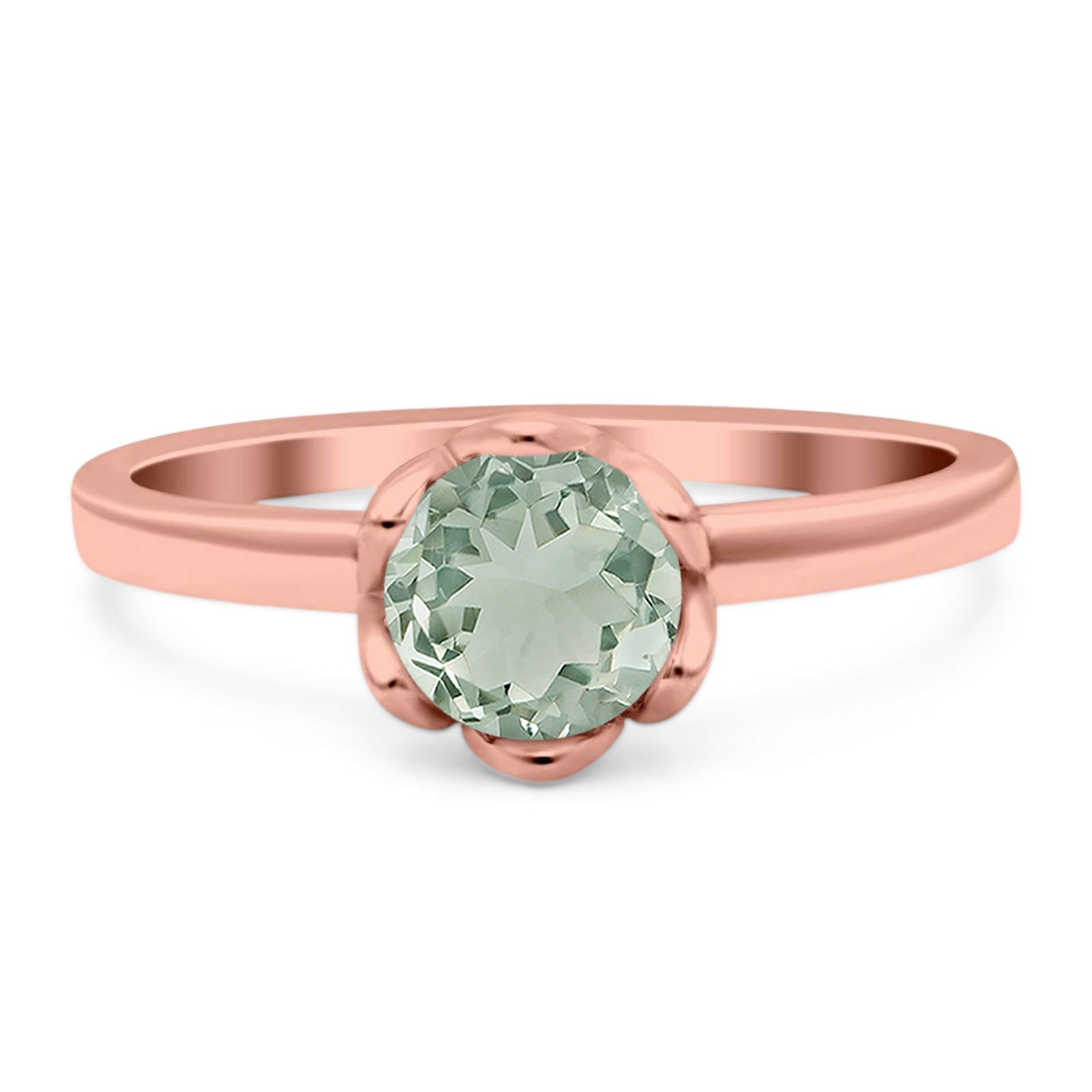 Round Natural Green Amethyst Prasiolite Solitaire Flower Ring 925 Sterling Silver