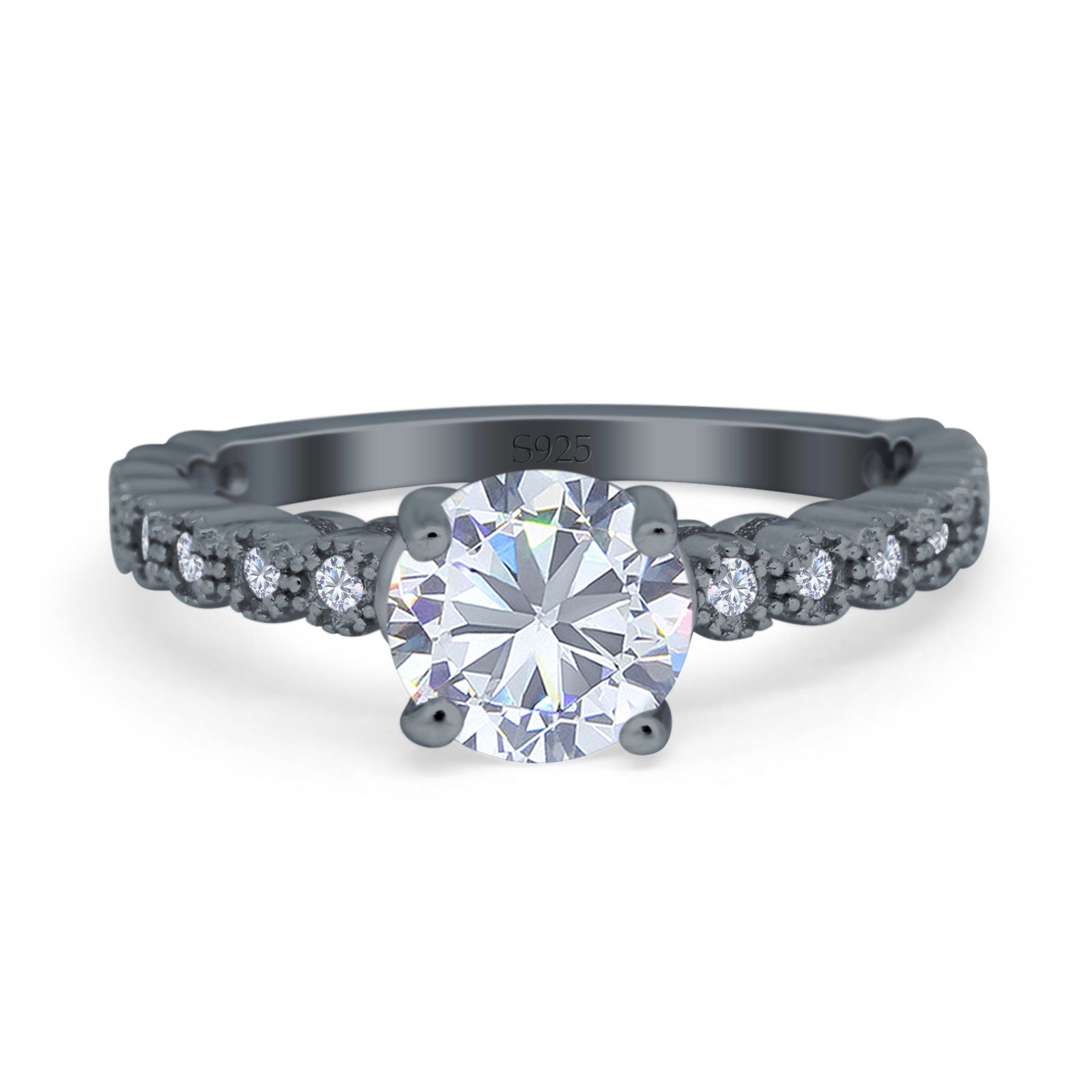 Round Moissanite Vintage Style Art Deco Ring 925 Sterling Silver
