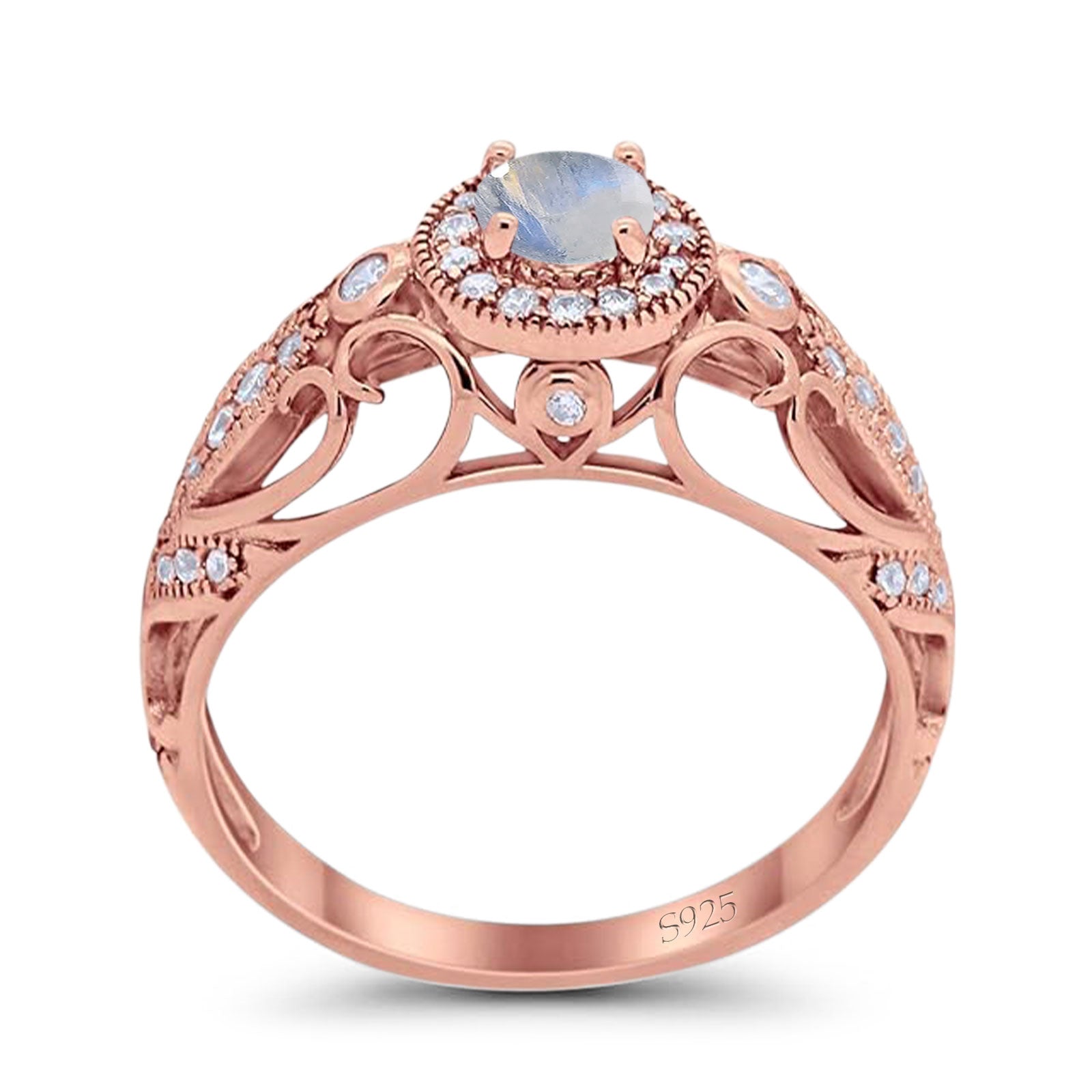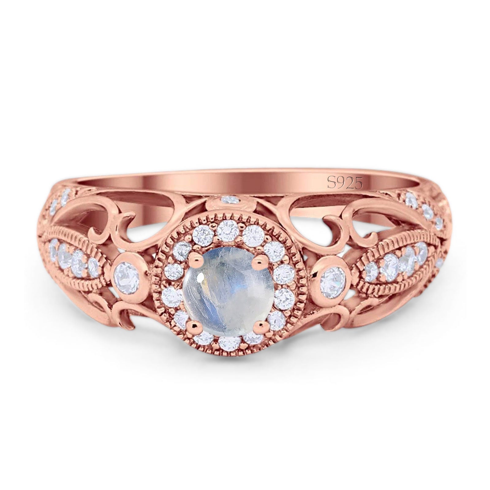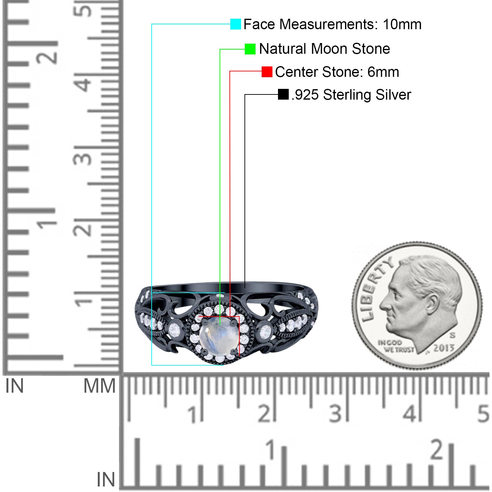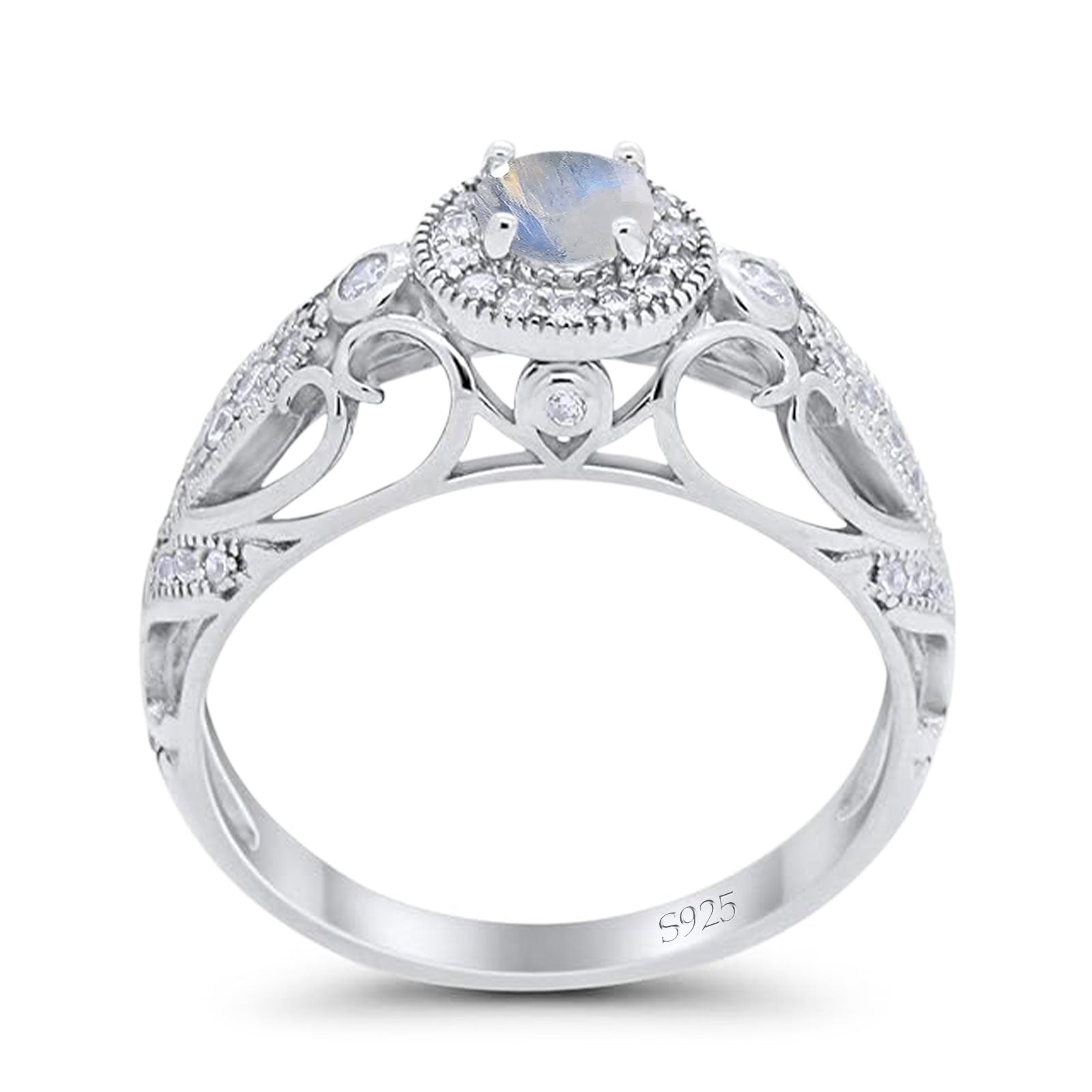 Round Natural Moonstone Filigree Halo Ring 925 Sterling Silver