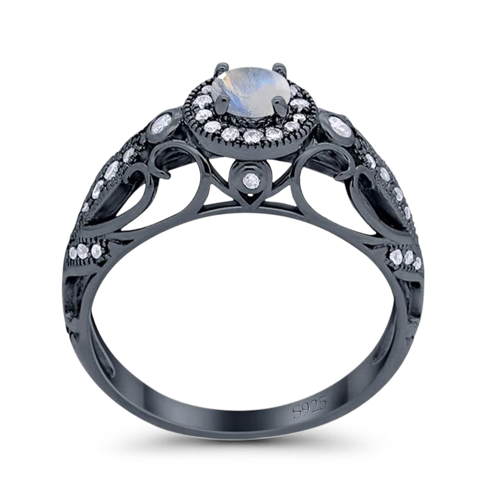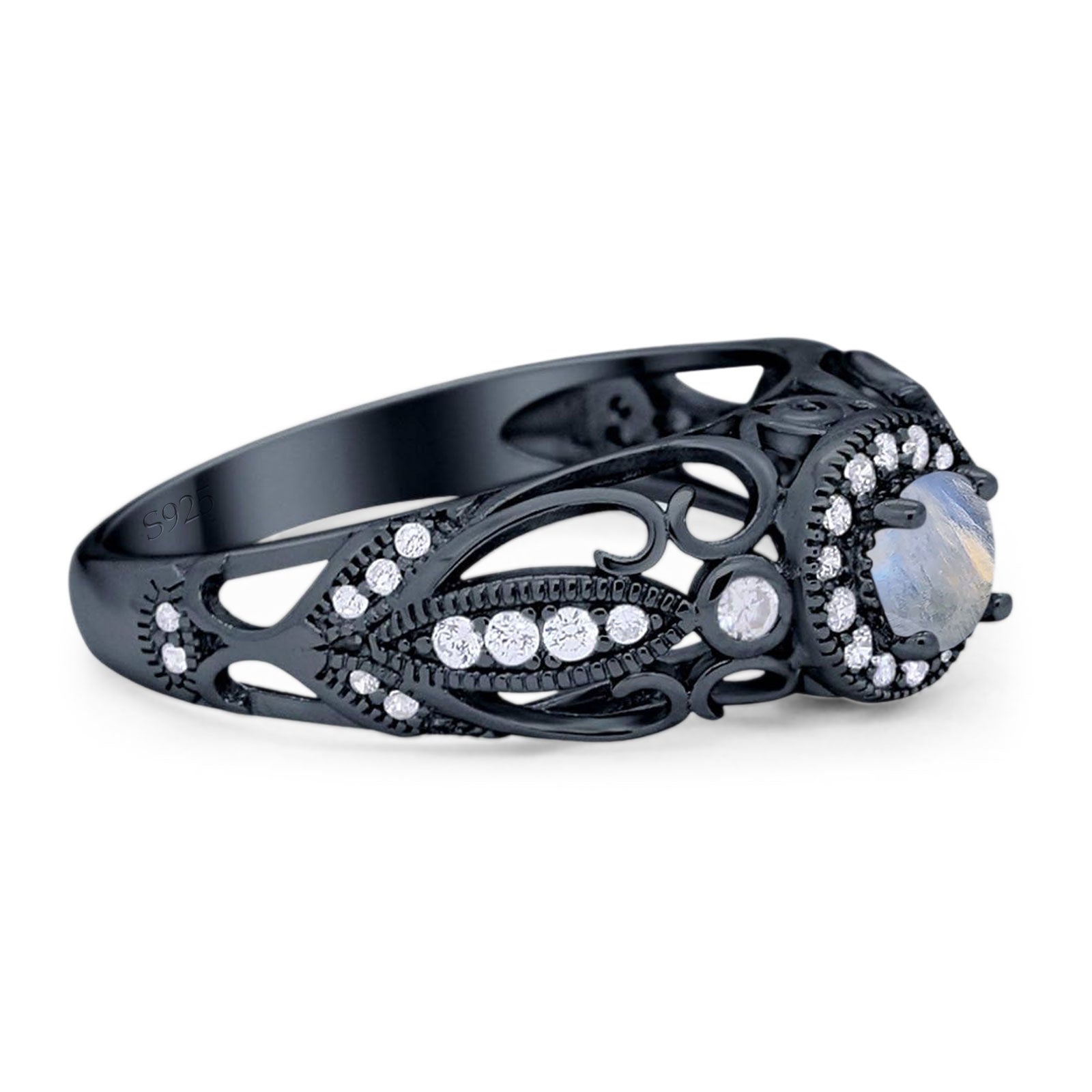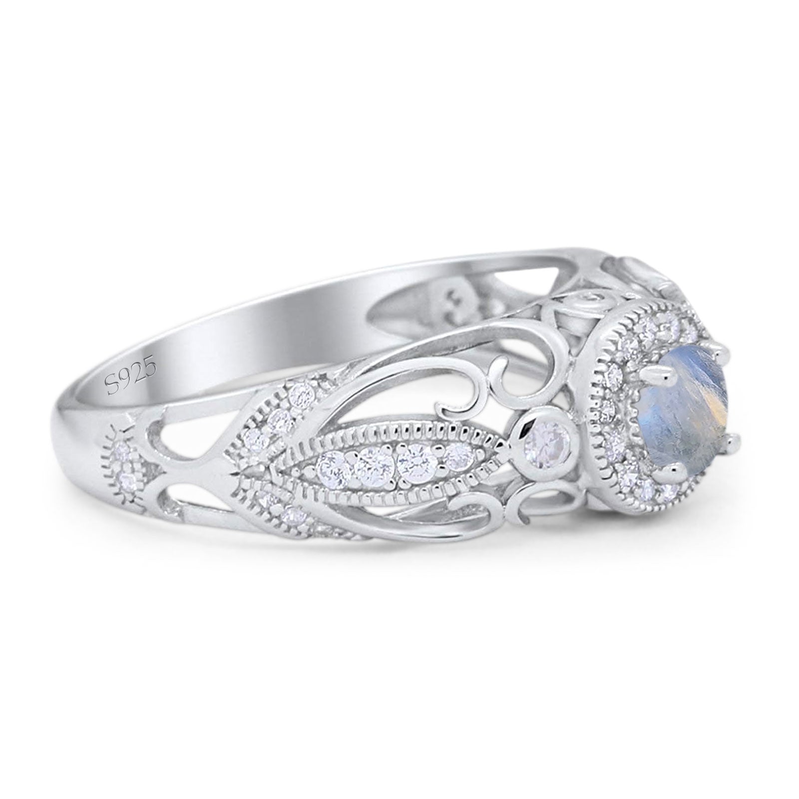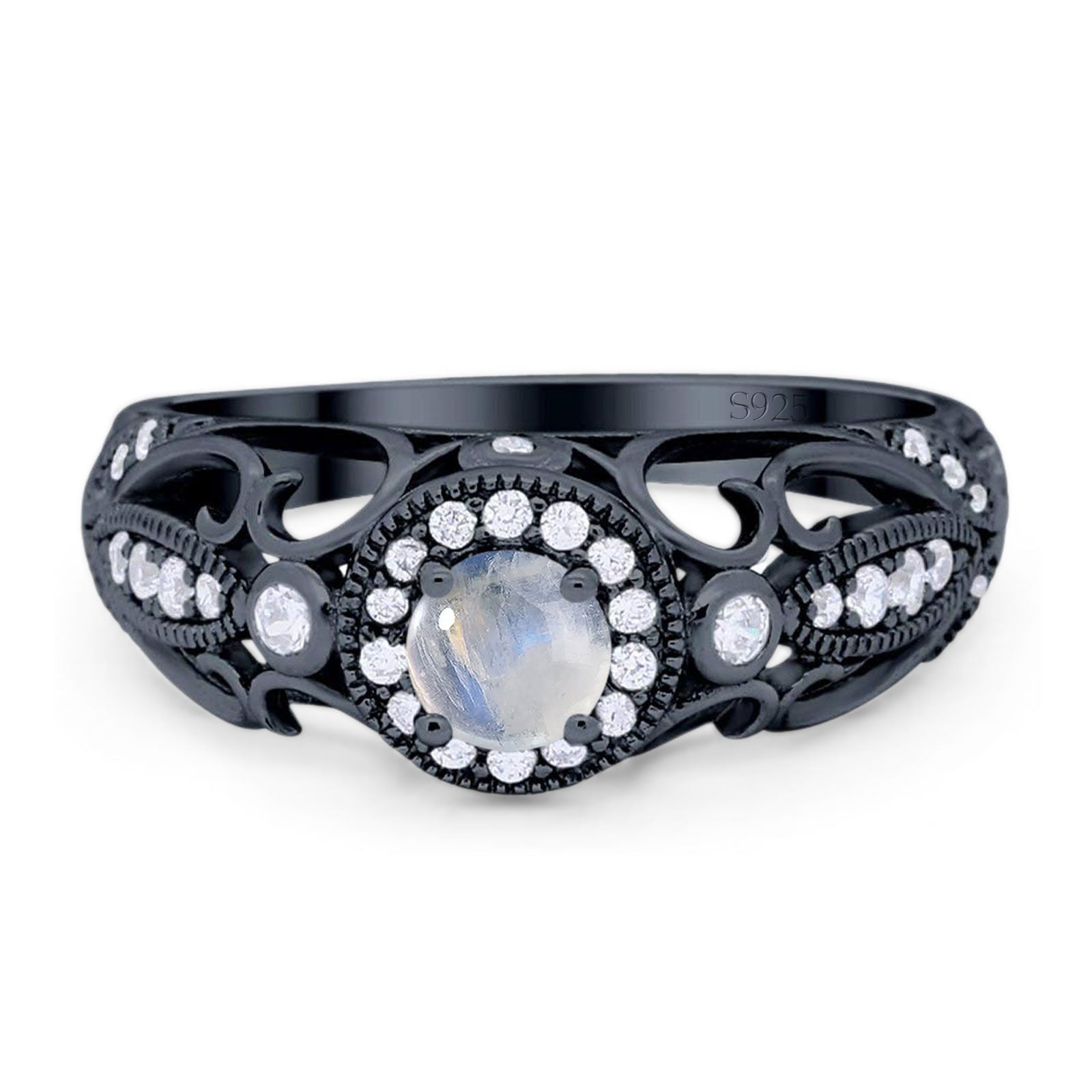 Round Natural Moonstone Filigree Halo Ring 925 Sterling Silver