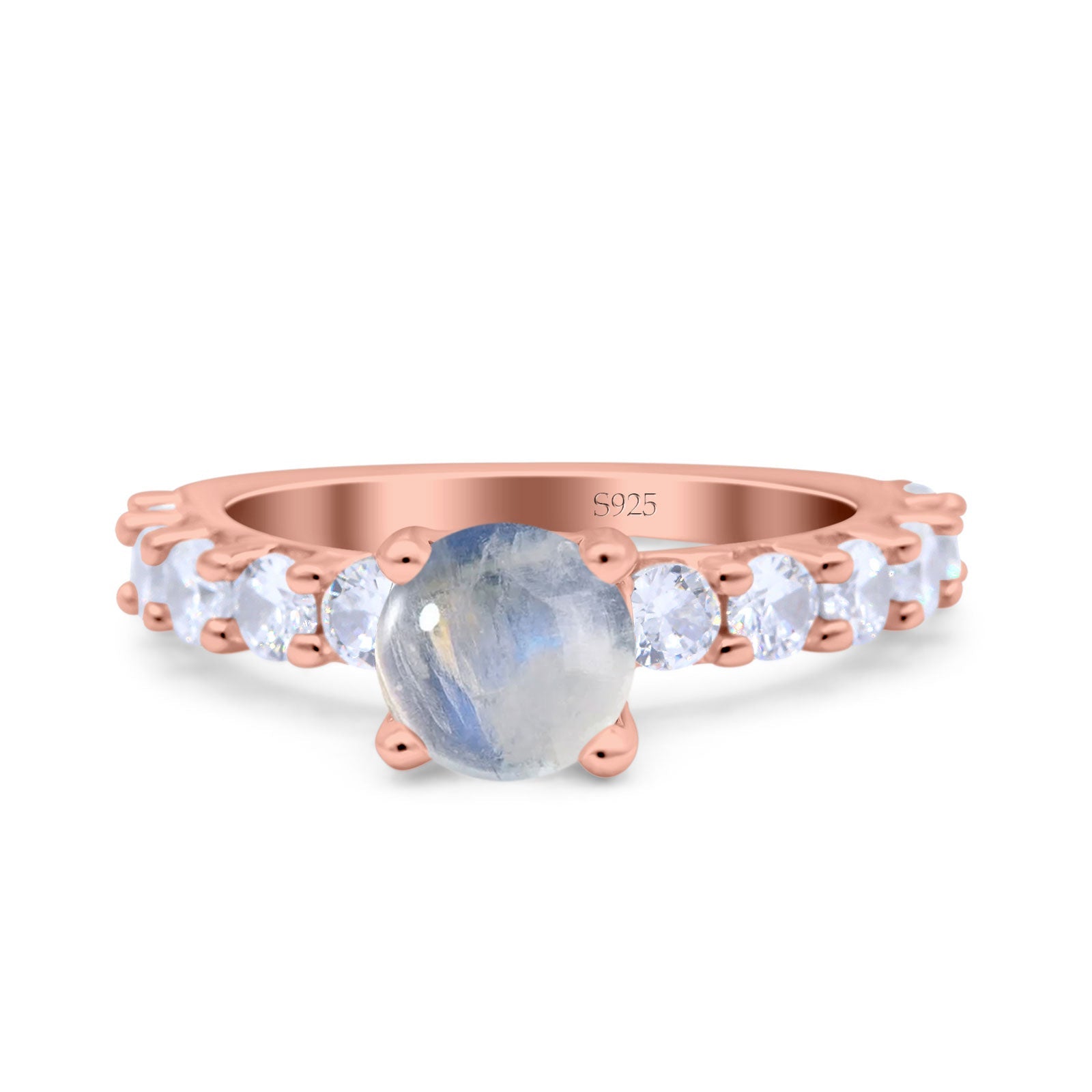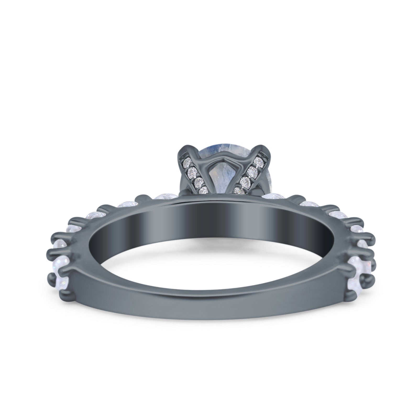 Round Natural Moonstone Hidden Halo Cathedral Ring 925 Sterling Silver