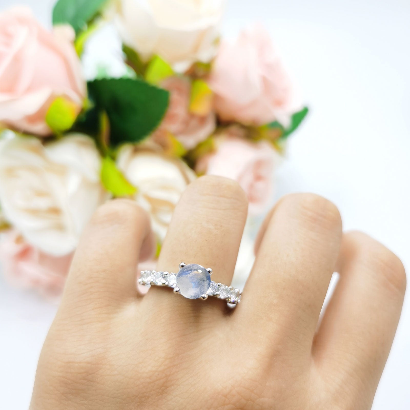 Natural Moonstone Engagement Ring