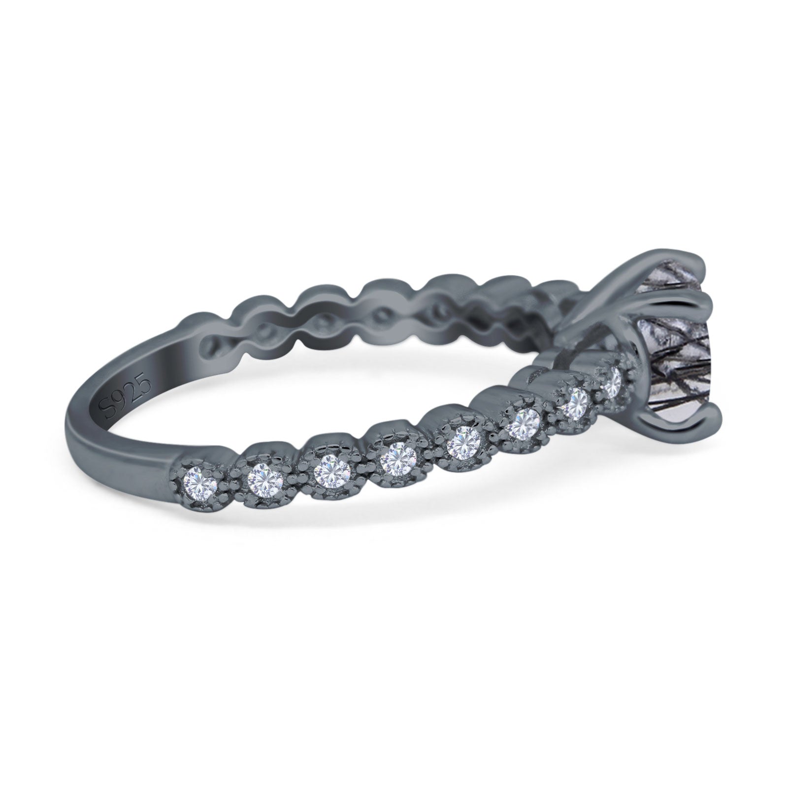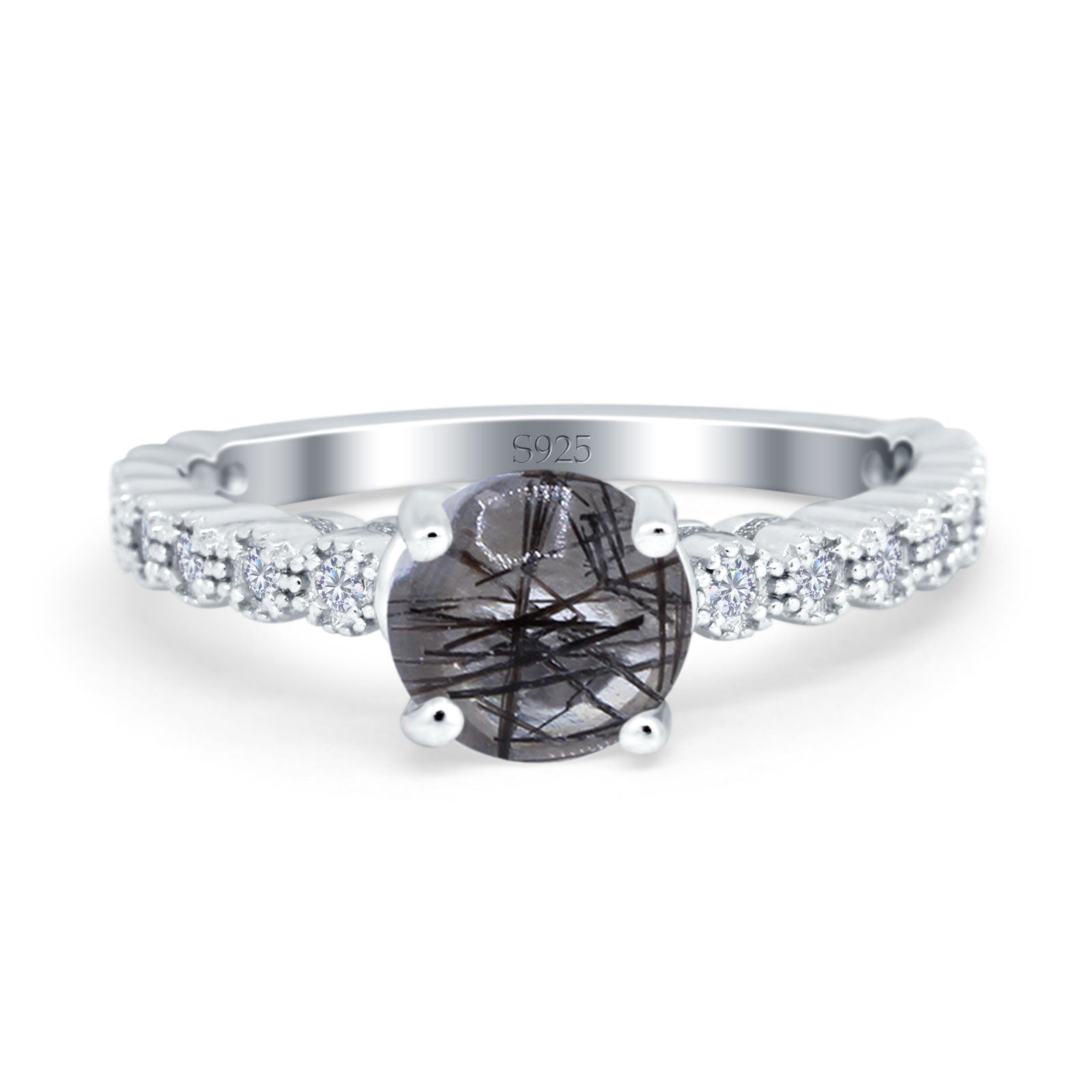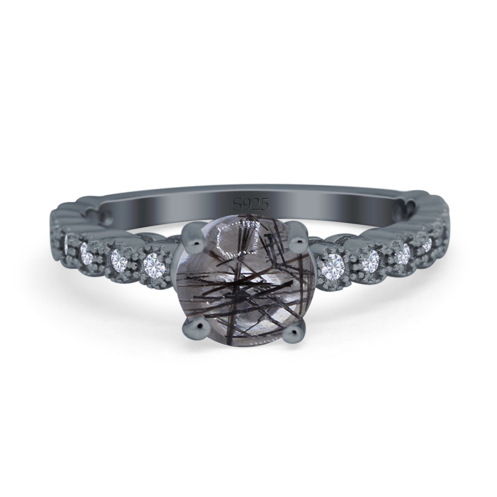 Round Natural Rutilated Quartz Vintage Style Art Deco Ring 925 Sterling Silver