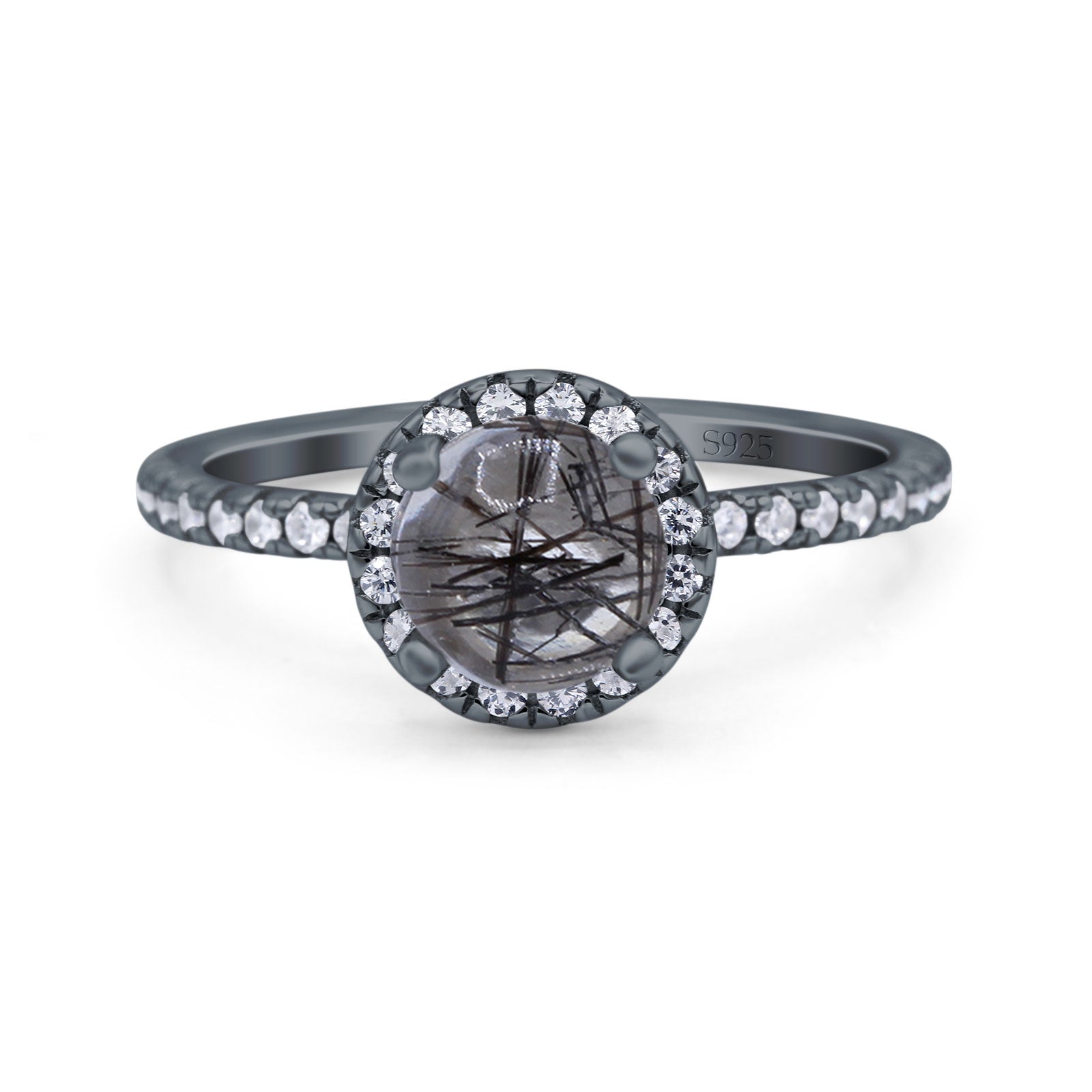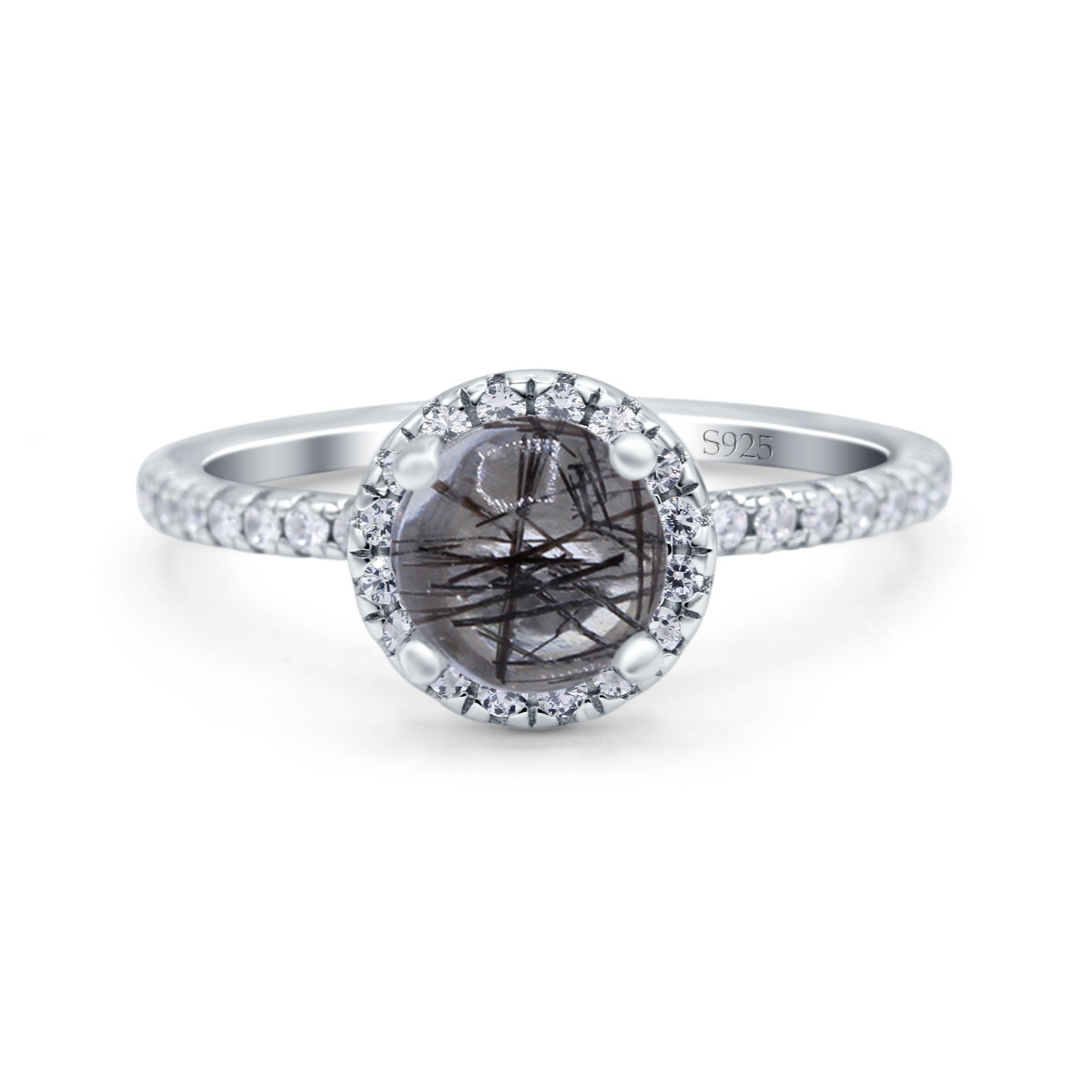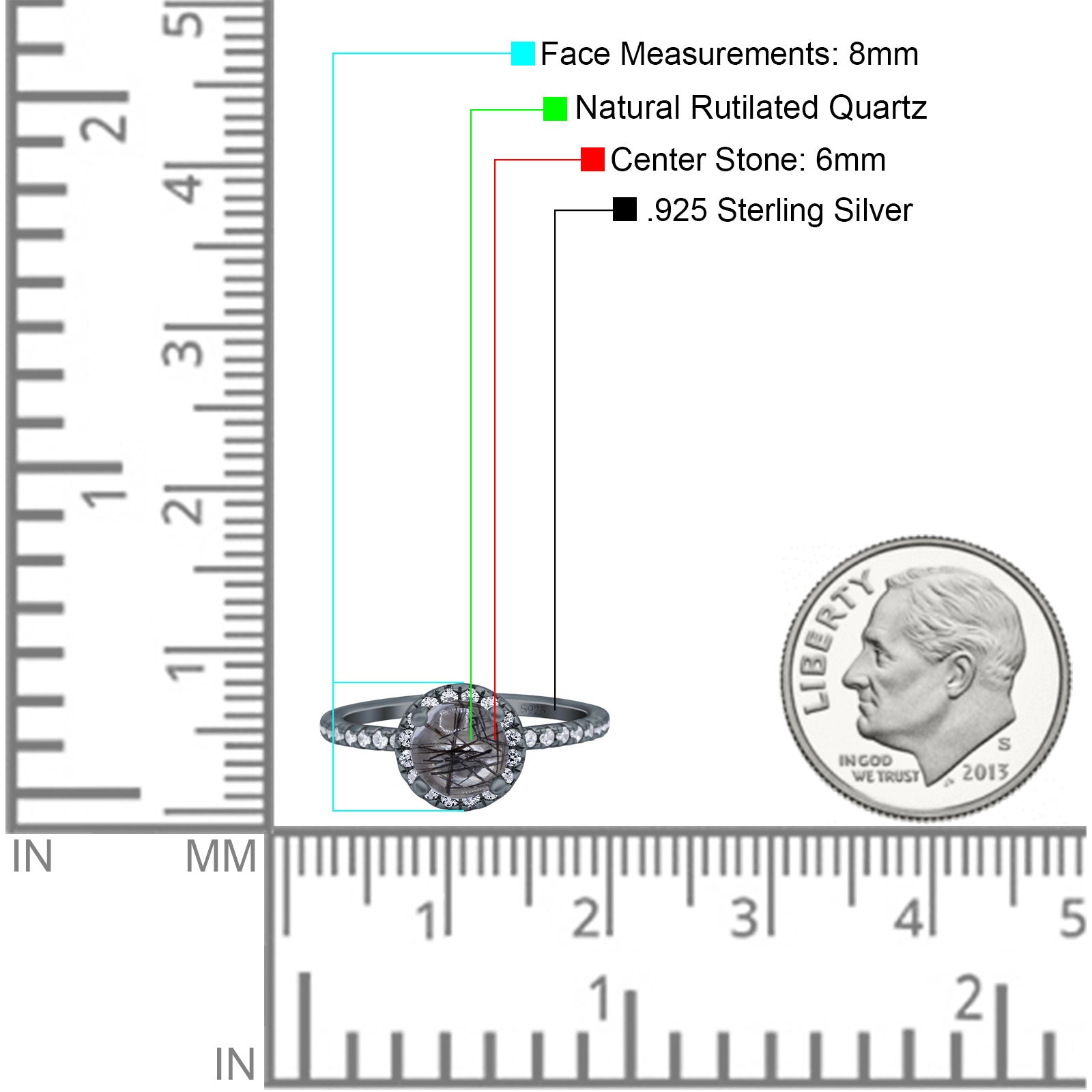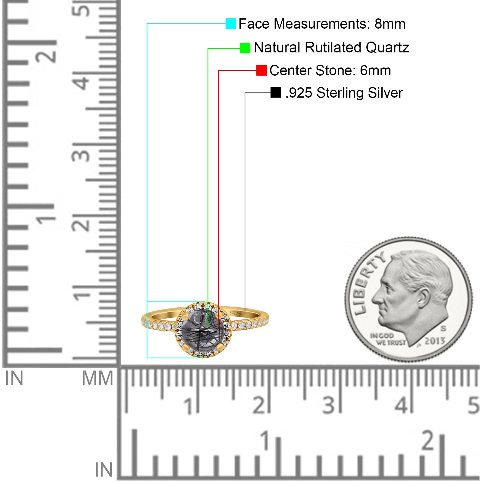 Round Natural Rutilated Quartz Vintage Style Ring 925 Sterling Silver