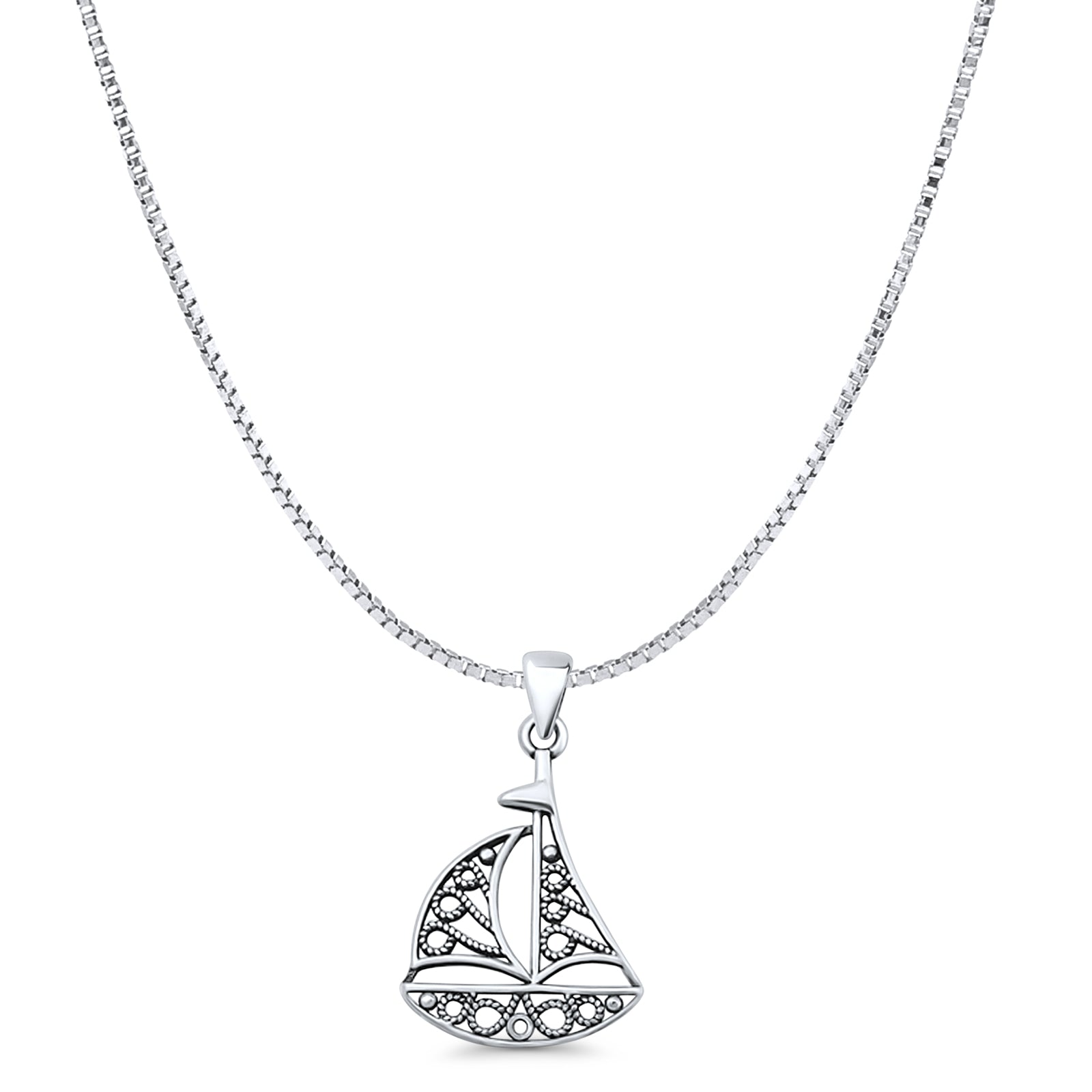 Sailboat Pendant Box Chain Necklace Oxidized 925 Sterling Silver