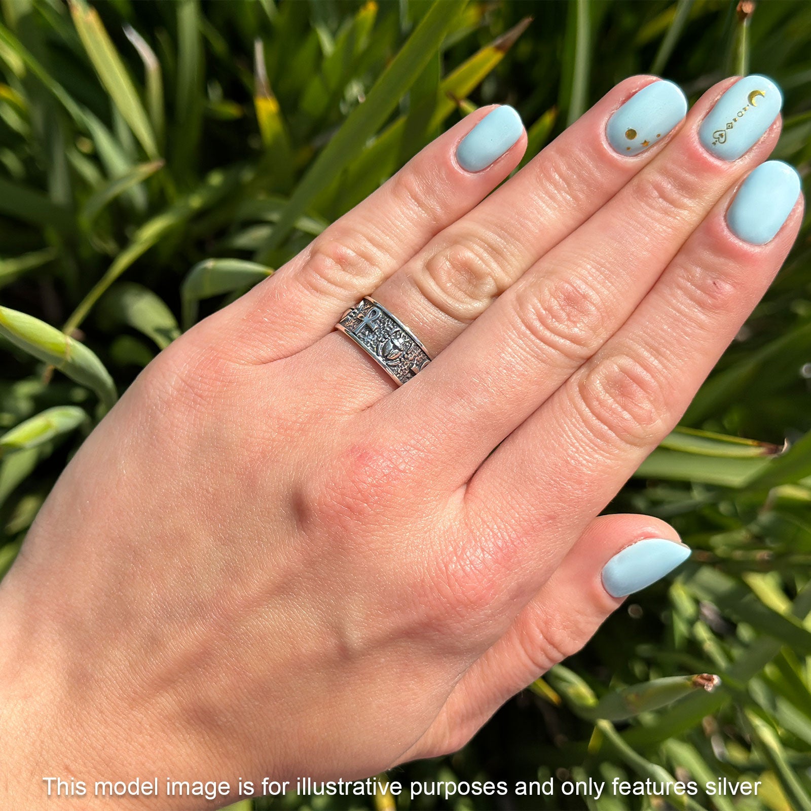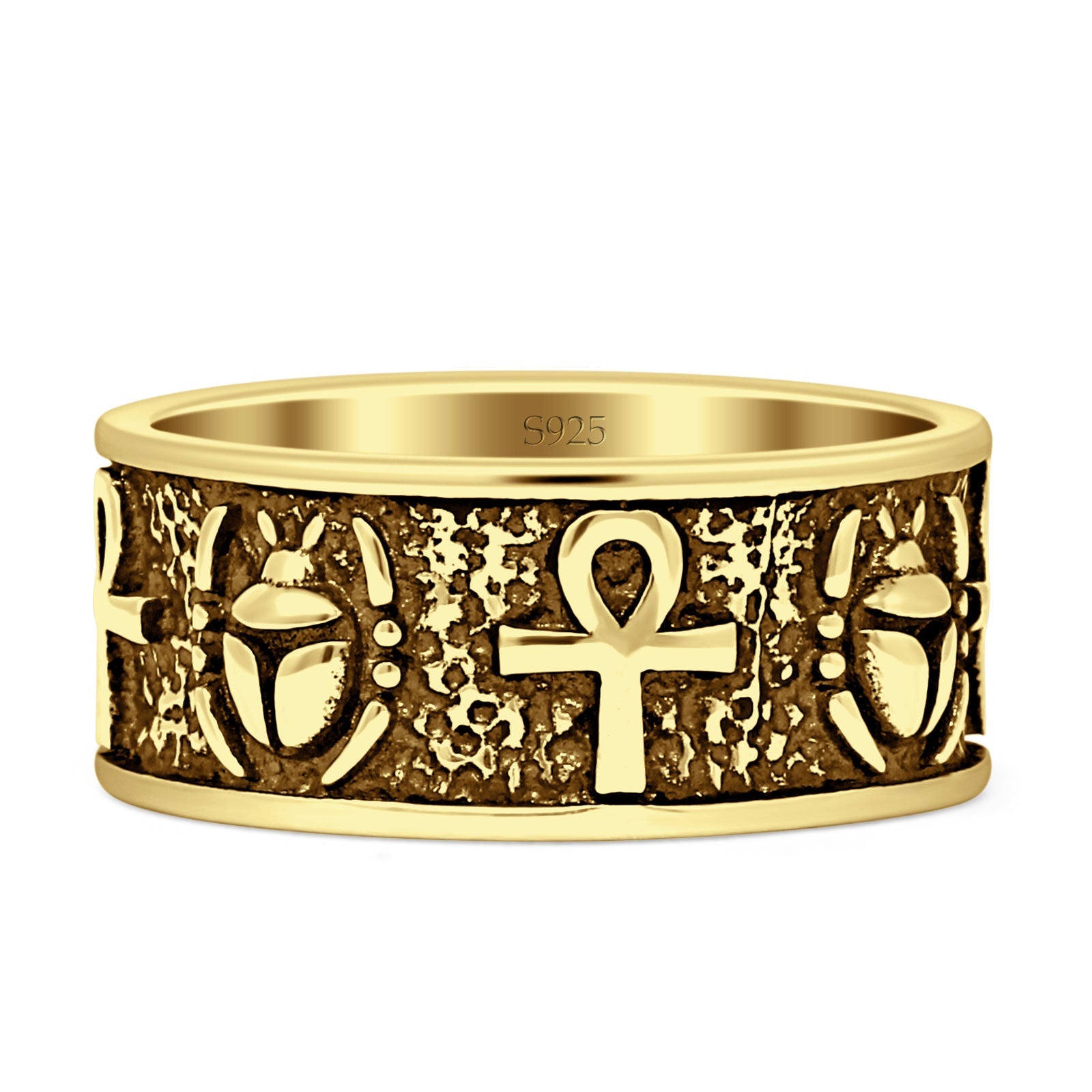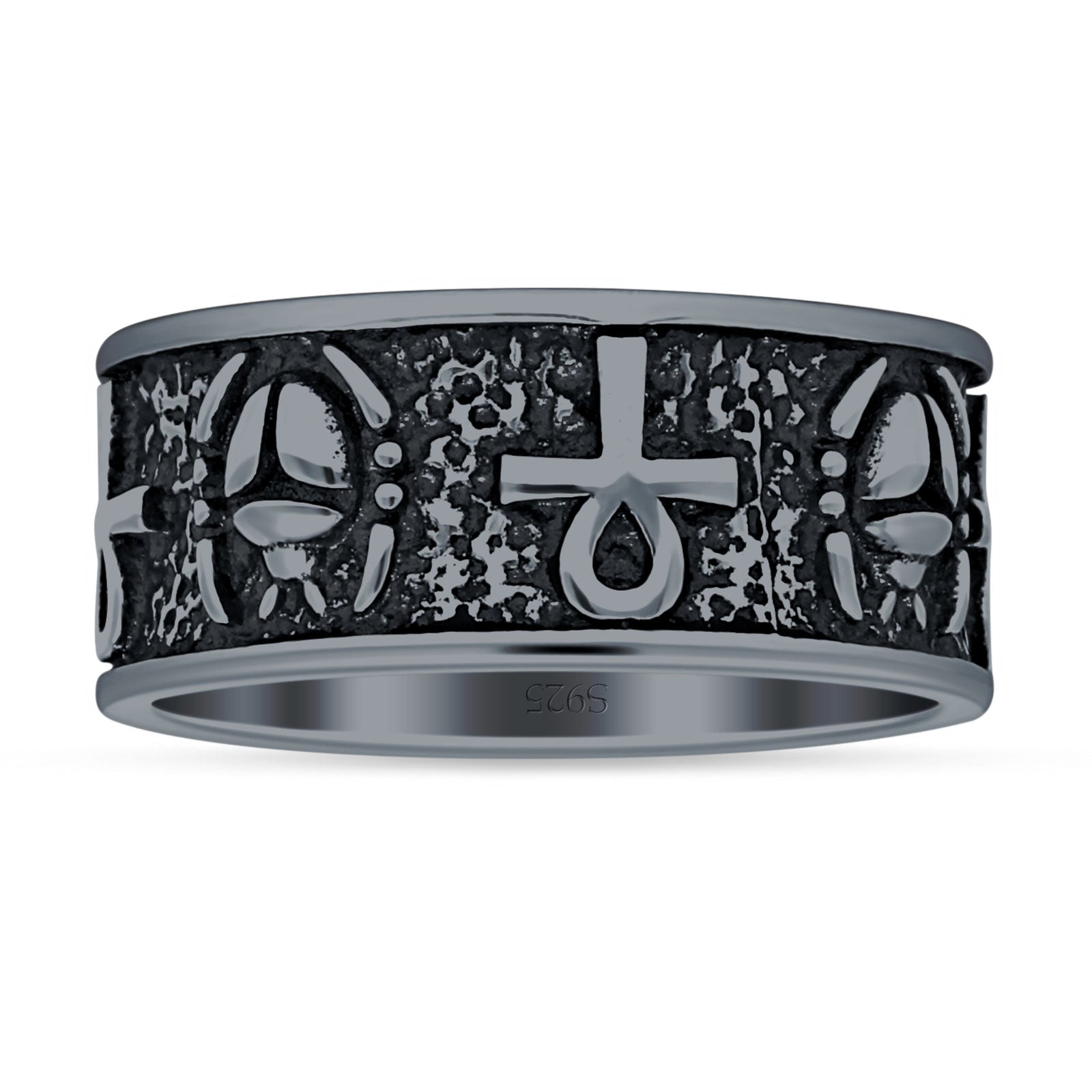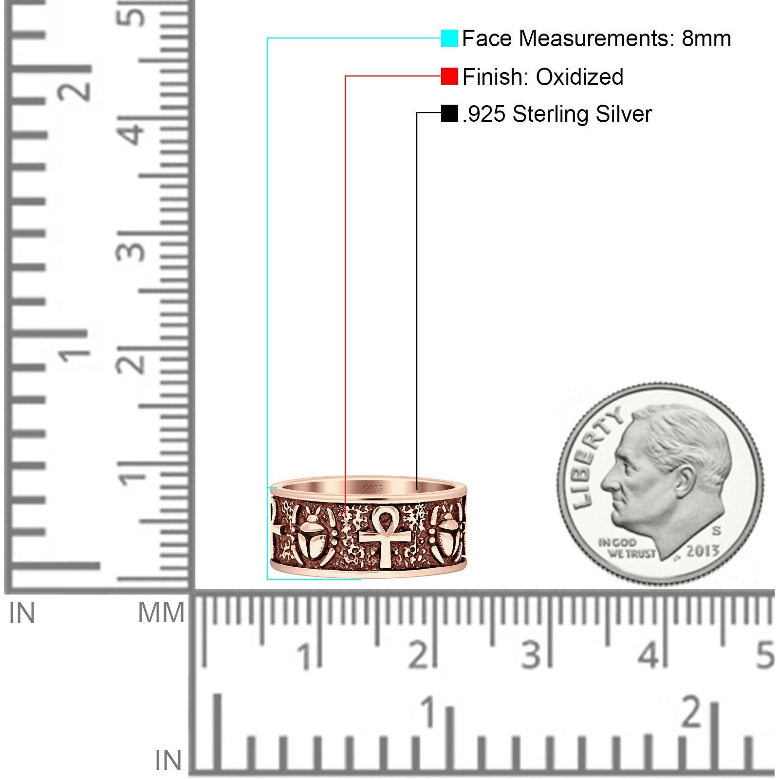 Scarab Ankh Ring 8mm Oxidized Band 925 Sterling Silver