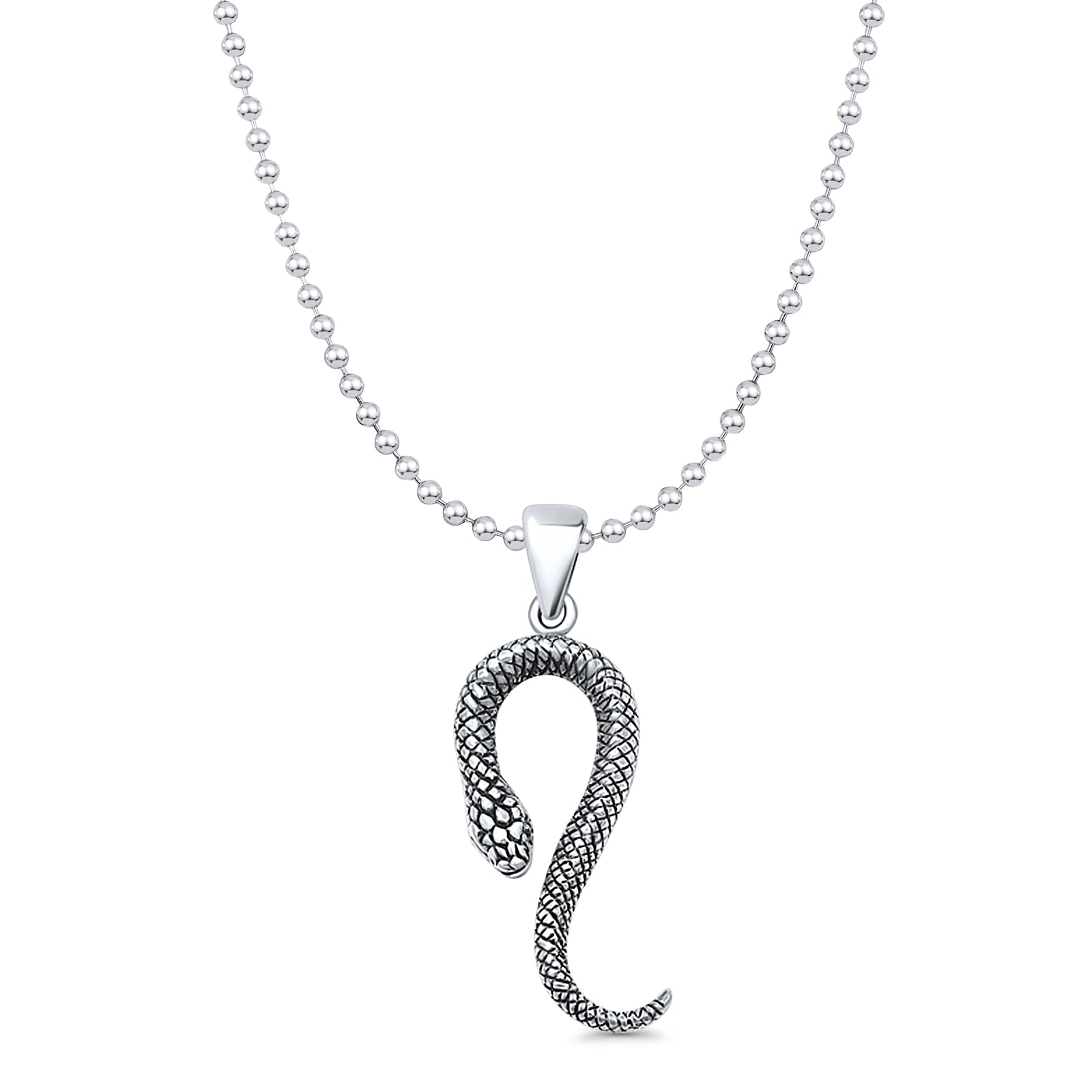 Snake Pendant Bead Chain Necklace Oxidized 925 Sterling Silver
