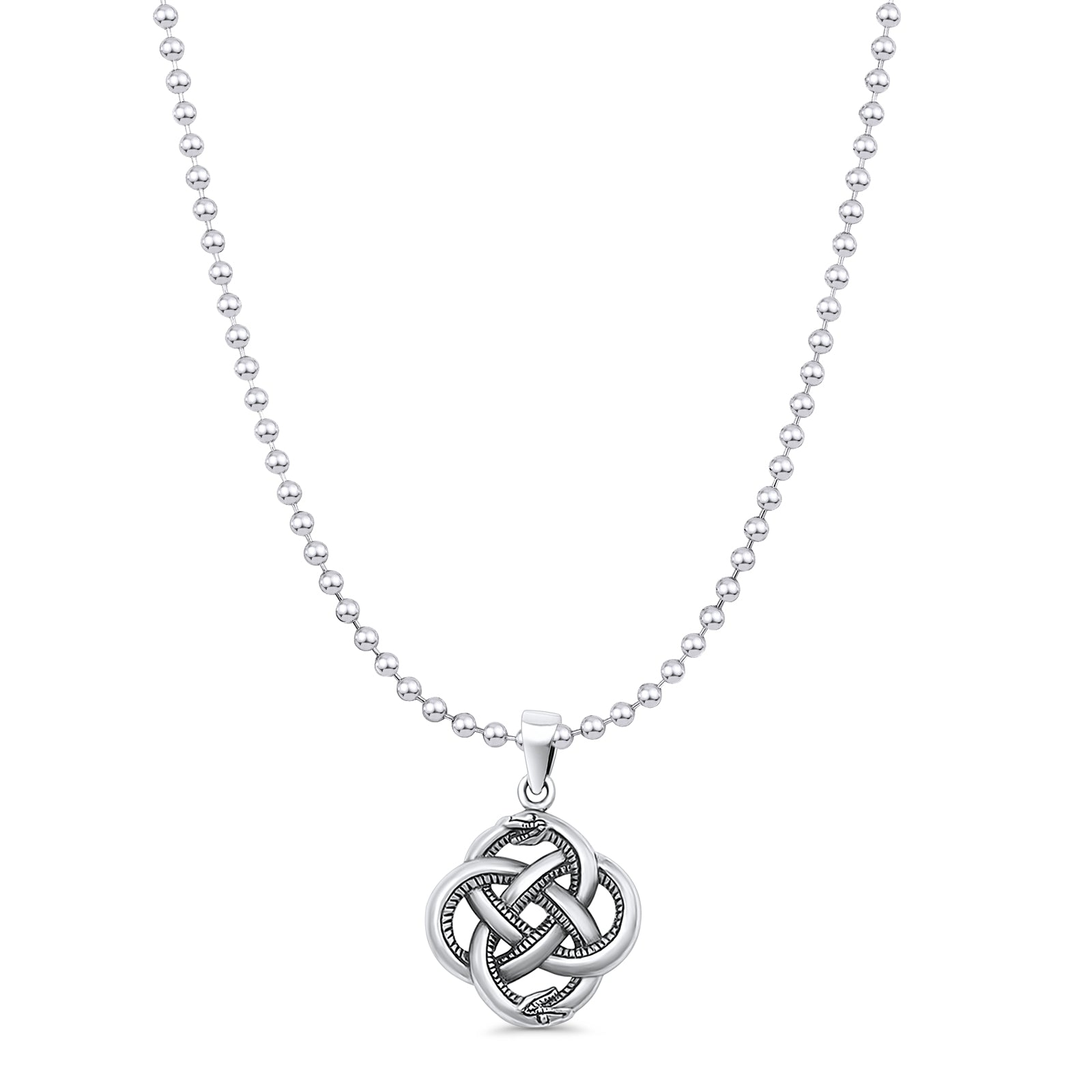 Celtic Snake Pendant Bead Chain Necklace Twisted Oxidized 925 Sterling Silver