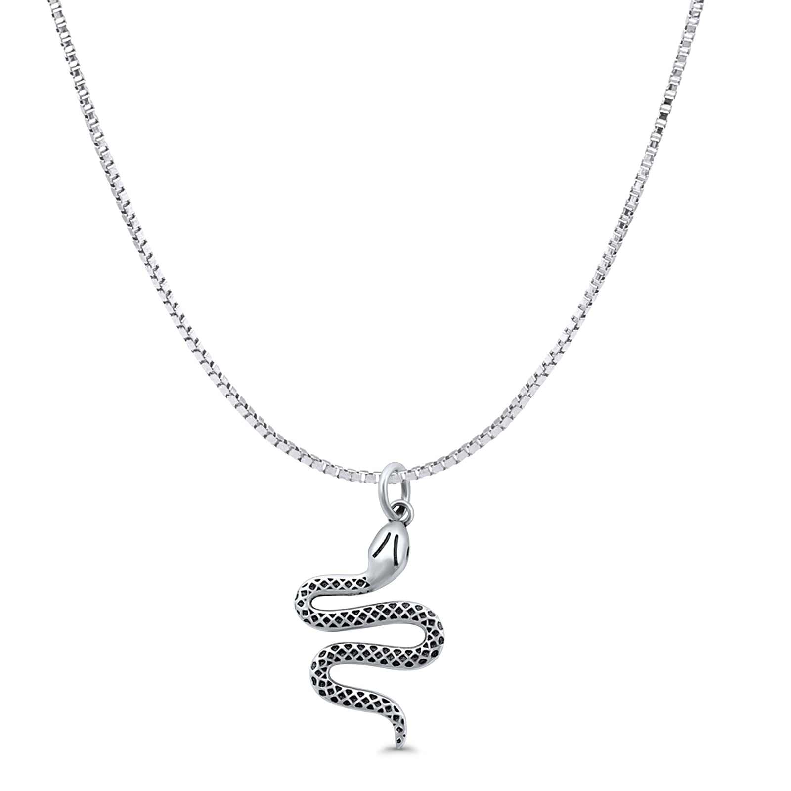 Snake Pendant Oxidized Box Chain Necklace 925 Sterling Silver