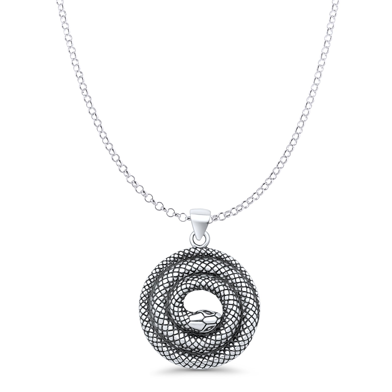Snake Pendant Oxidized Rolo Chain Necklace 925 Sterling Silver