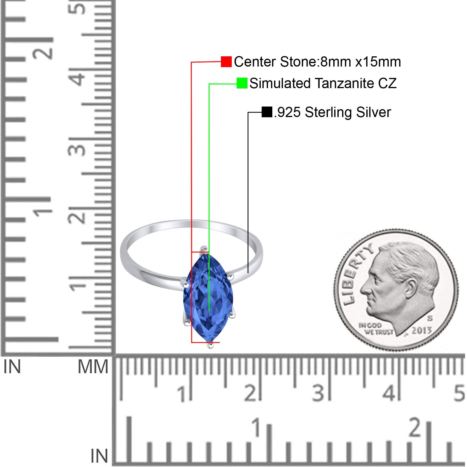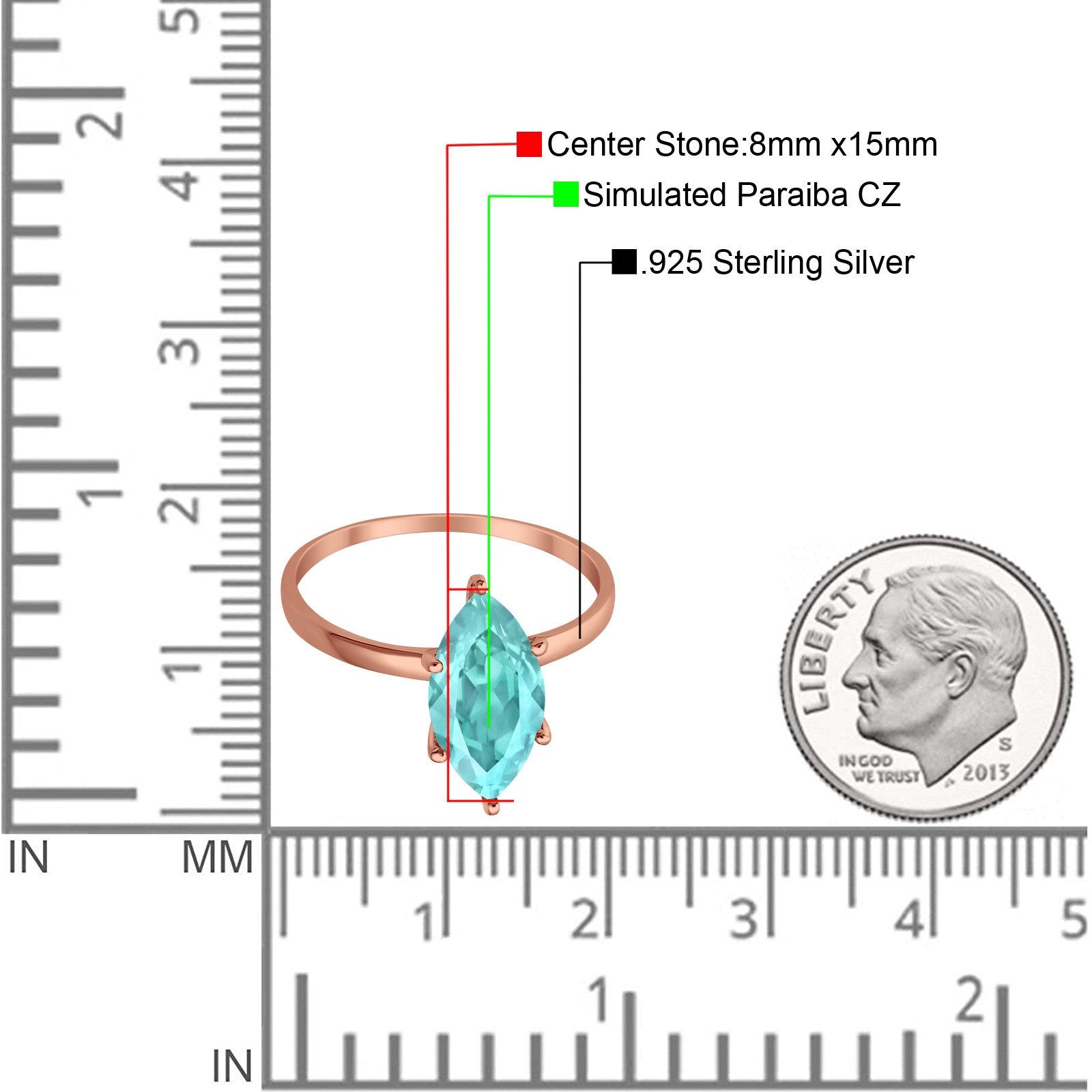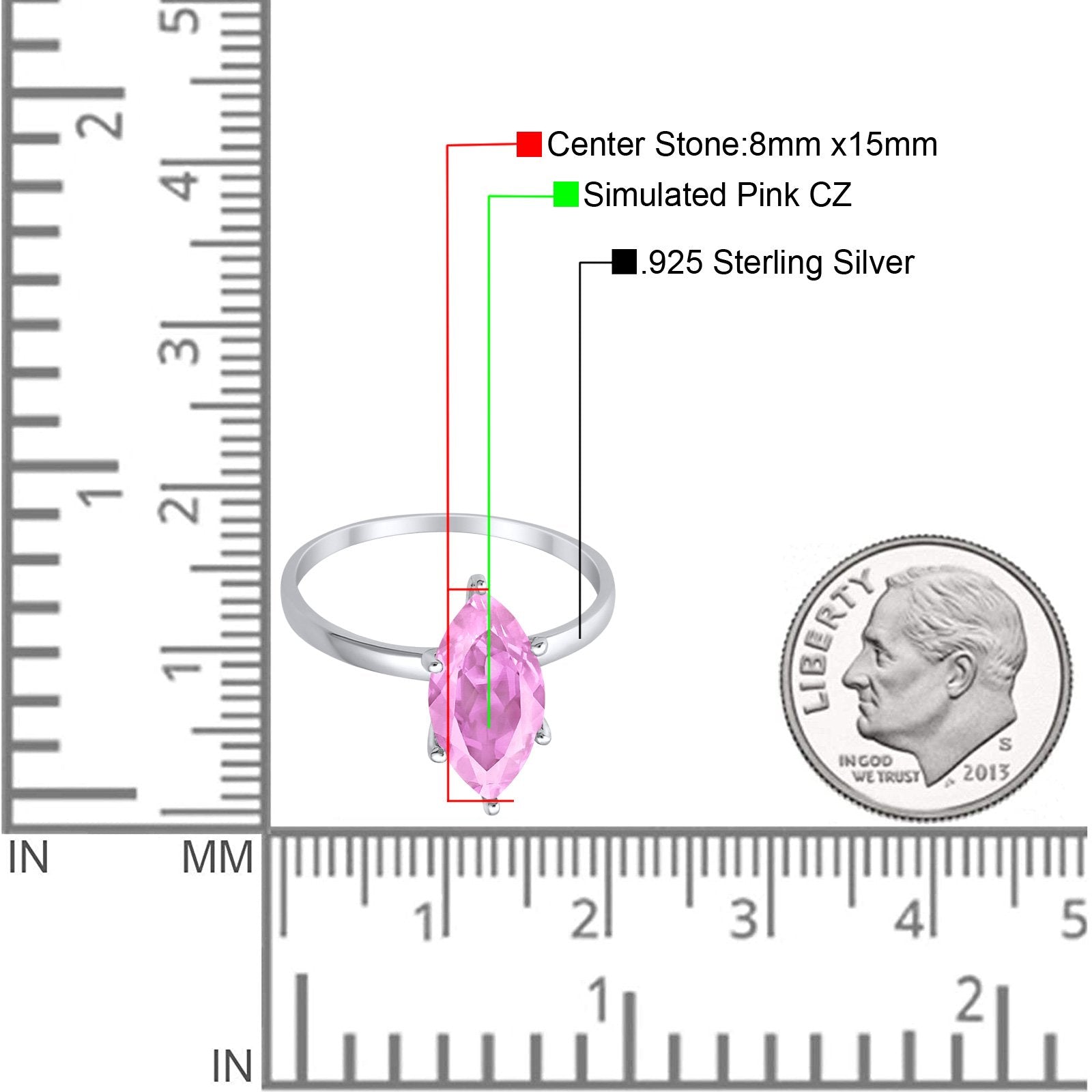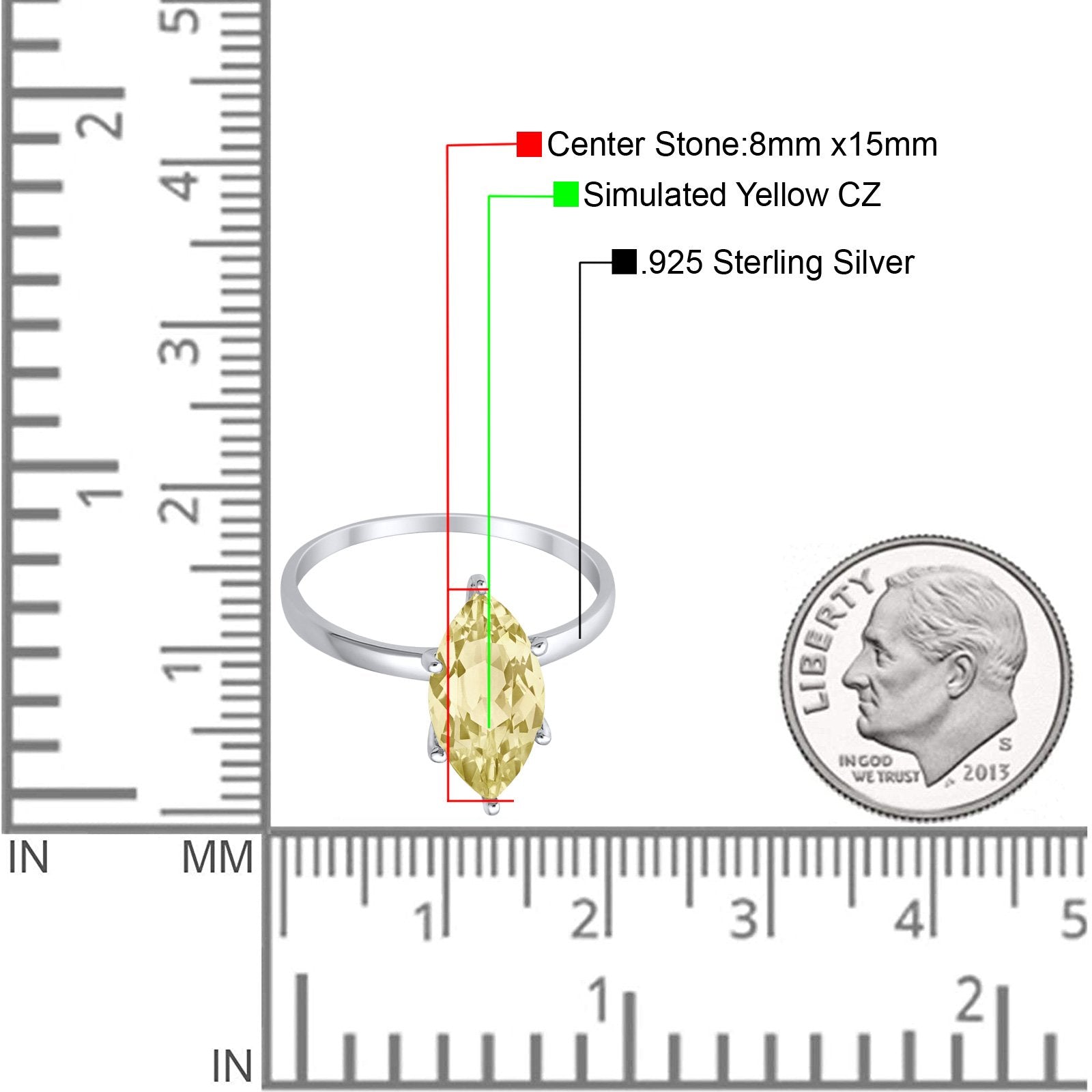 Solitaire Wedding Ring Marquise Simulated Cubic Zirconia 925 Sterling Silver