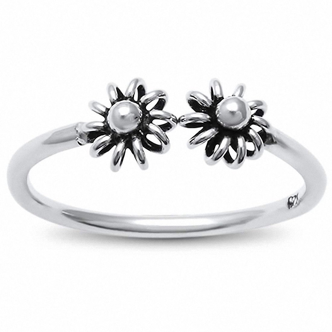 2 Flowers Band Ring 925 Sterling Silver Simple Plain Choose Color
