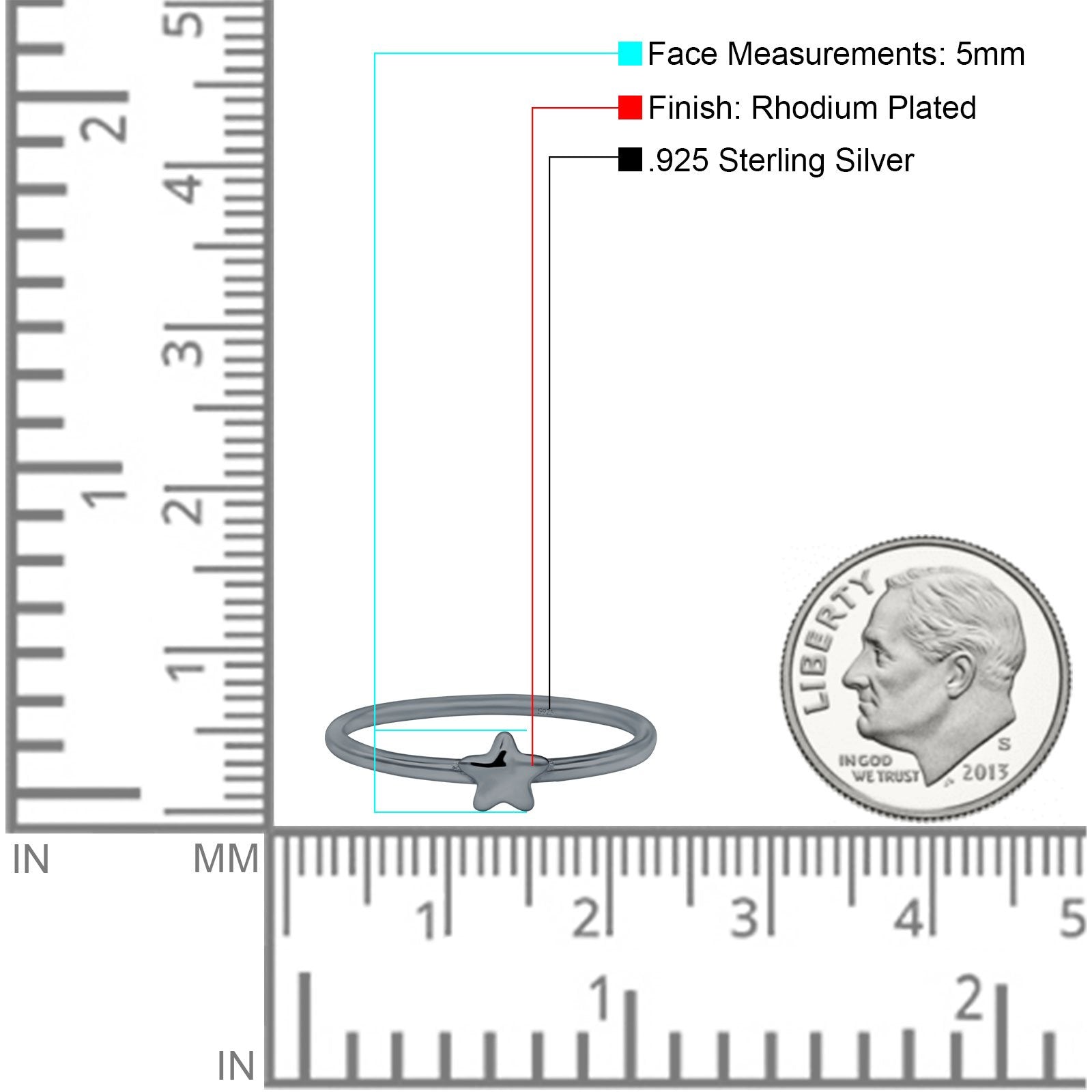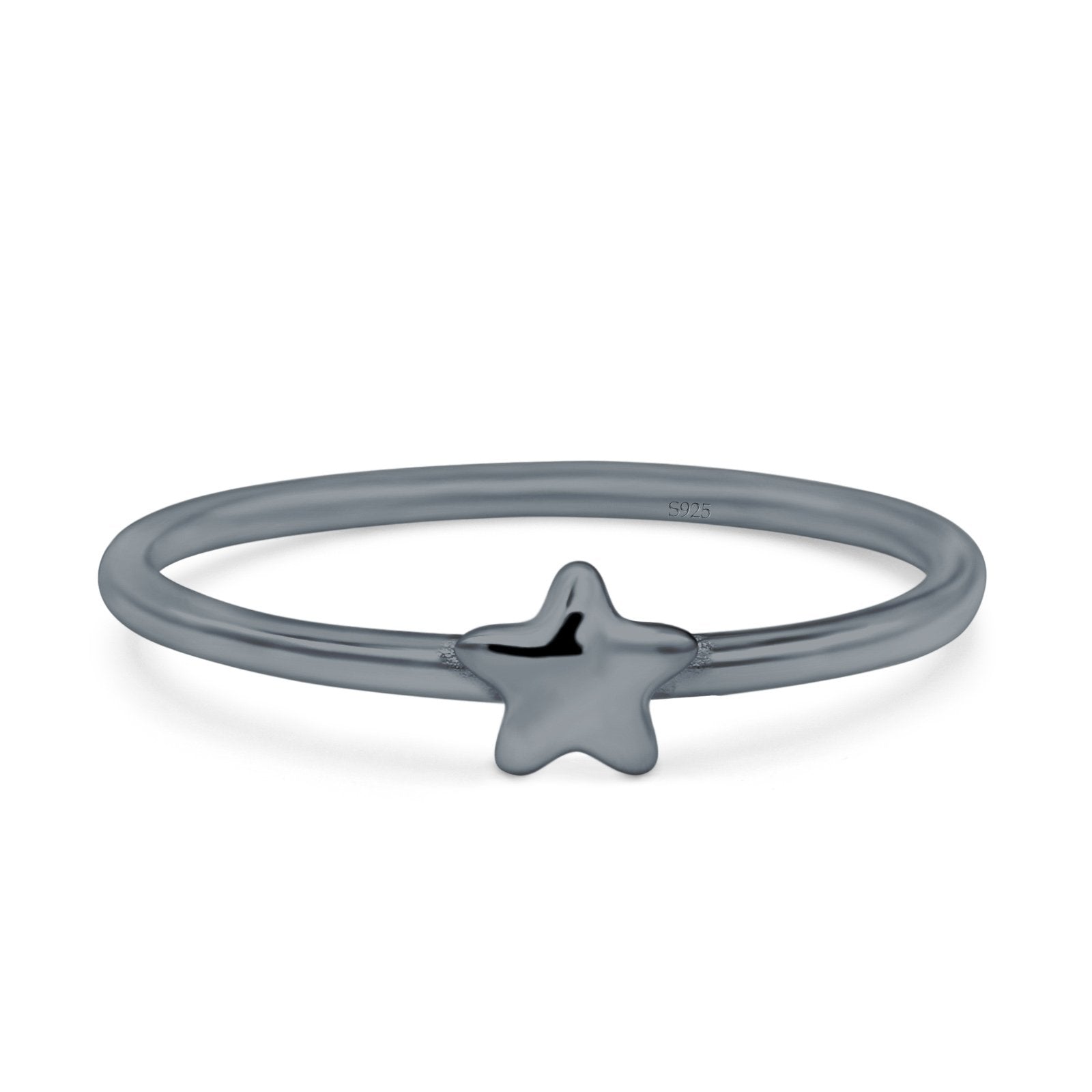 Star Ring Oxidized Band Solid 925 Sterling Silver Thumb Ring (5mm)