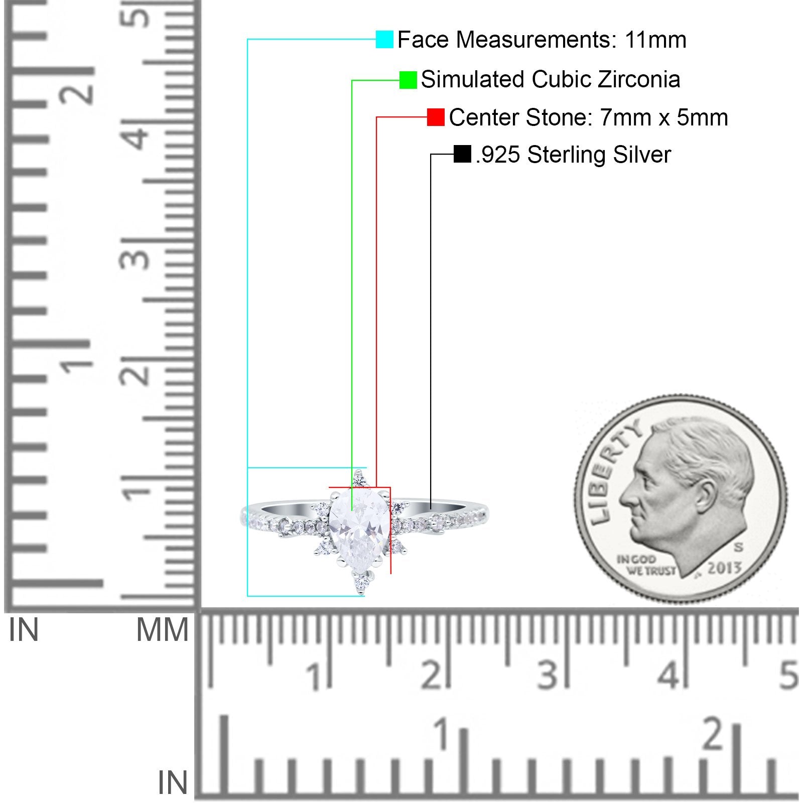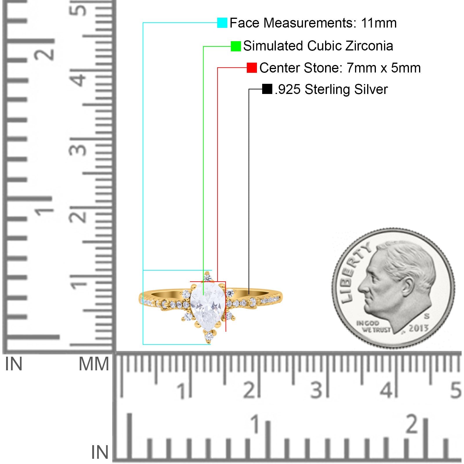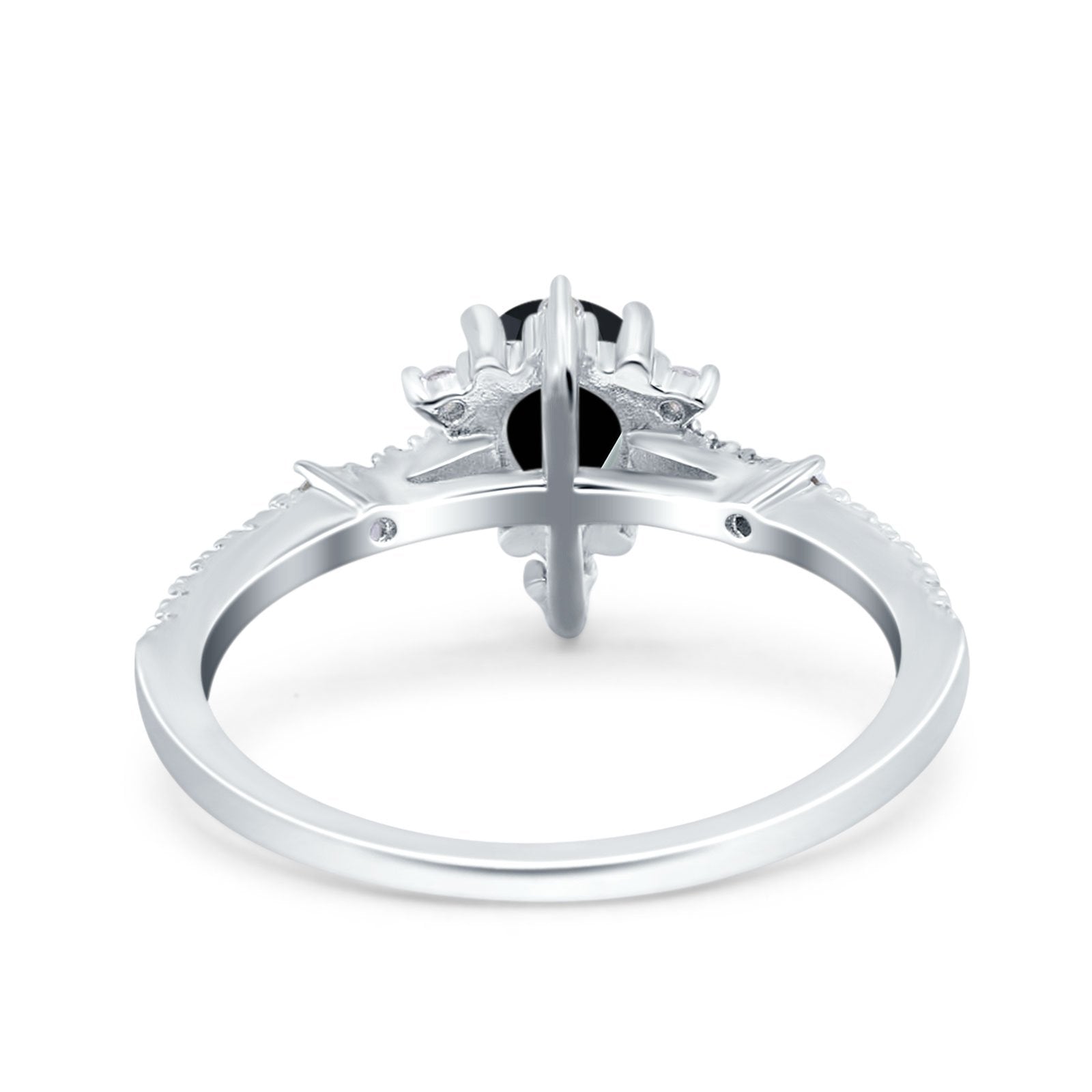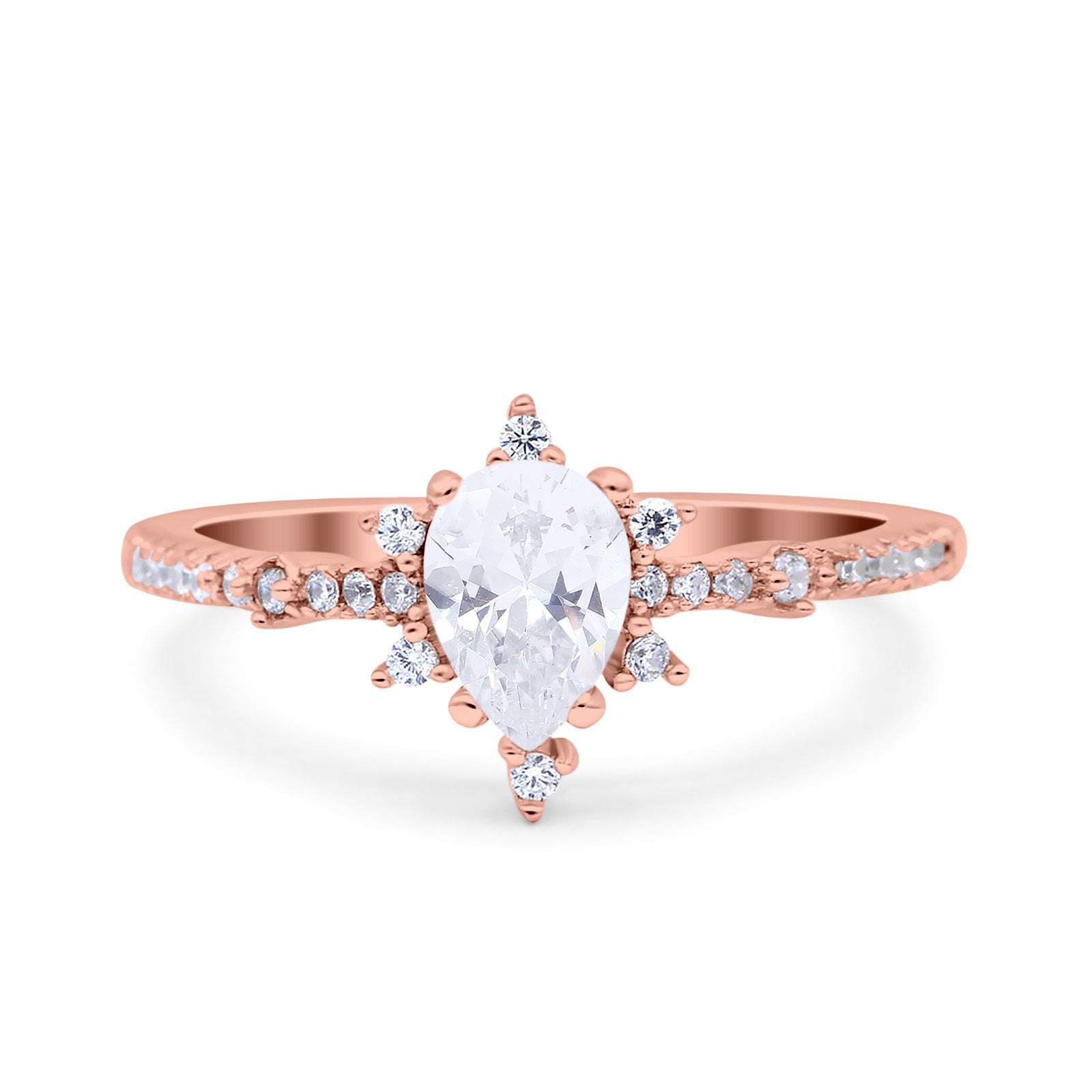 Starburst Teardrop Dainty Art Deco Pear Wedding Bridal Ring Round Simulated Cubic Zirconia 925 Sterling Silver