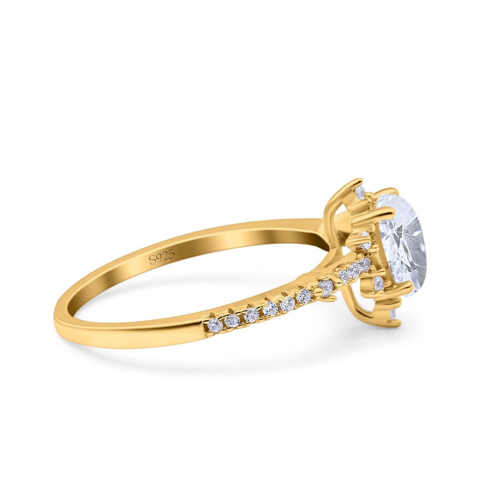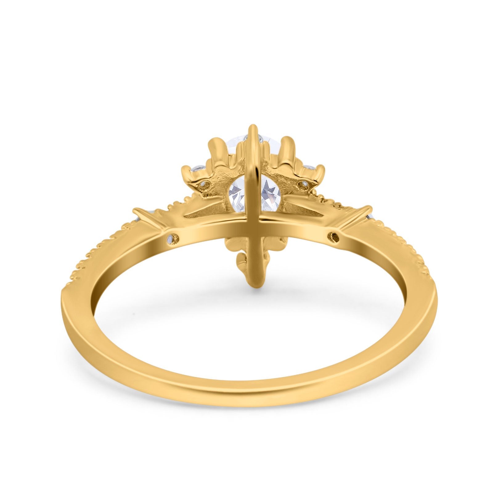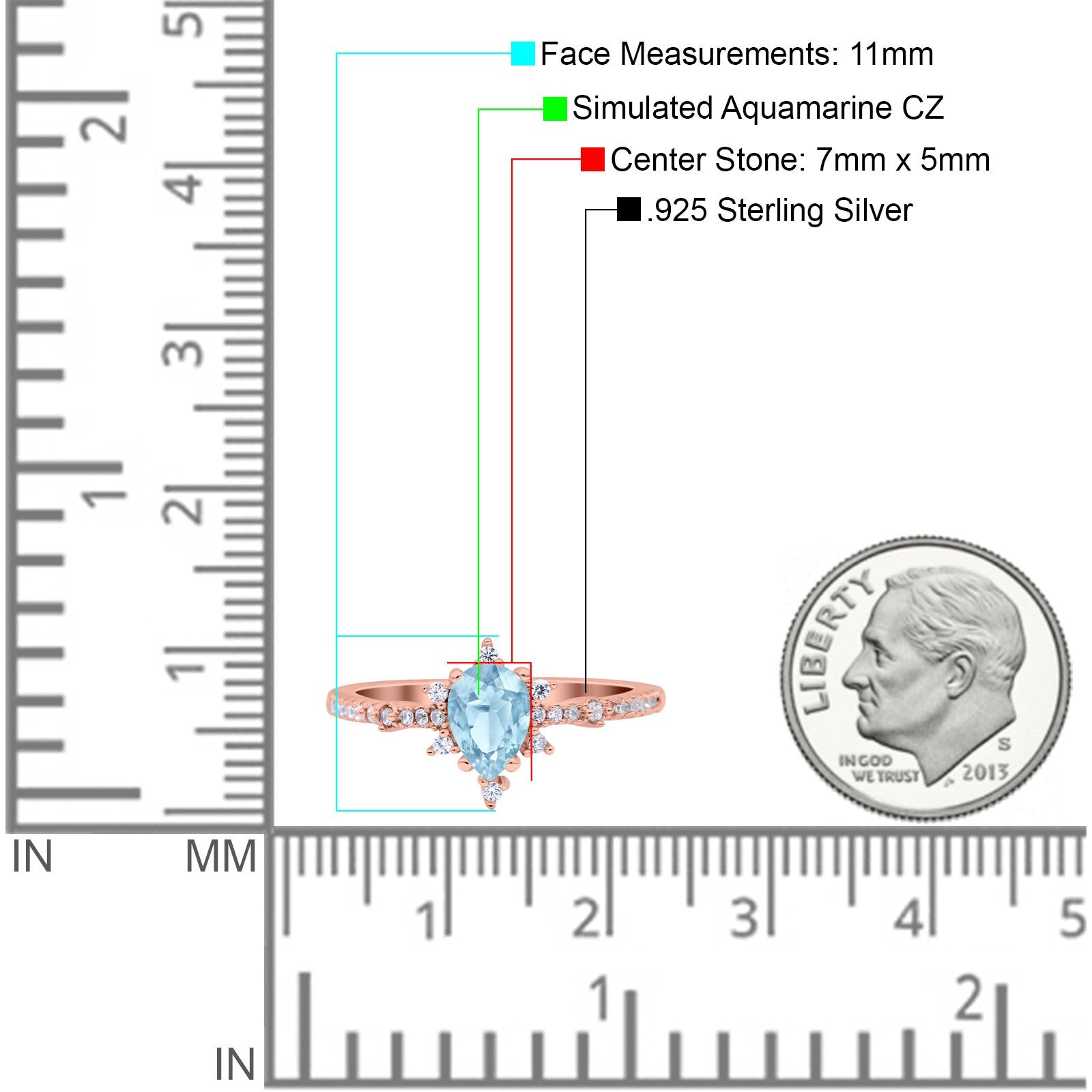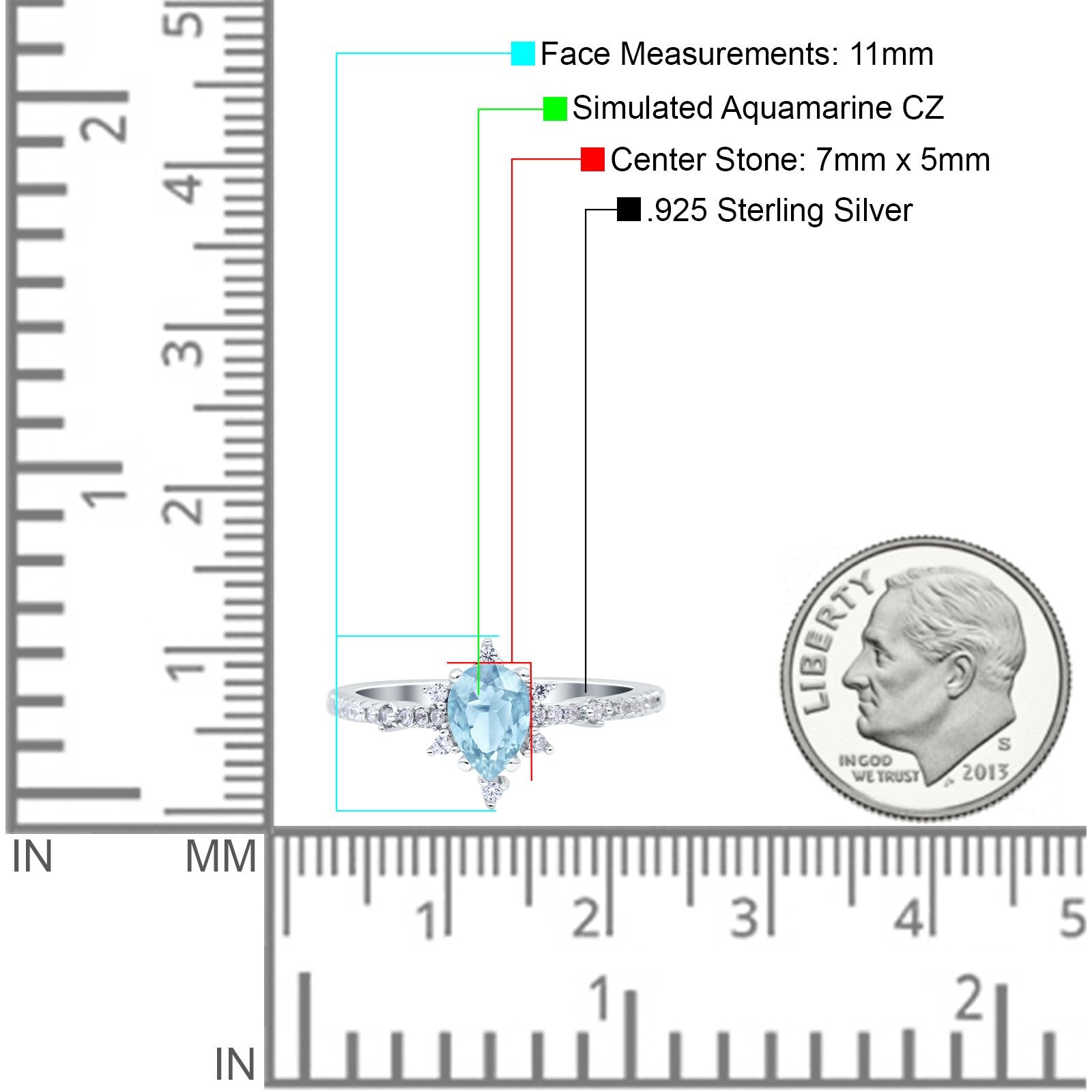 Starburst Teardrop Dainty Art Deco Pear Wedding Bridal Ring Round Simulated Cubic Zirconia 925 Sterling Silver